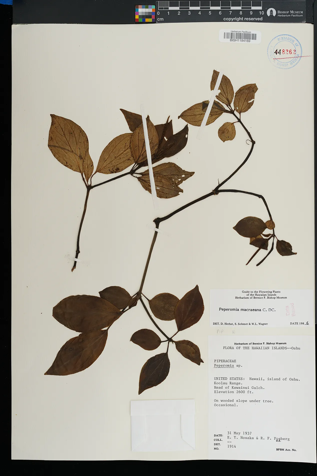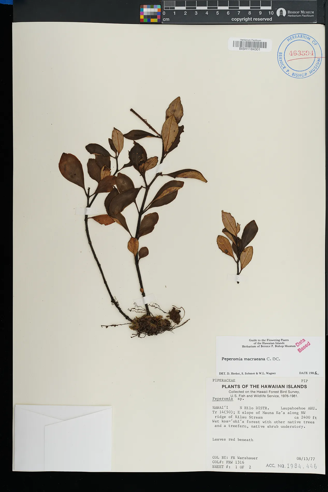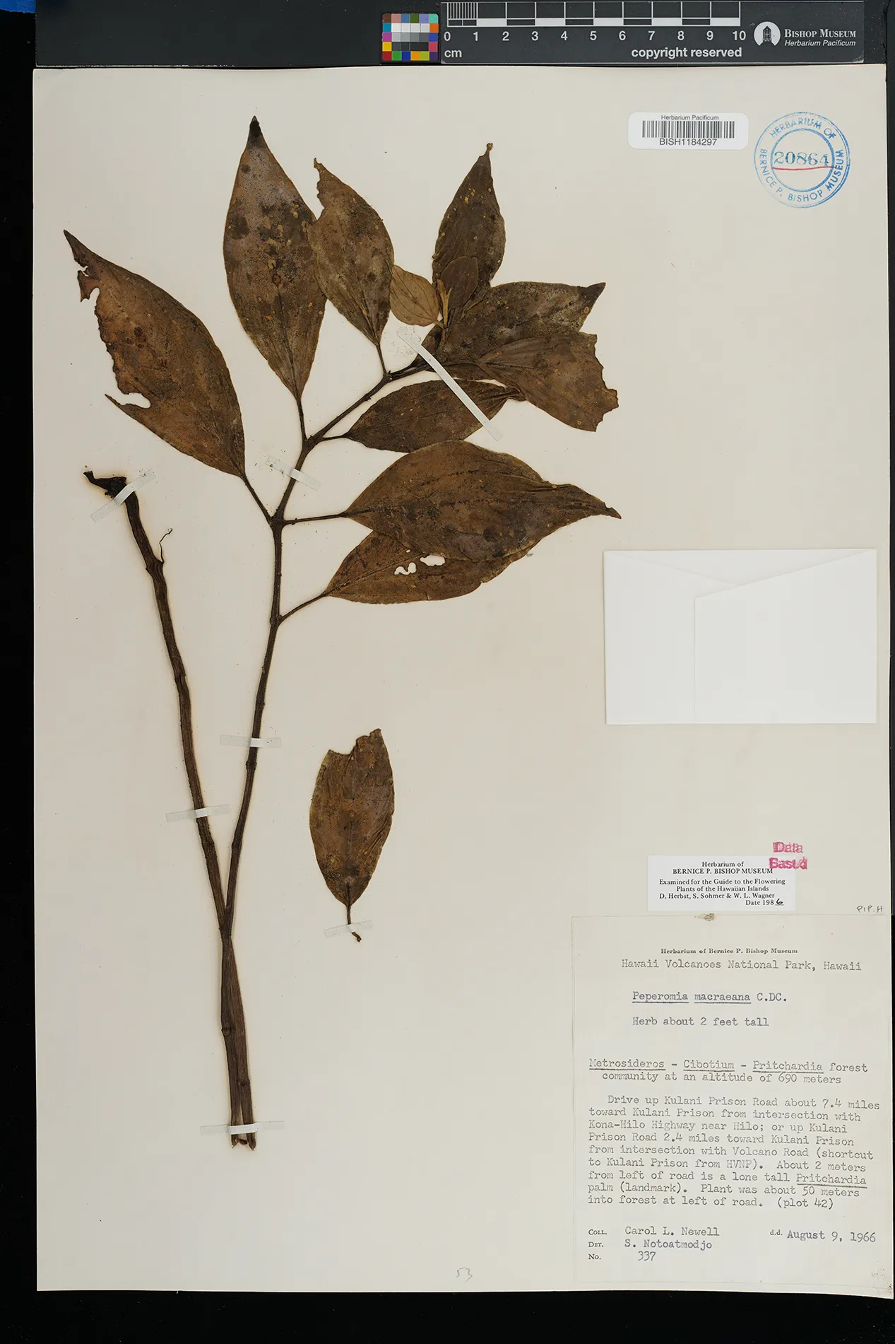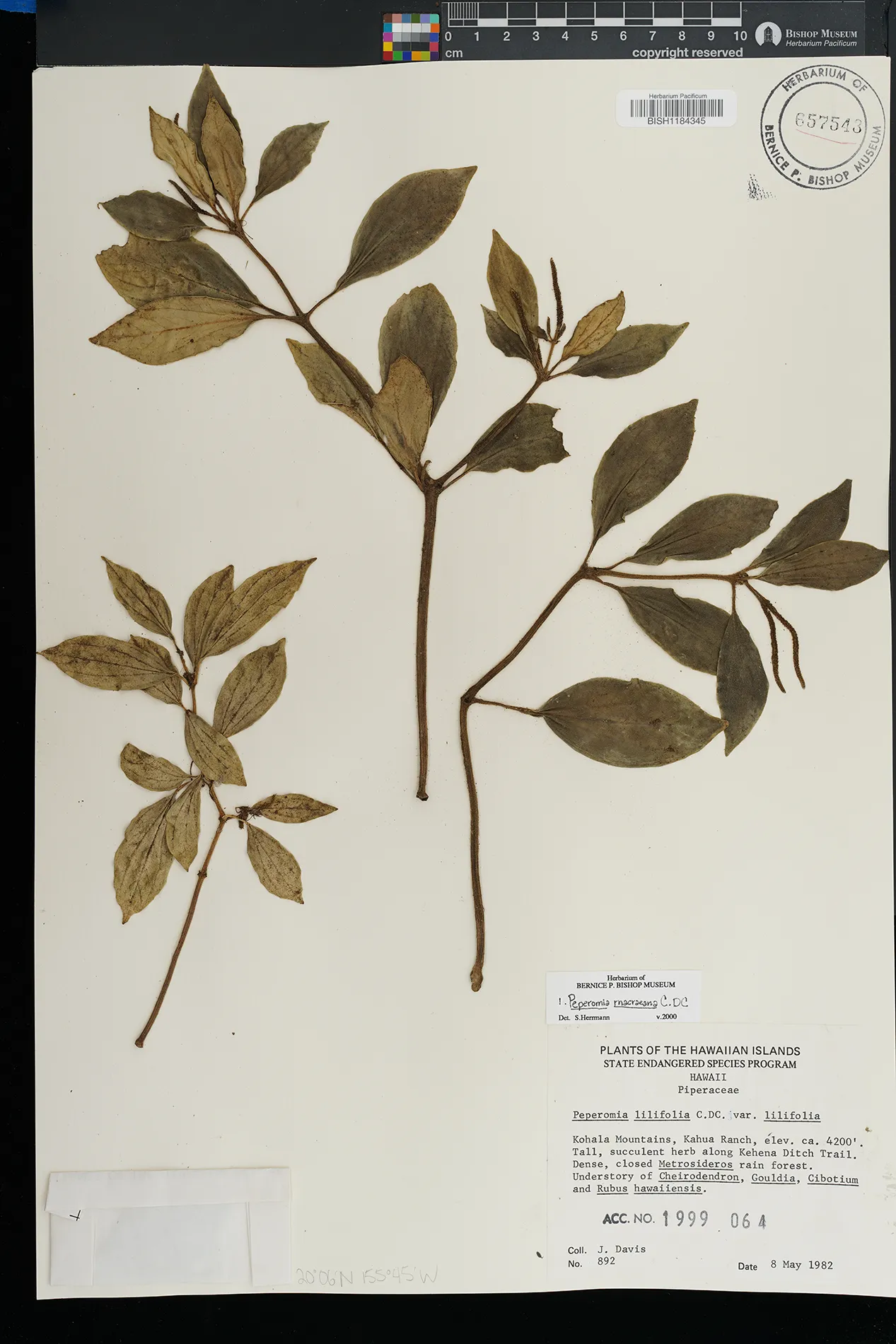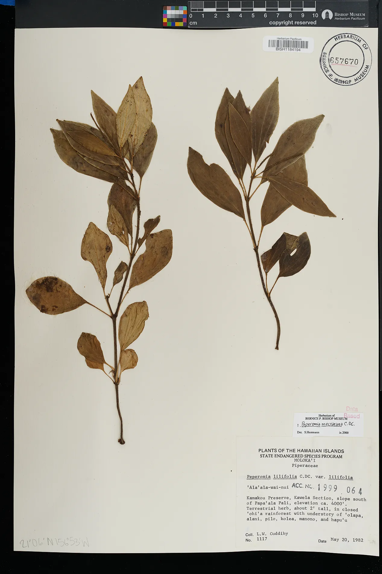 KAUAI: Waimea canyon, upper Kawaiiki valley, north of Kalua- haulu ridge, between ridge and stream, north facing slope. |