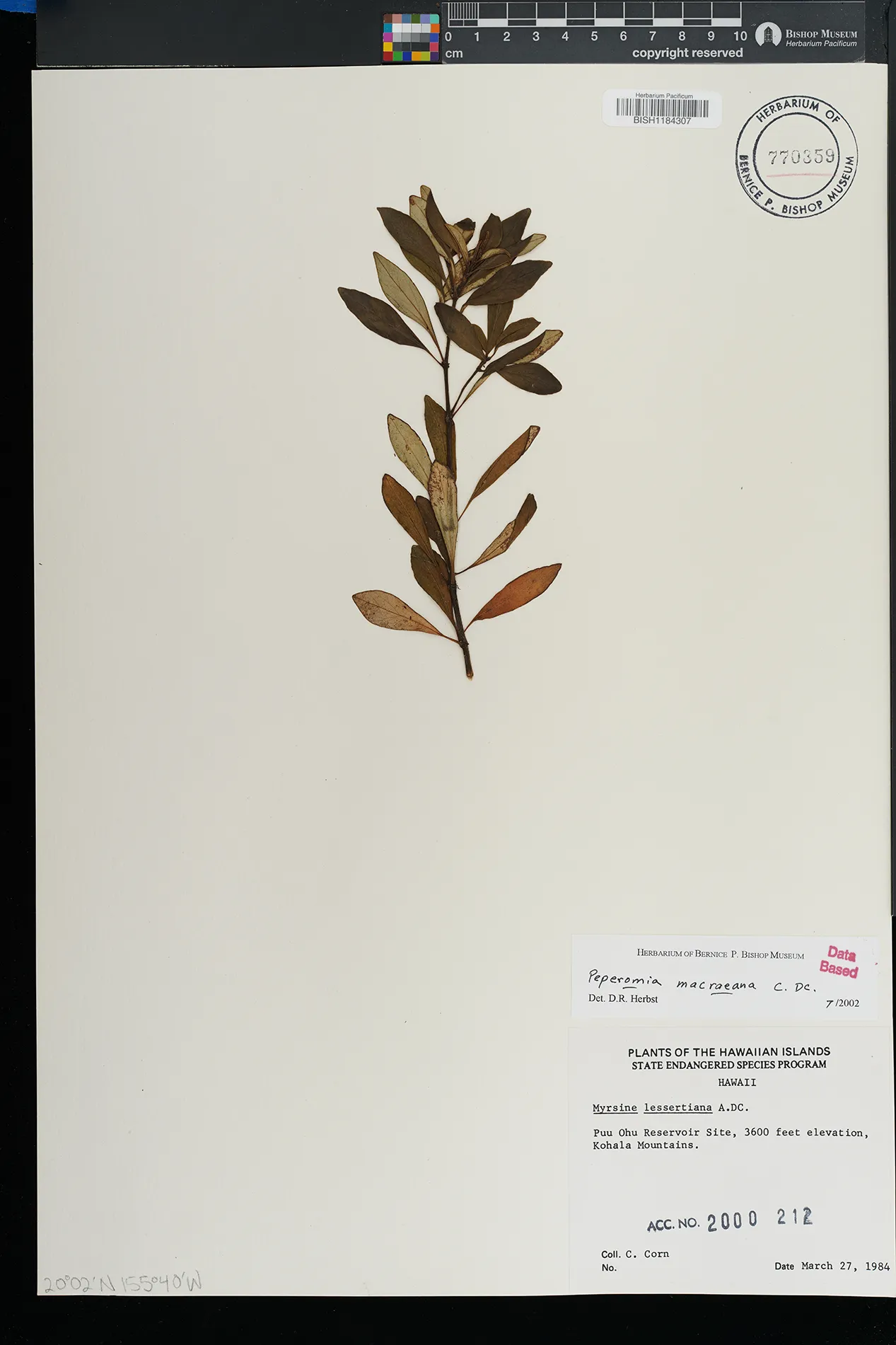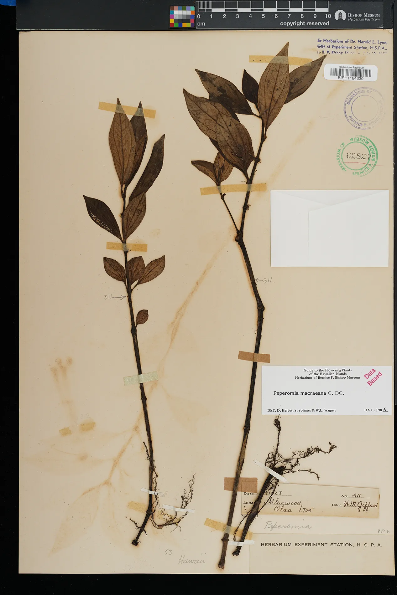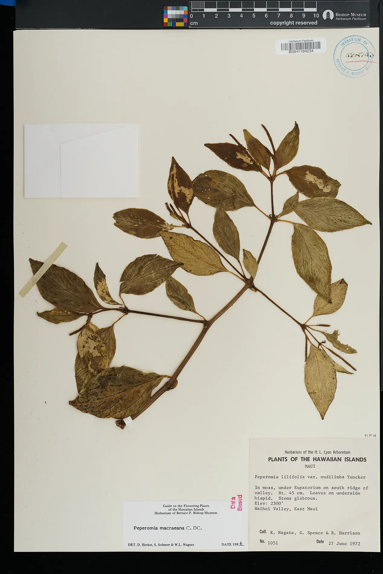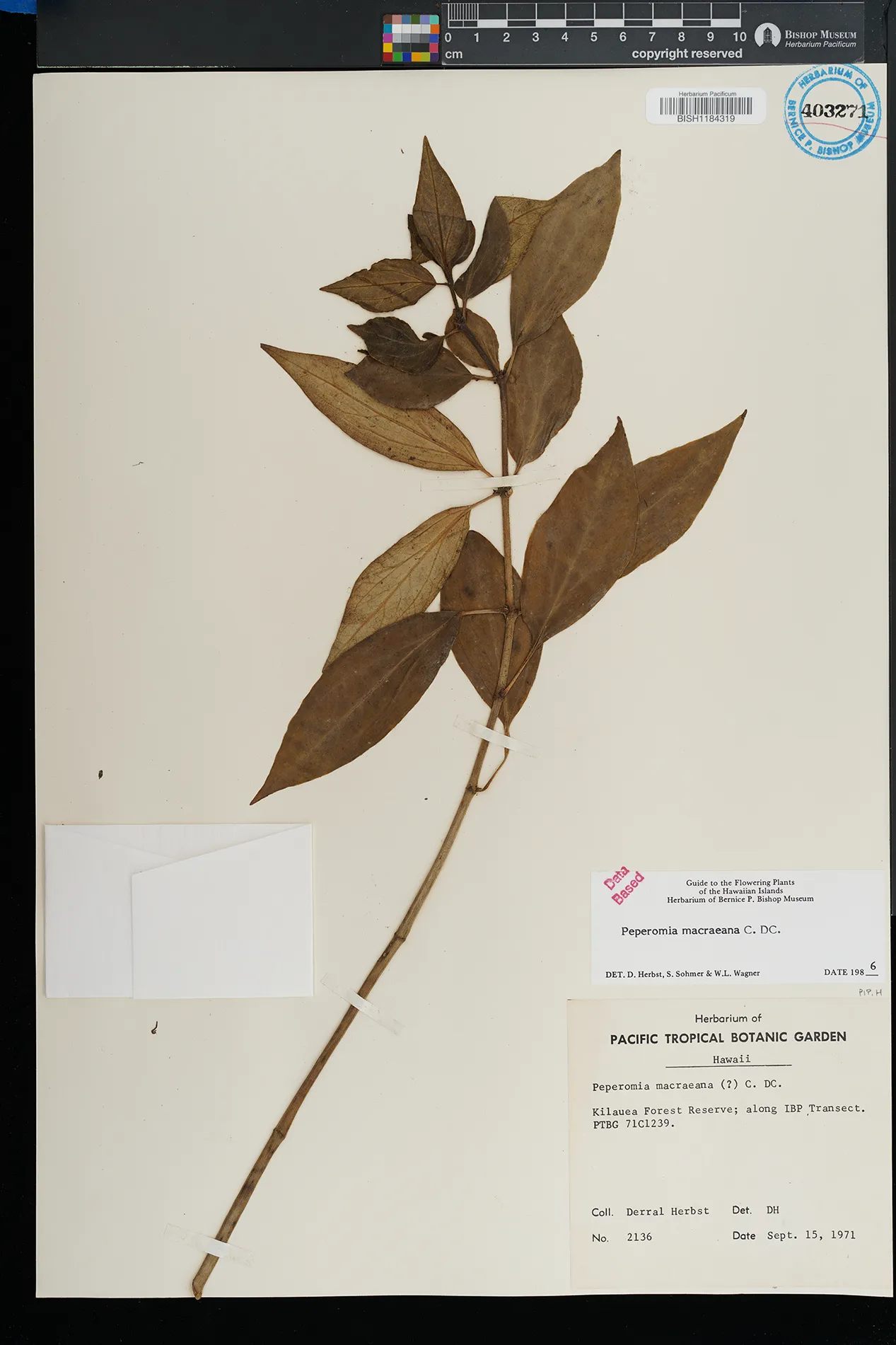 KAUAI: Waimea canyon, upper Kawaiiki valley, north of Kalua- haulu ridge, between ridge and stream, north facing slope. |