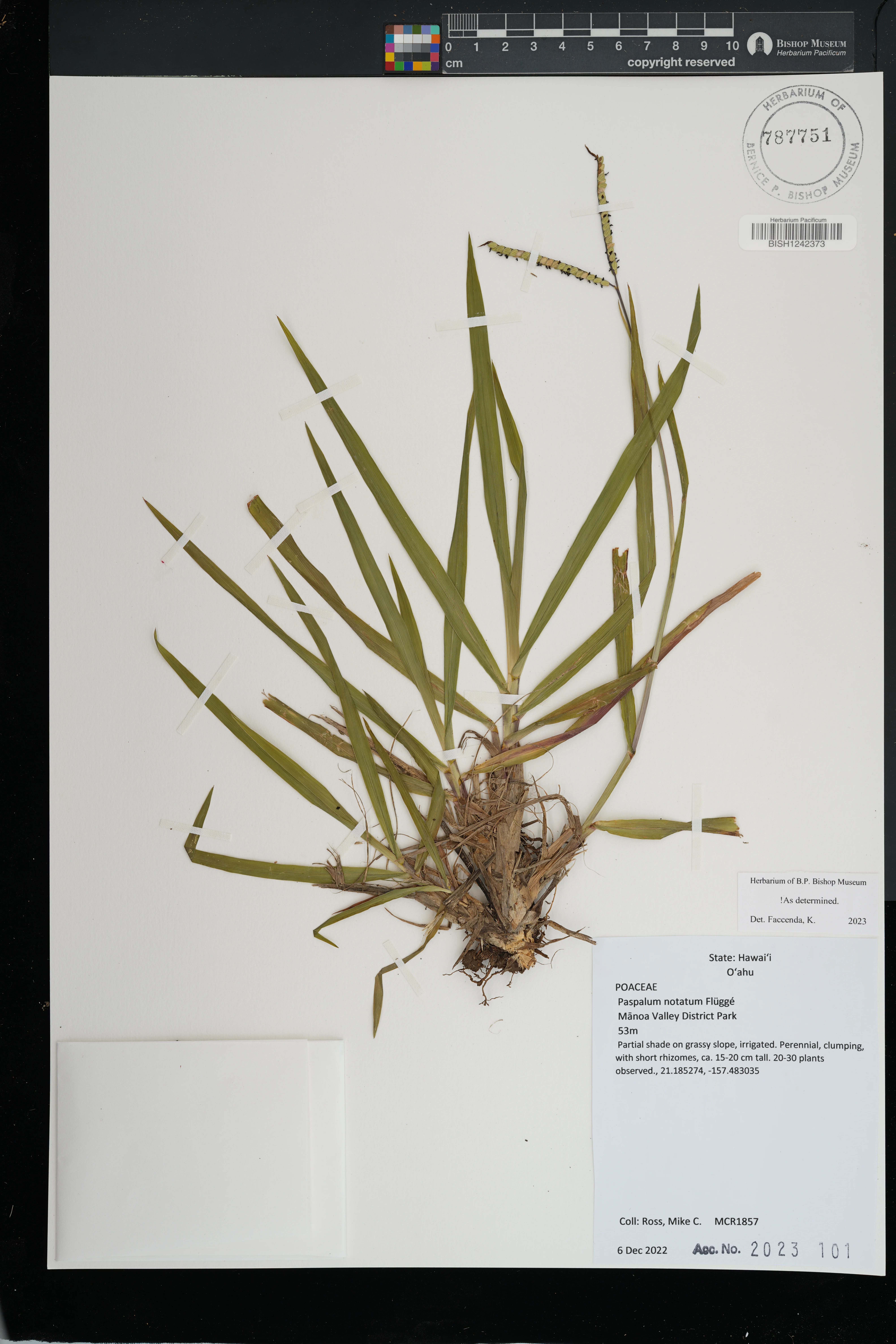 at edge of lawn with Paspalum conjugatum, Digitaria ciliaris and Axonopus compressus. |