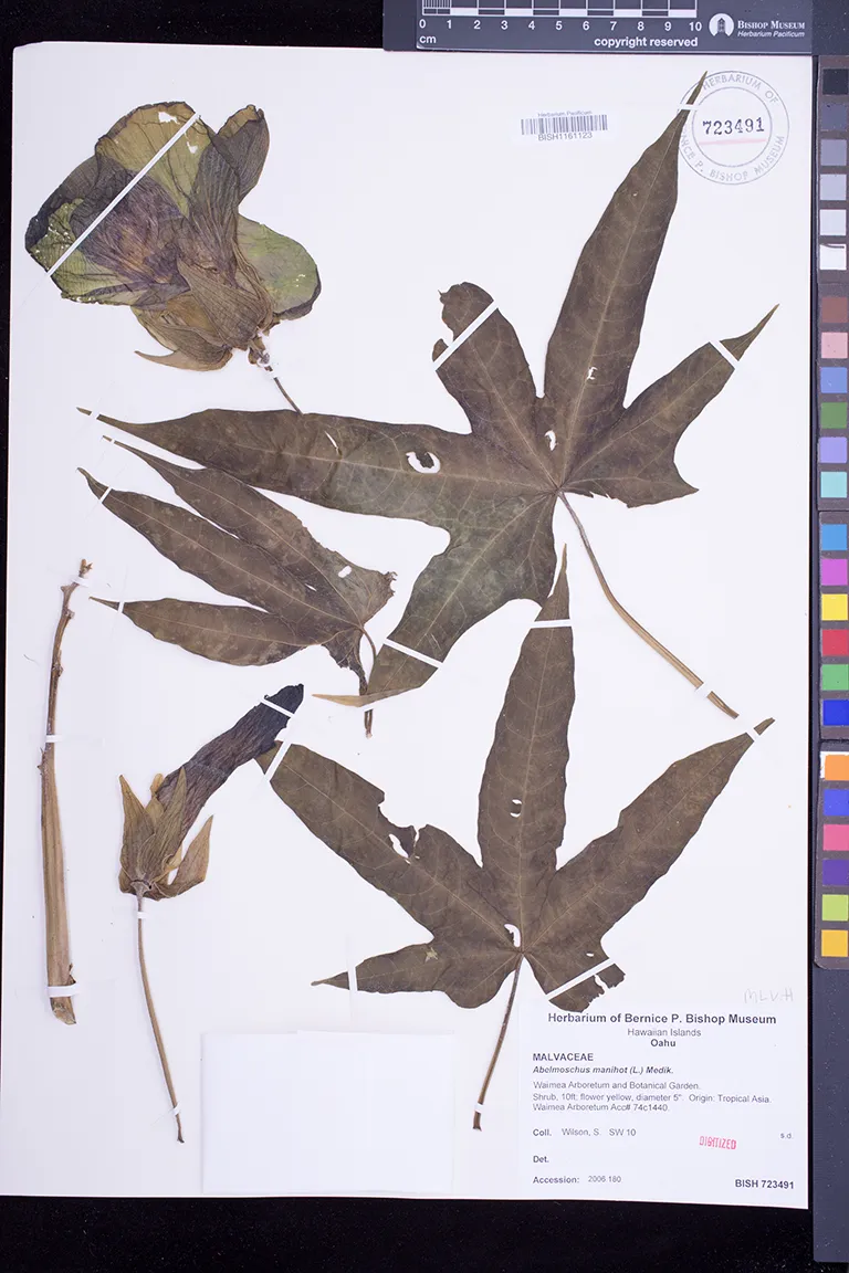 | 10 | Abelmoschus manihot | (L.) Medik. | Waimea Arboretum and Botanical Garden | PRESERVED_SPECIMEN | Wilson, S. | SW 10 | Oahu | BISH | ||