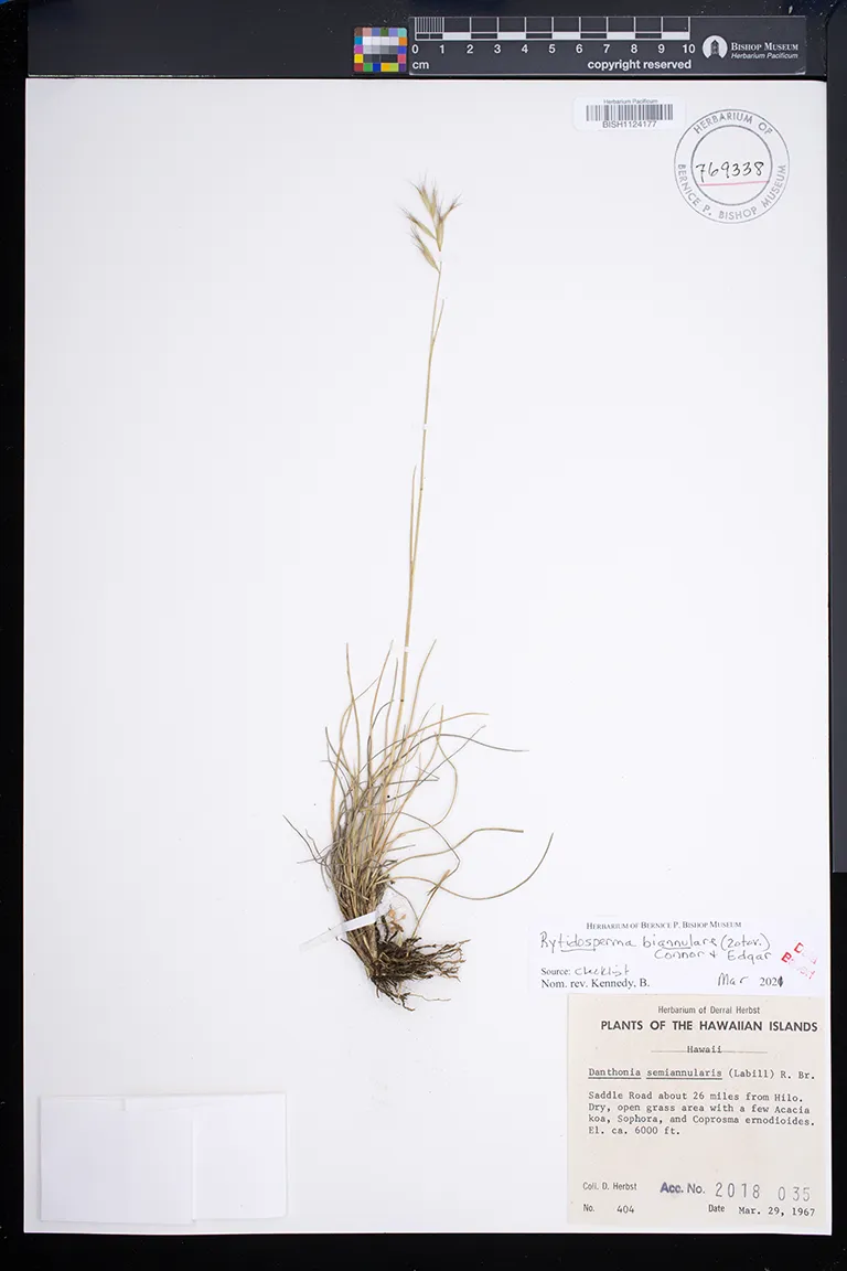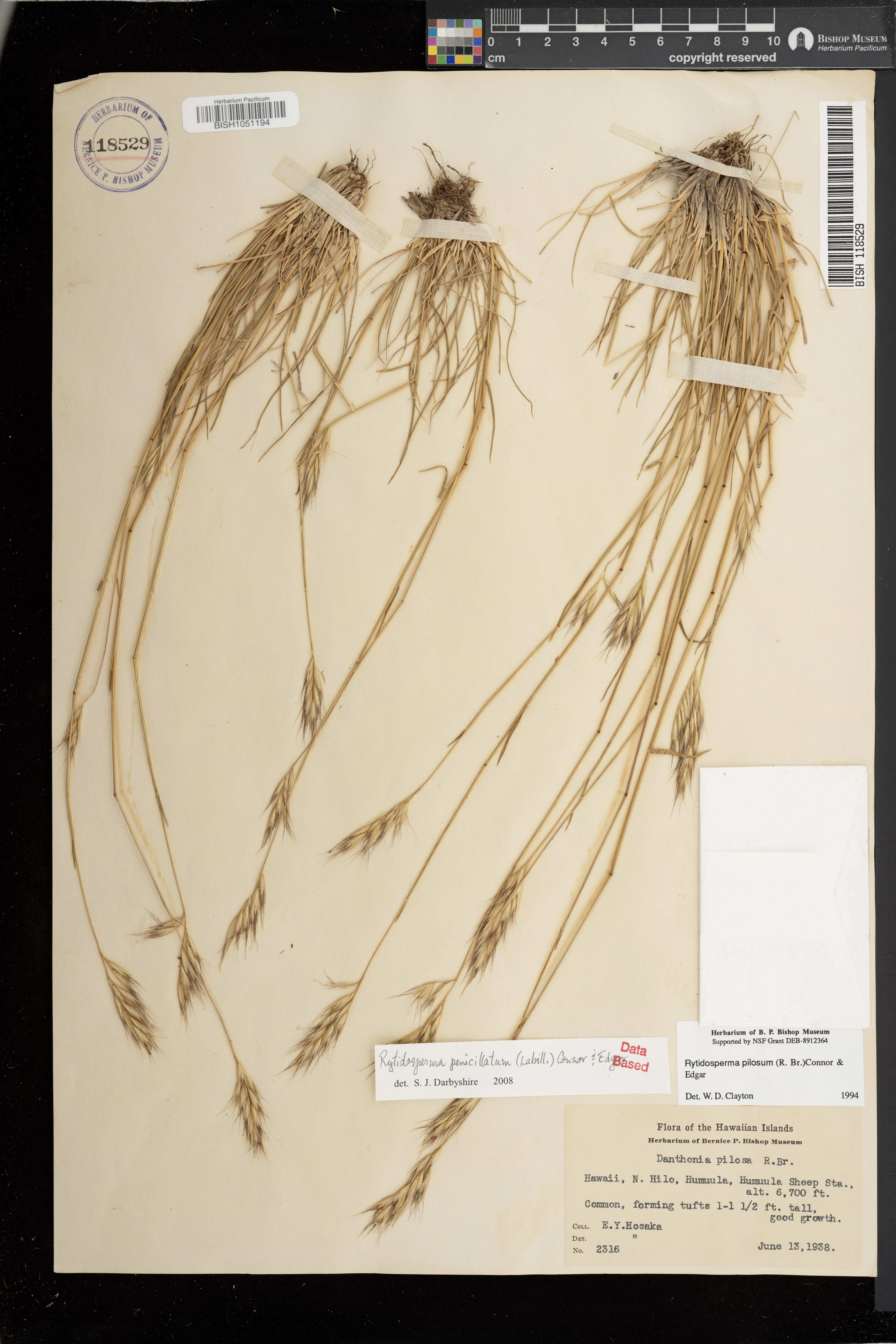 | 5 | Rytidosperma pilosum | (R.Br.) Connor & Edgar | pun-oo ranch | PRESERVED_SPECIMEN | j. ripperton | s.n. | Hawaii | US |