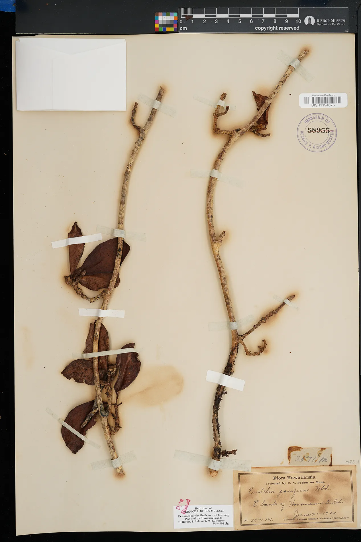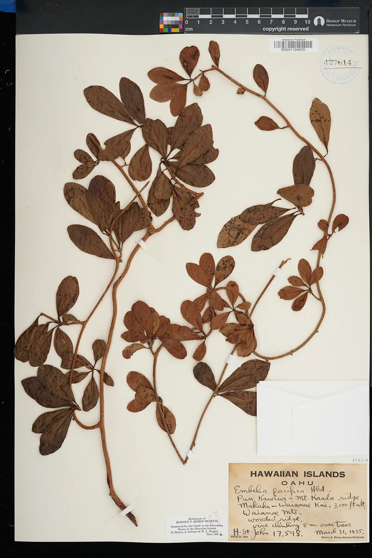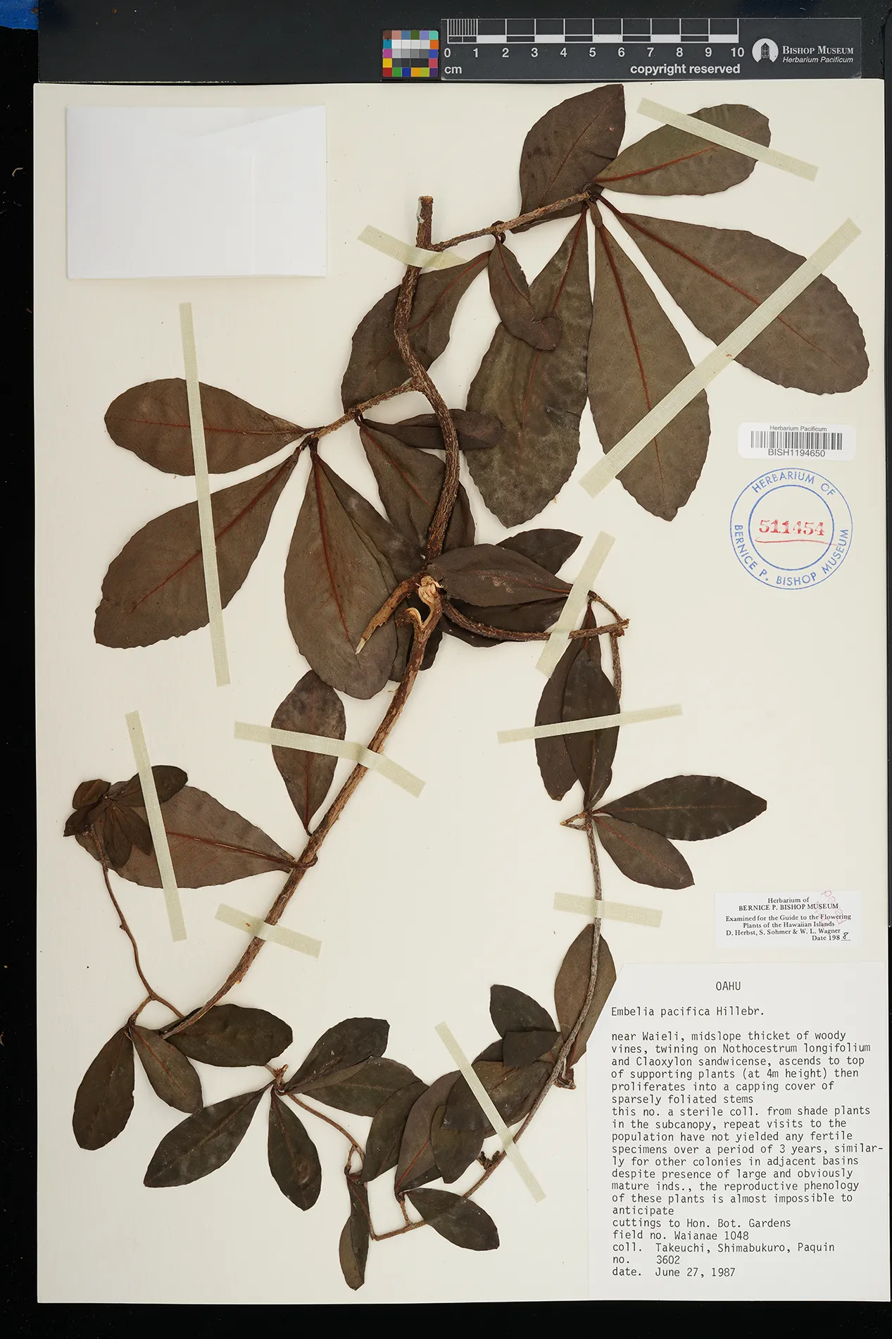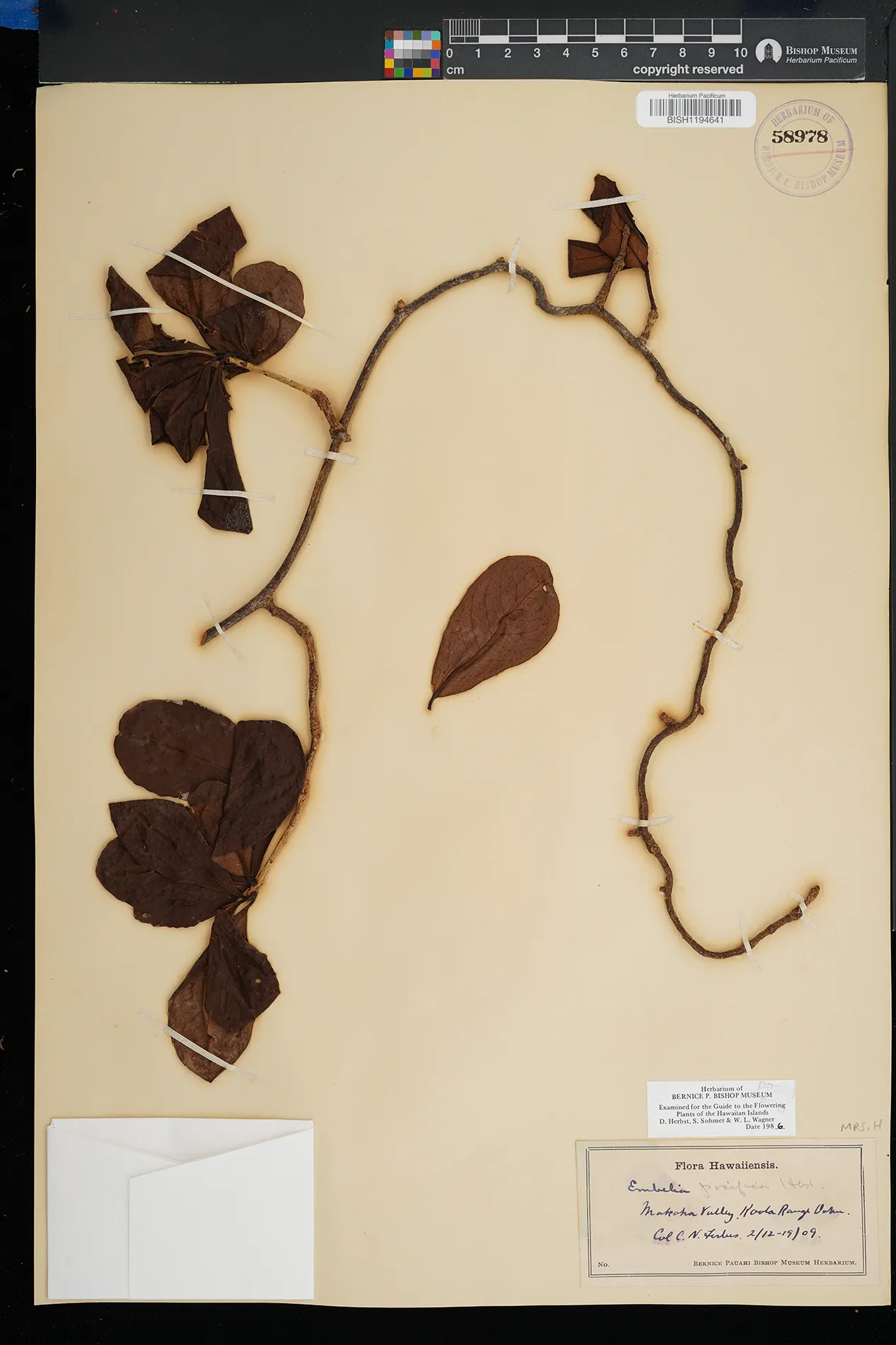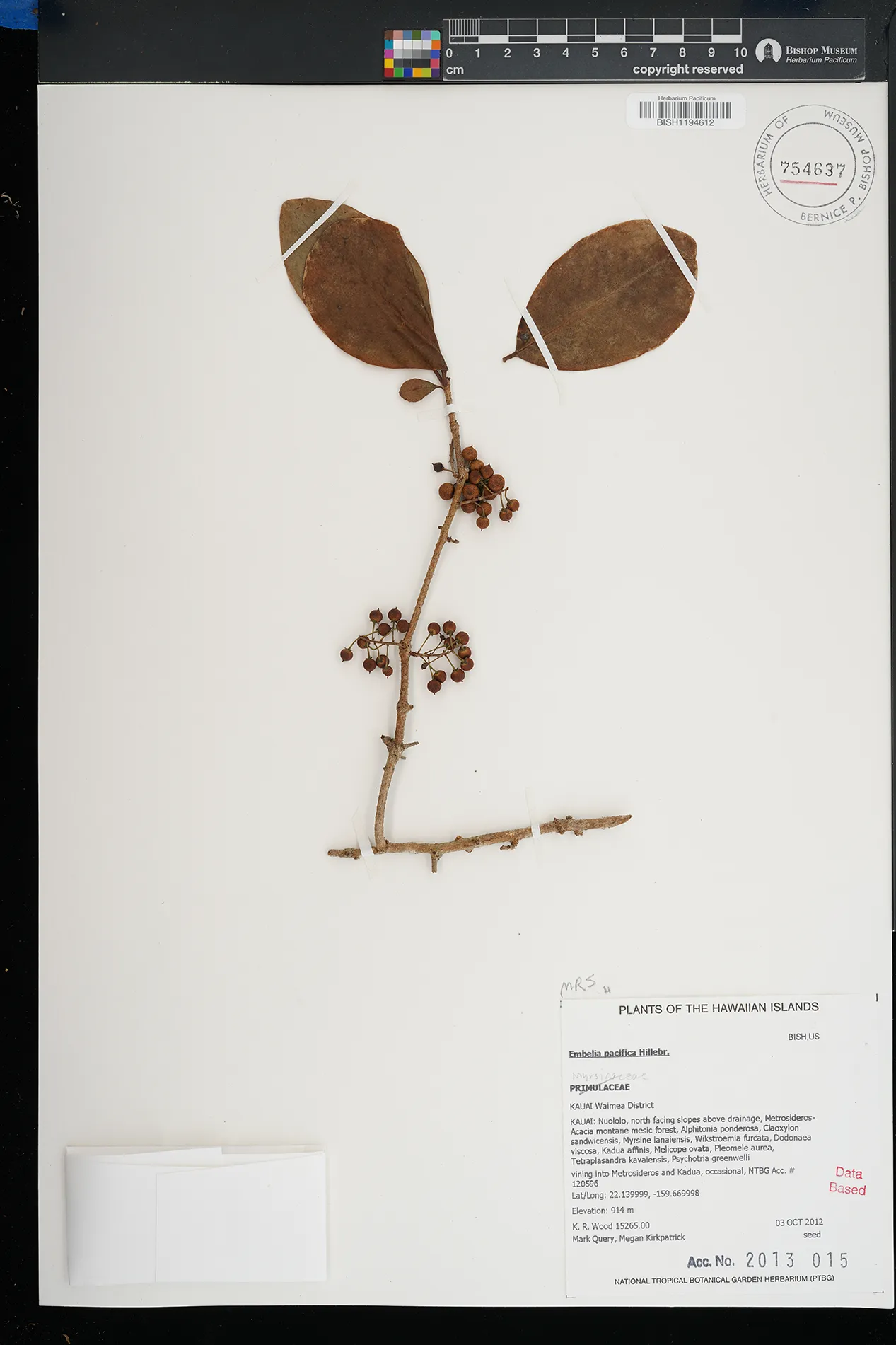 Wet koa-'ohi'a forest with other native trees and a treefern, native shrub understory. Growing just above ground on Freycinetia |