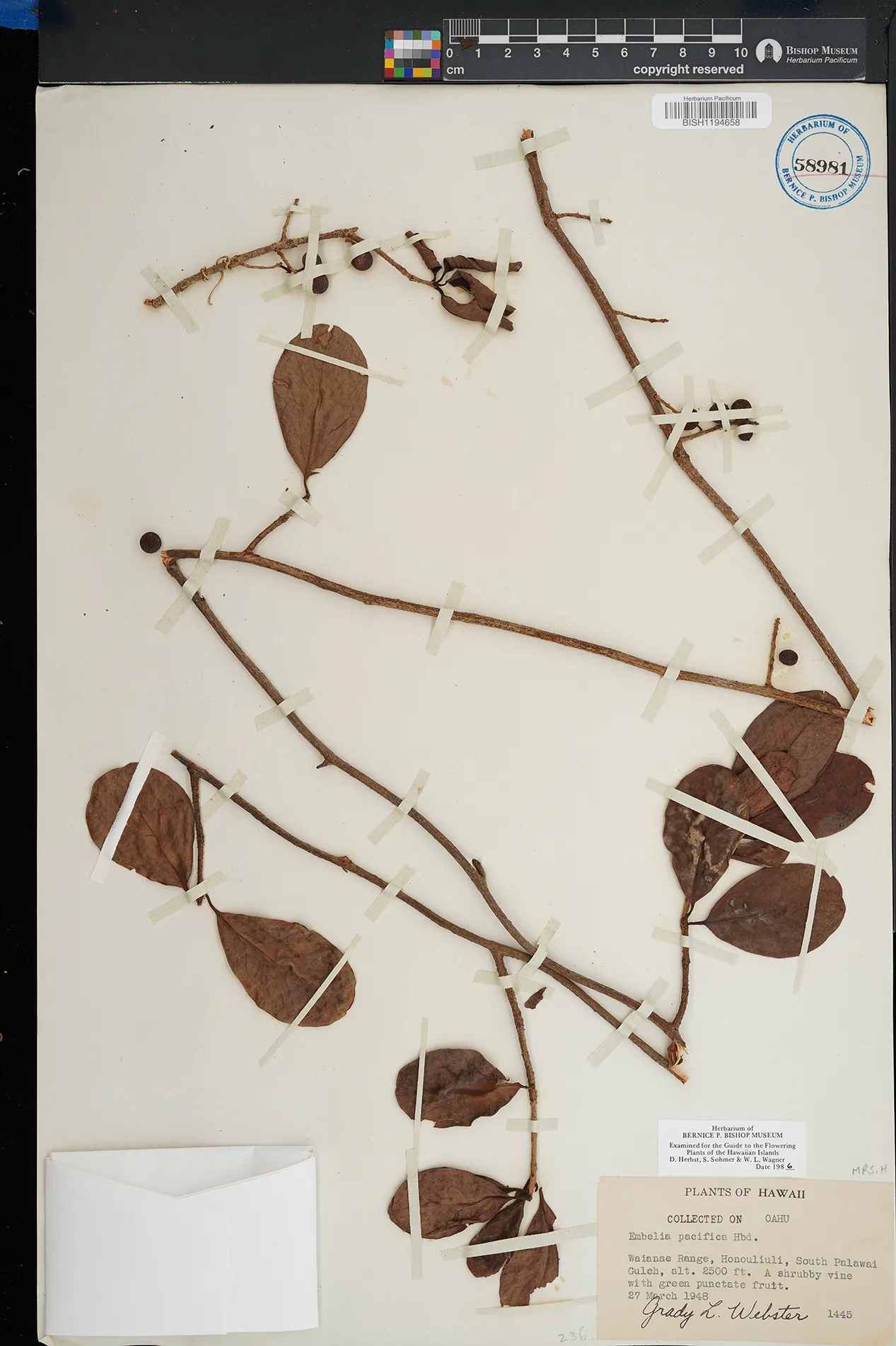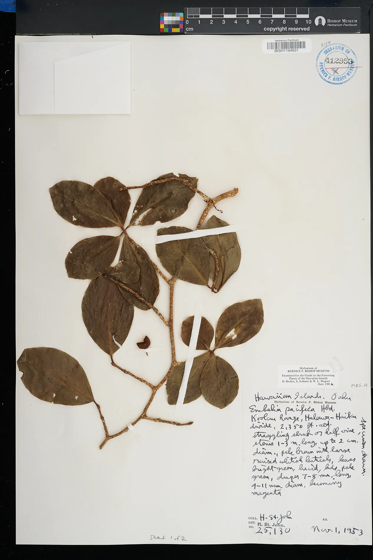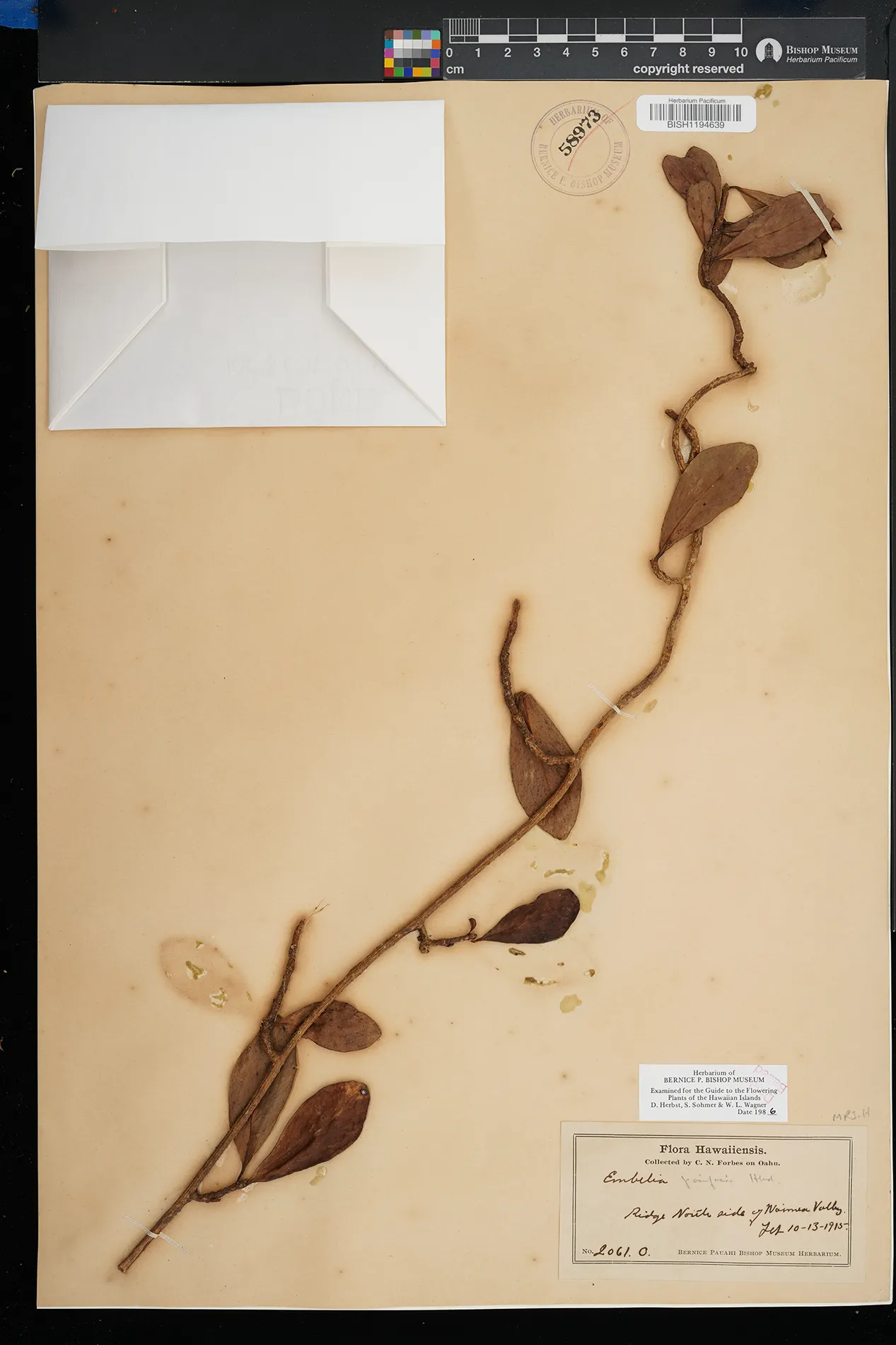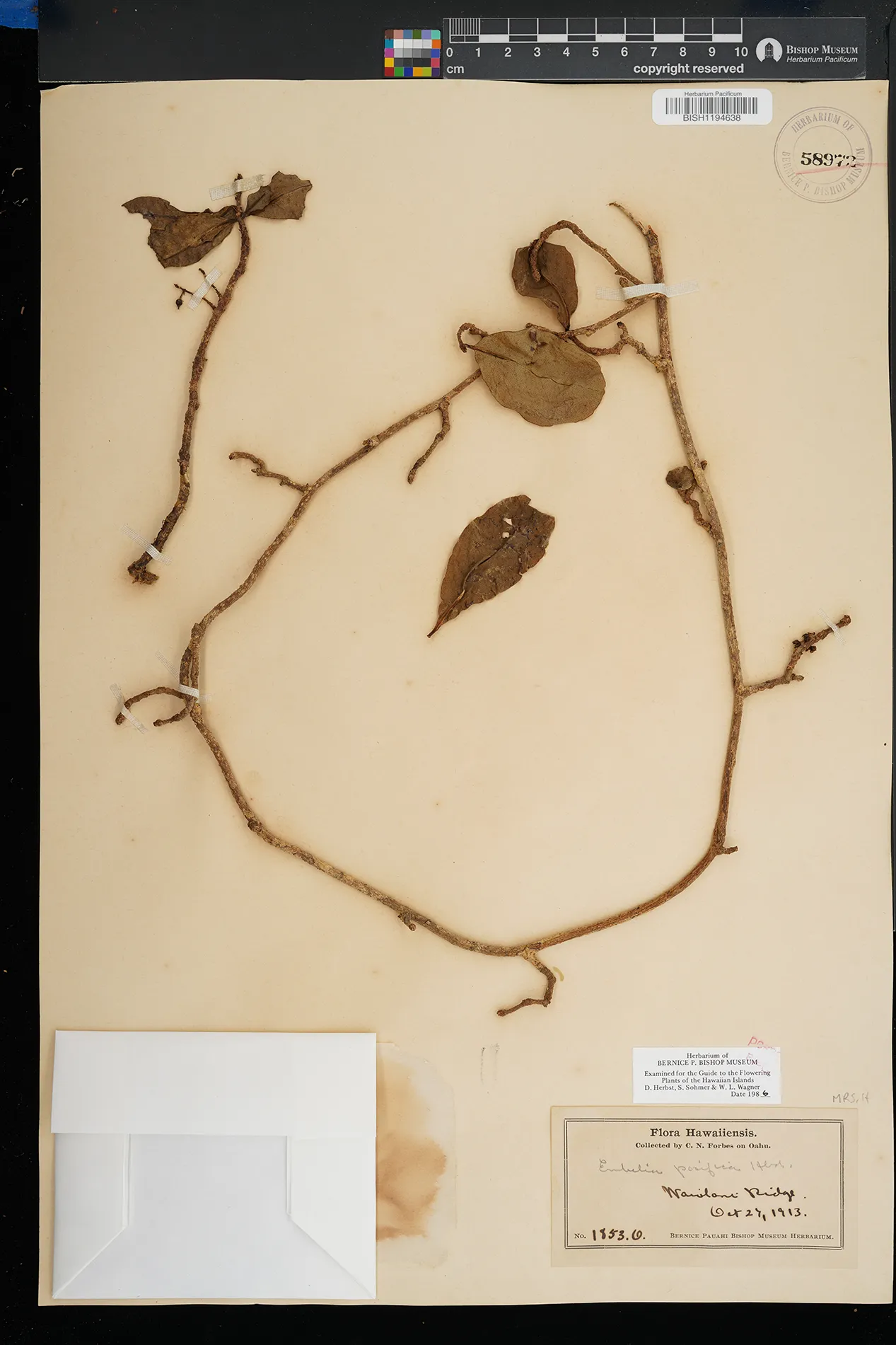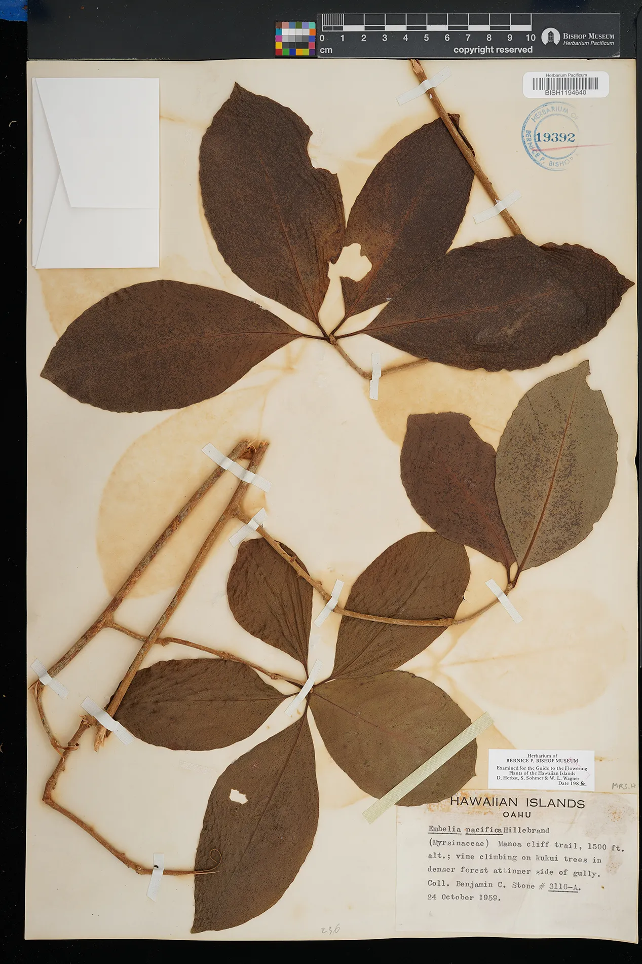 Wet koa-'ohi'a forest with other native trees and a treefern, native shrub understory. Growing just above ground on Freycinetia |