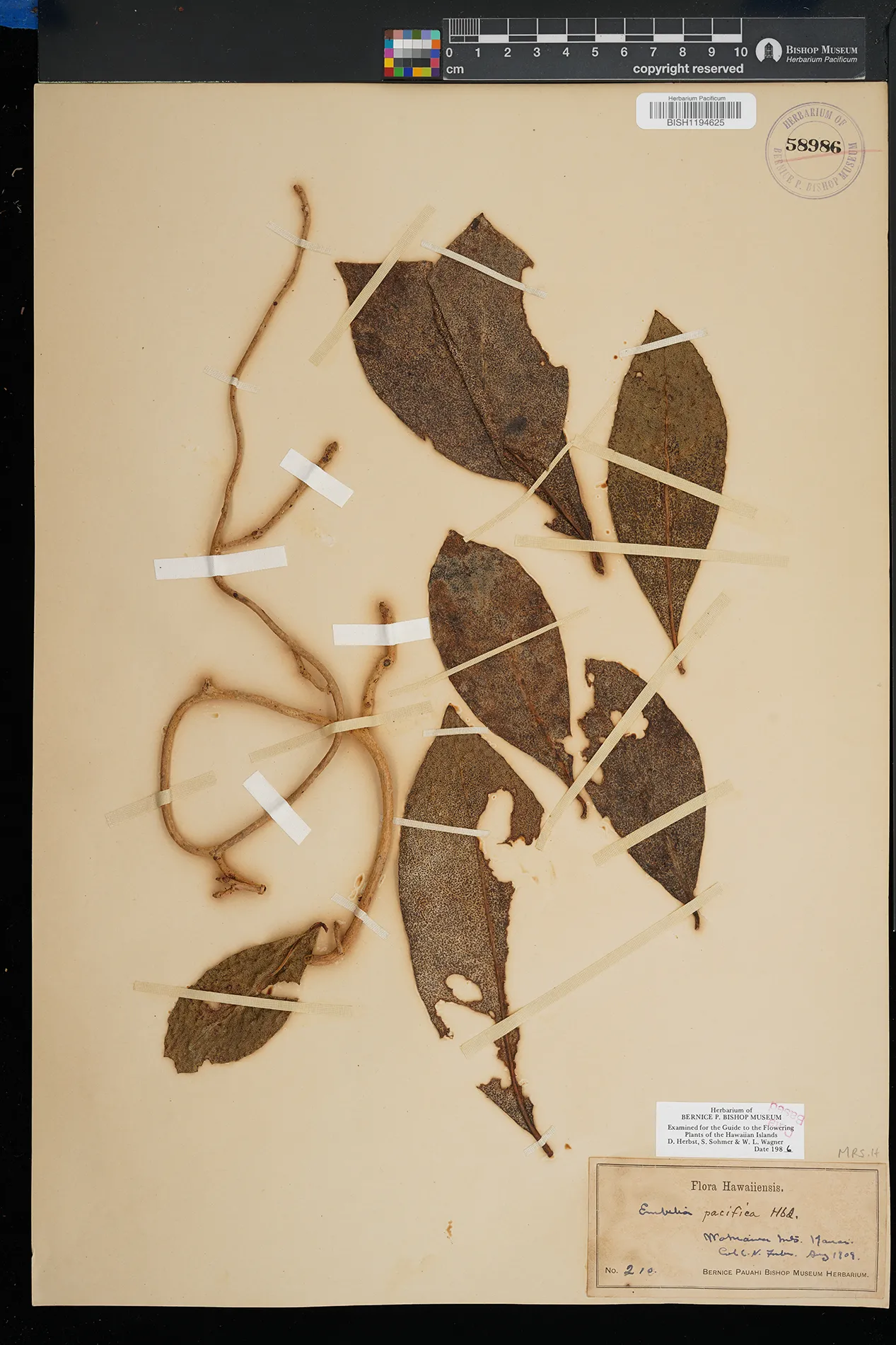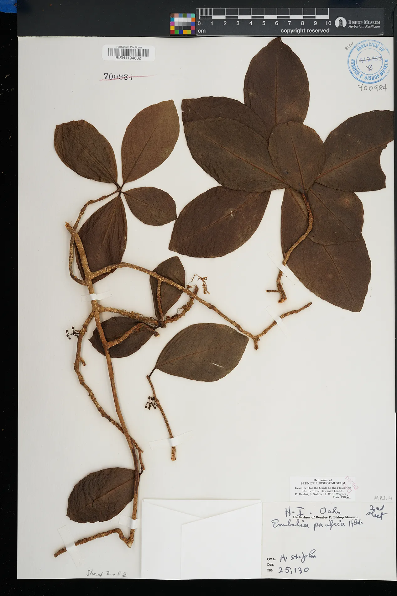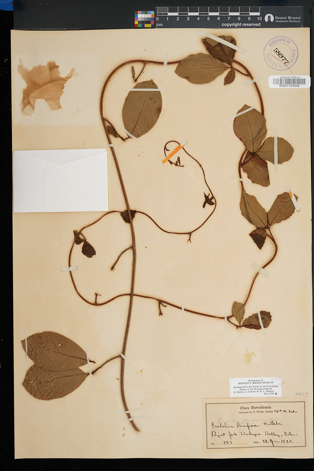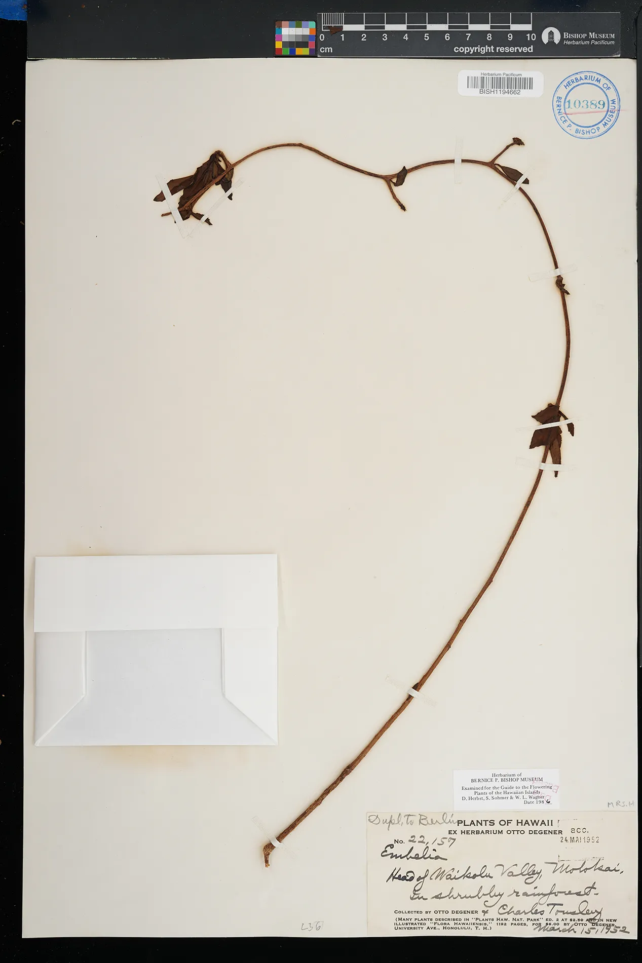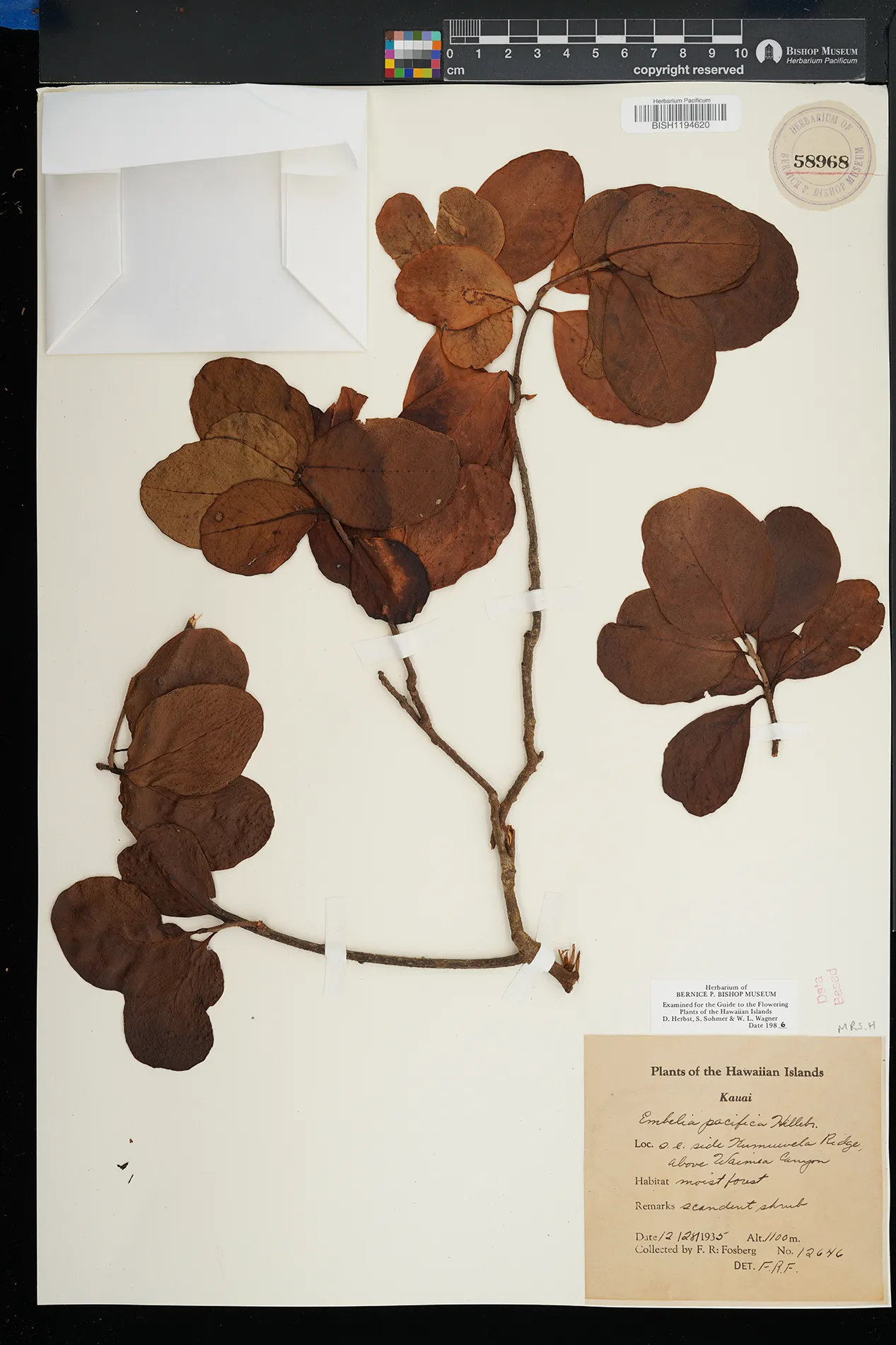 Wet koa-'ohi'a forest with other native trees and a treefern, native shrub understory. Growing just above ground on Freycinetia |