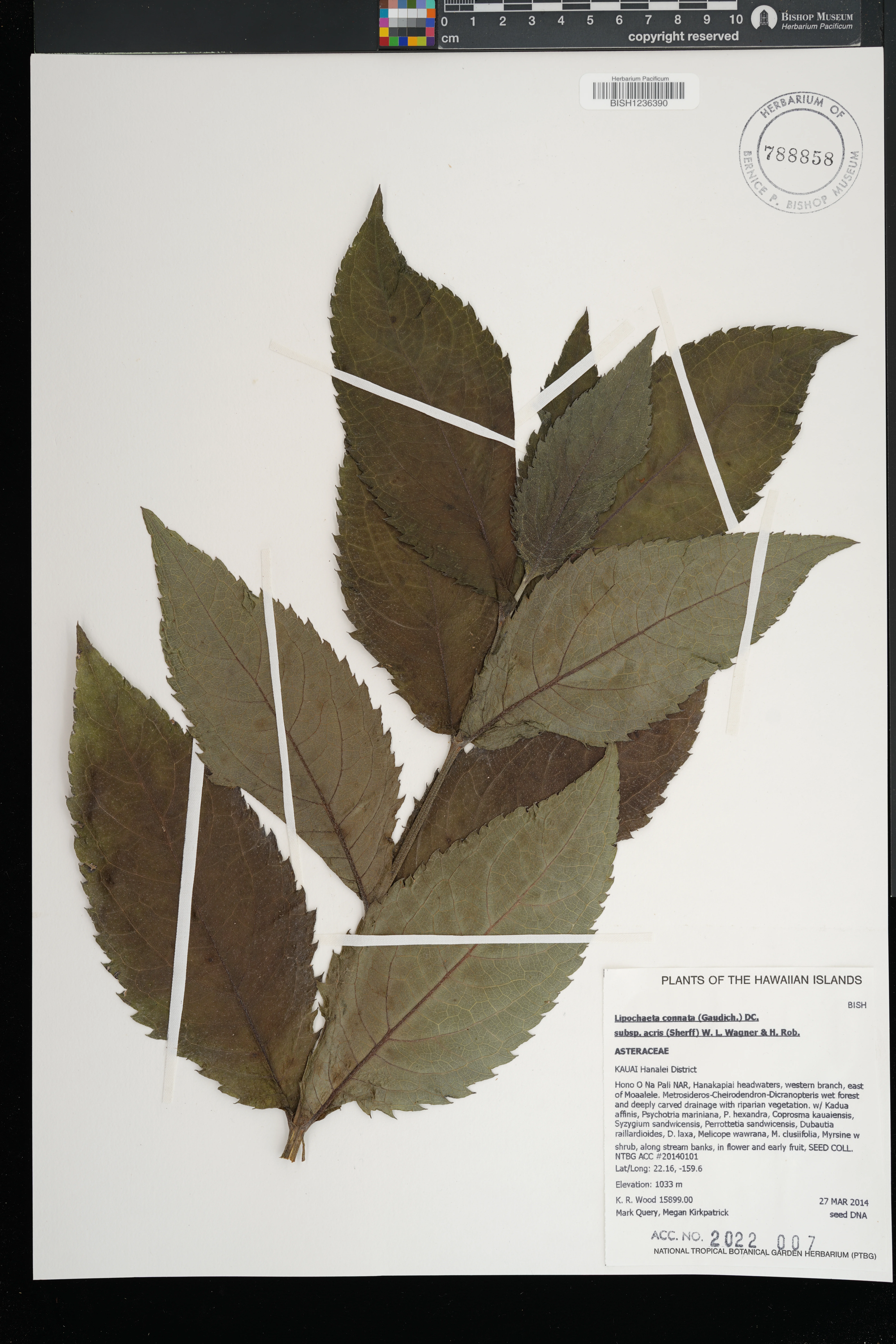Hanalei District; Na Pali-Kona Forest Reserve, along Haena-Kalalau Trail, just NW of Hanakapiai Valley |