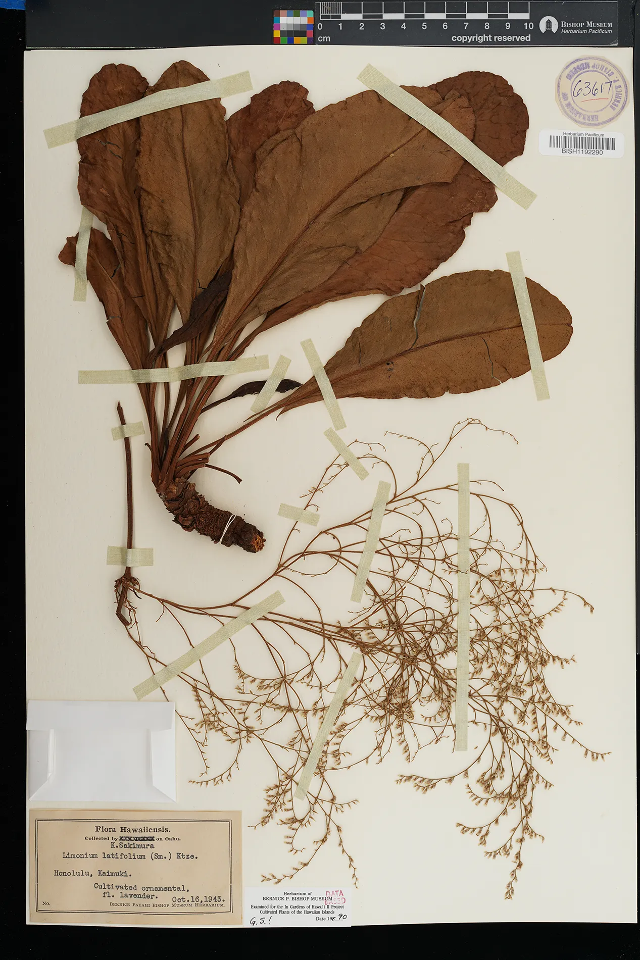 | 10 | Goniolimon tataricum | (L.) Boiss. | Honolulu, Kaimuki | PRESERVED_SPECIMEN | Sakimura, K. | s.n. | Oahu | BISH | 10/16/1943 | |