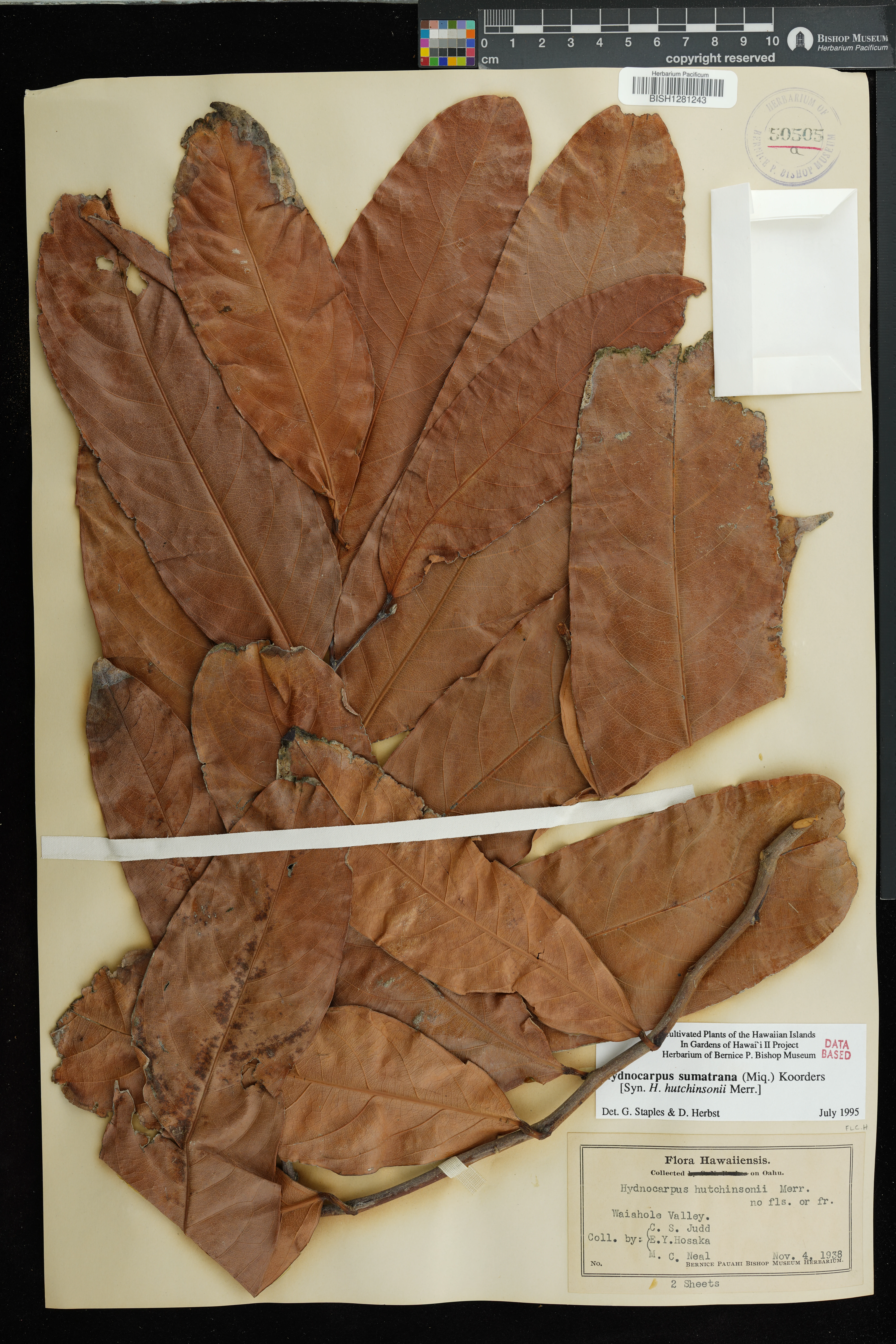 | 1 | Hydnocarpus sumatranus | (Miq.) Koord. | Waiahole Valley | PRESERVED_SPECIMEN | Neal, M.C. | s.n. | Oahu | BISH | 11/4/1938 | |