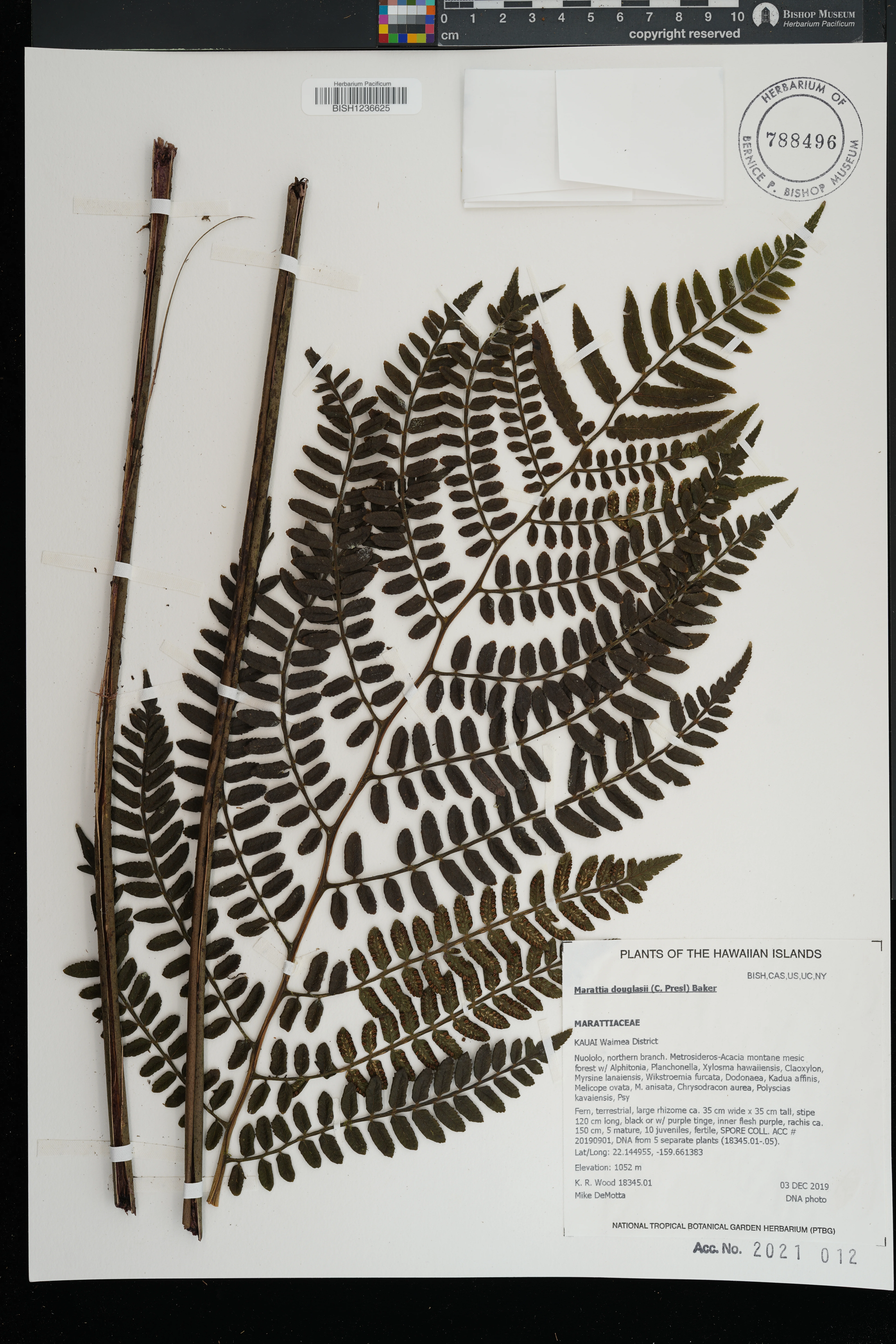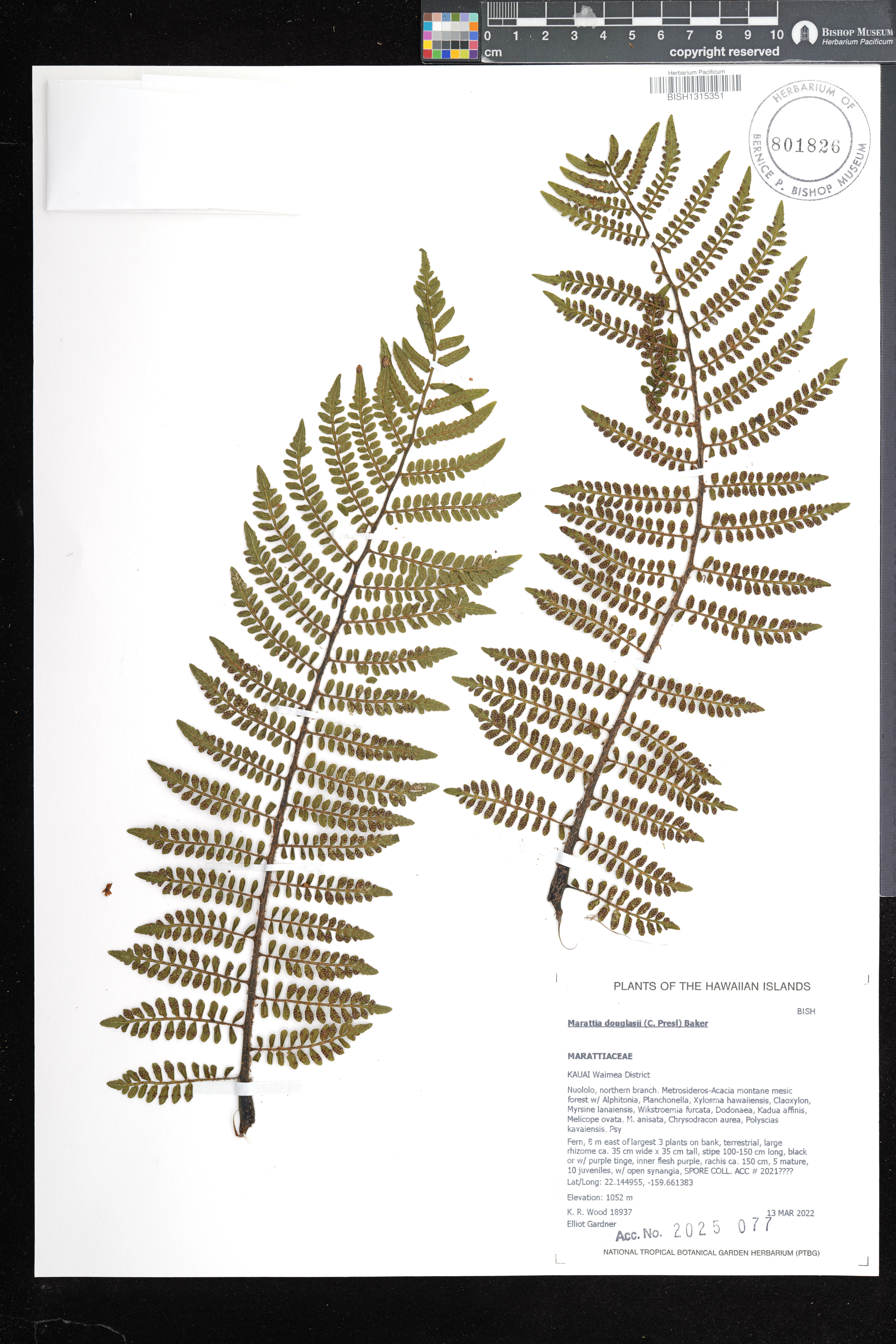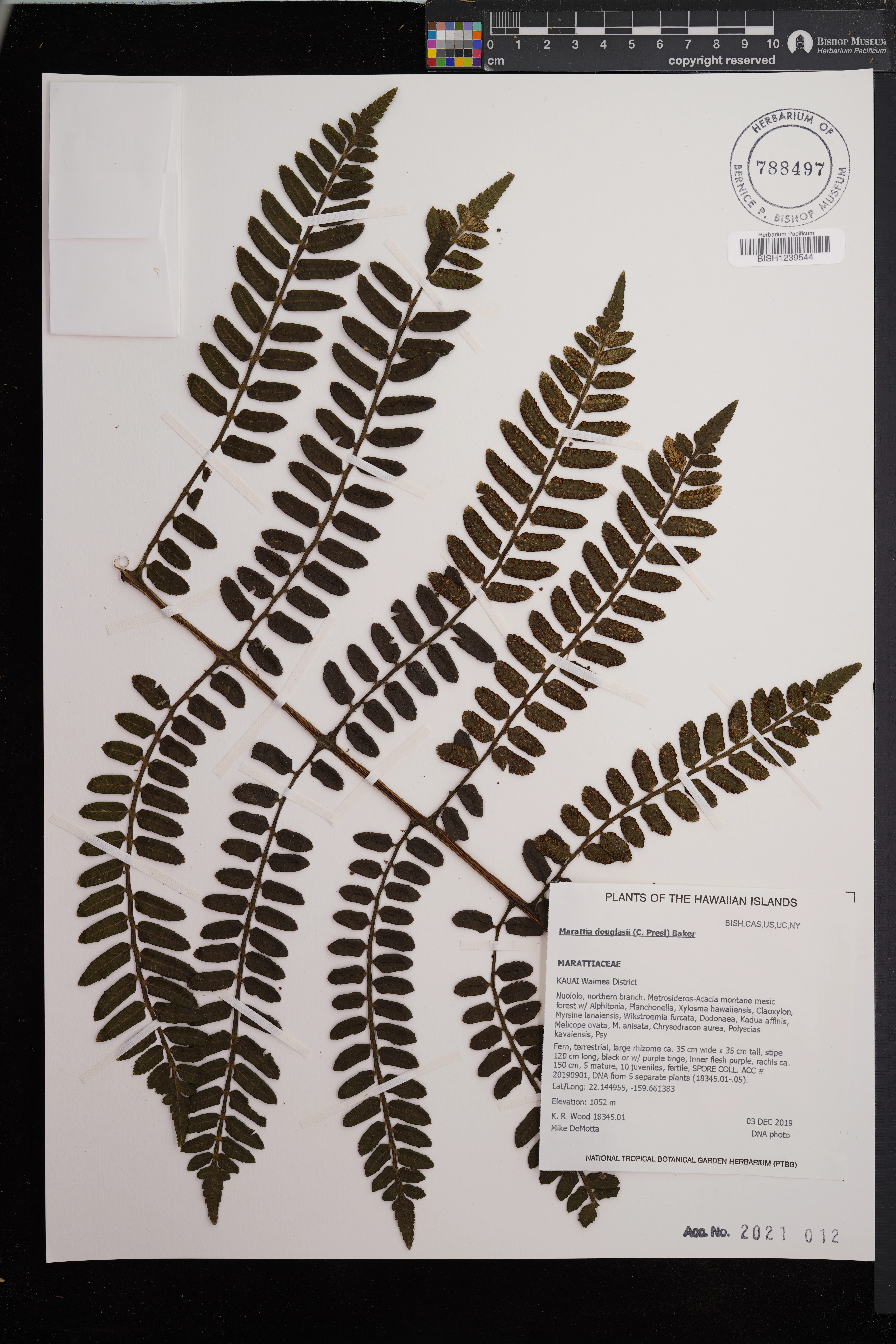 mixed mesophytic forest with Metrosideros, Acacia koa, dense Cibotium understory |