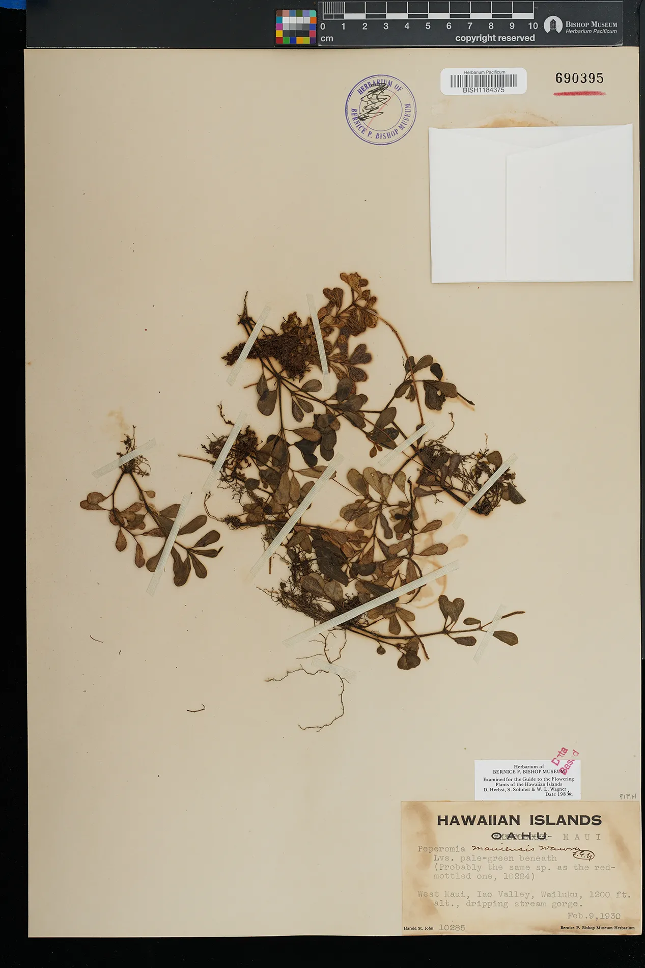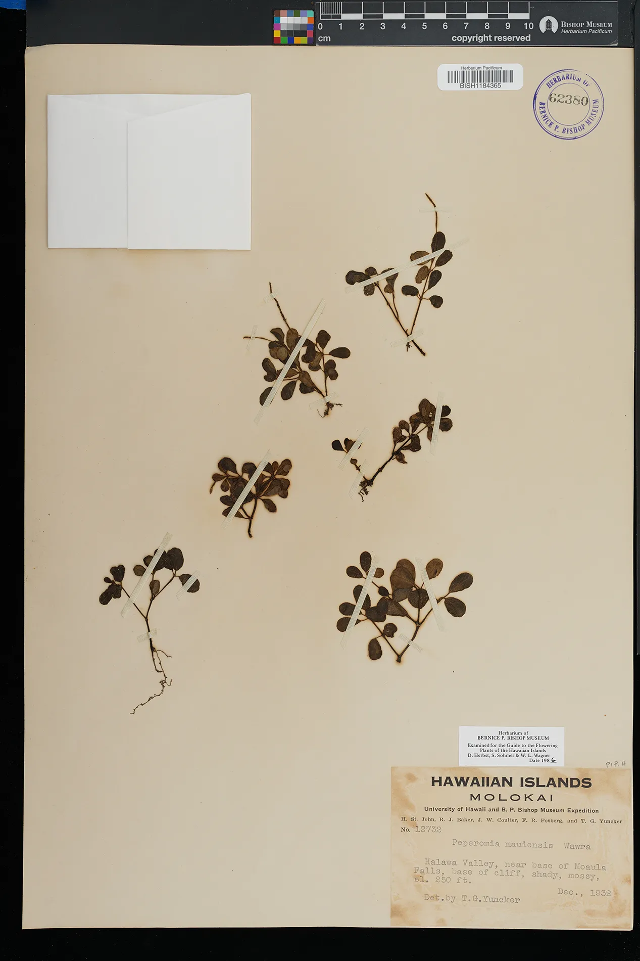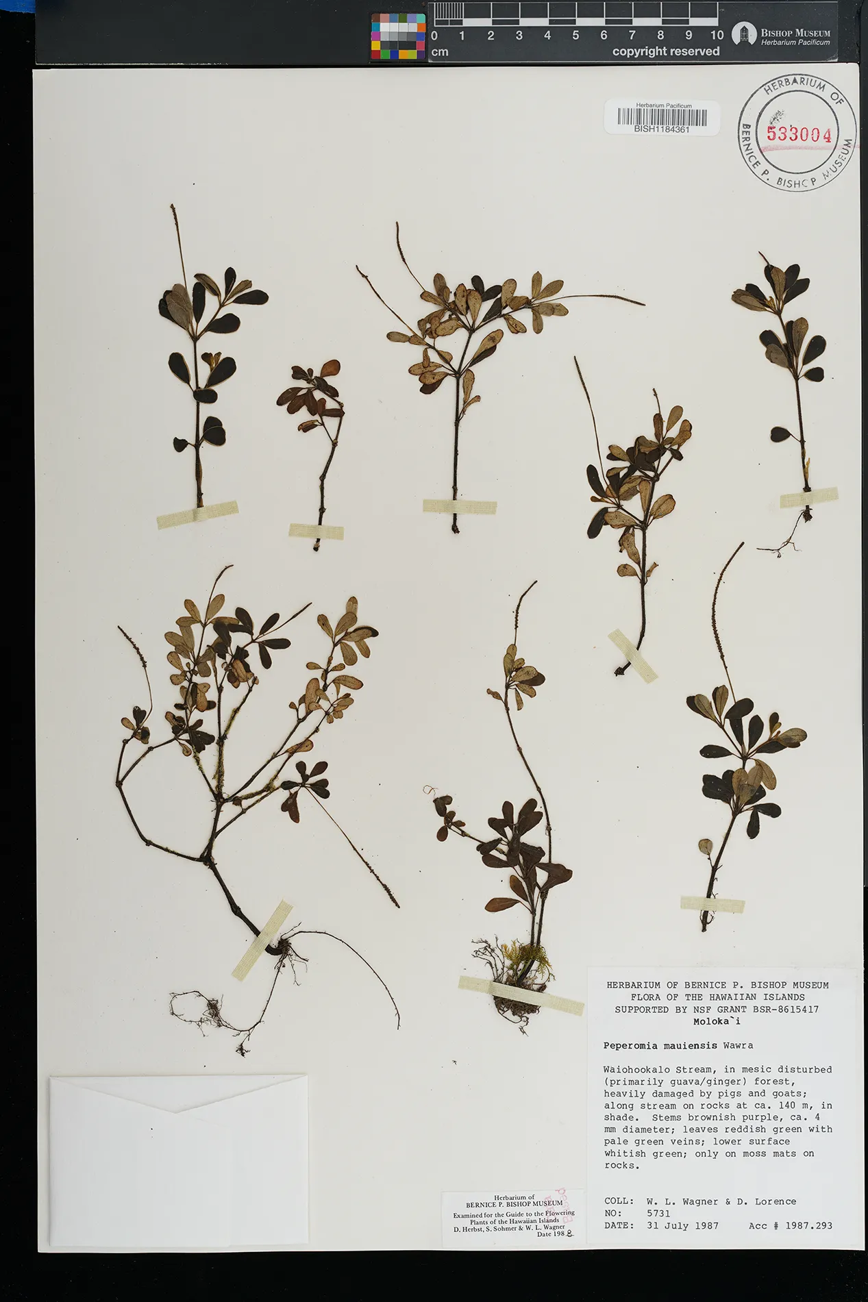 vertical side of large mossy boulder near stream, degraded riparian zone in lowland mesic forest; Peperomia latifolia, P.alternifolia, P. sp., Gonocormus saxifragoides, Vandenboschia cyrtotheca, Oligadenus pinnatifidus, Lepisorus thunbergianus |