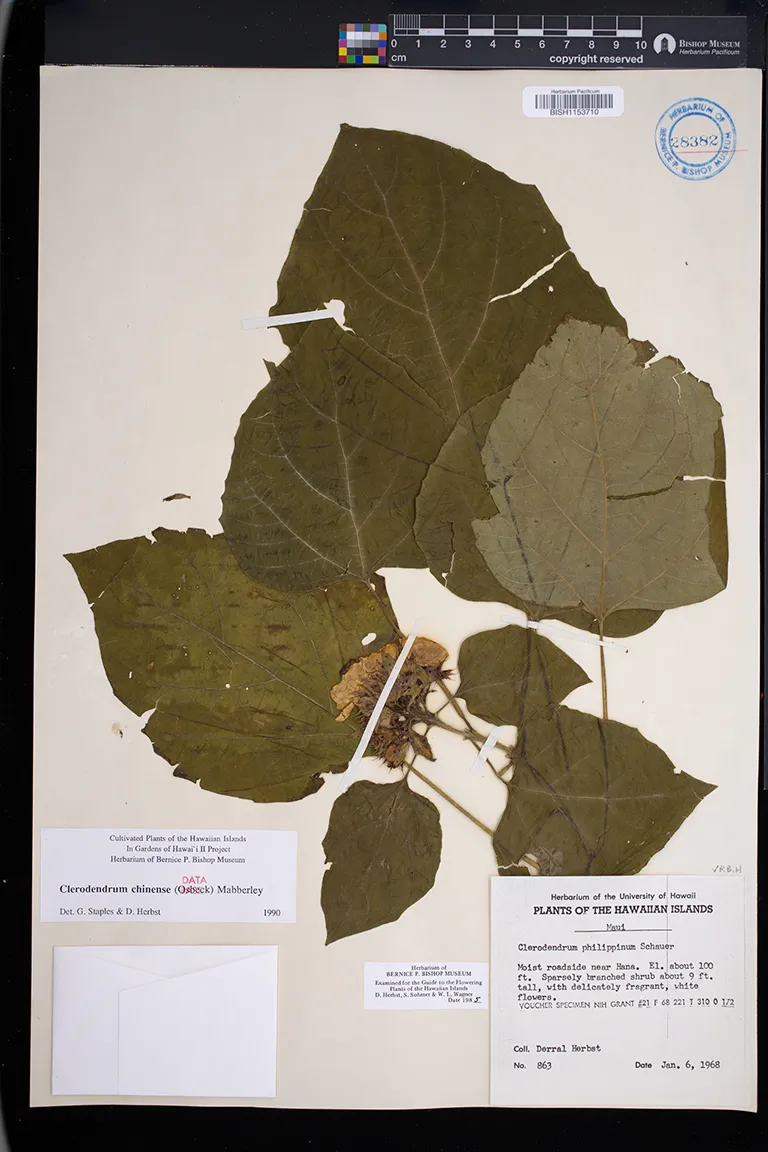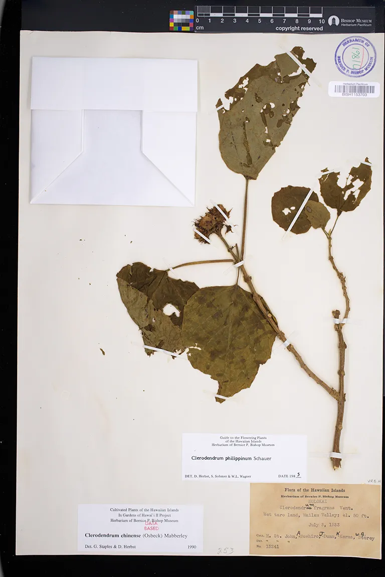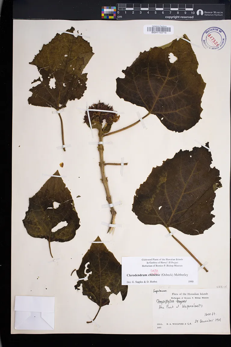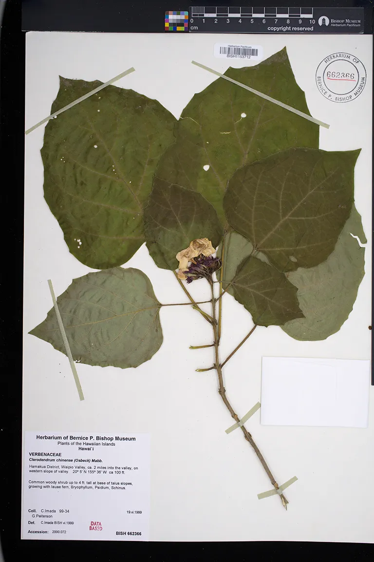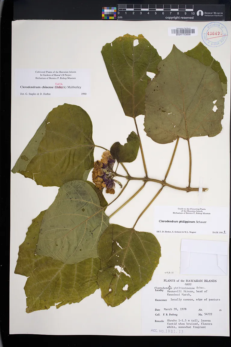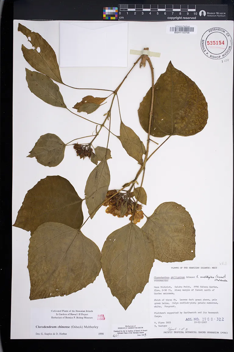 Common woody shrub up to 4 ft. tall at base of talus slopes, growing with lauae fern, Bryophyllum, Psidium, Schinus. |
