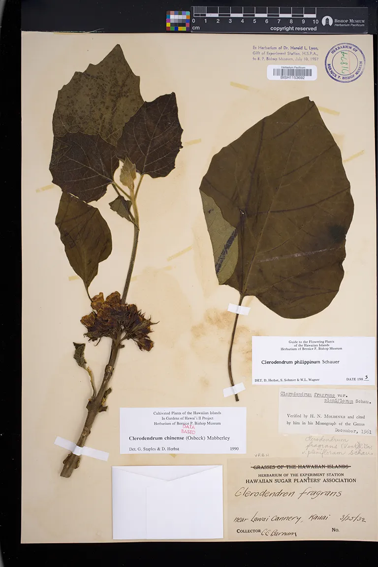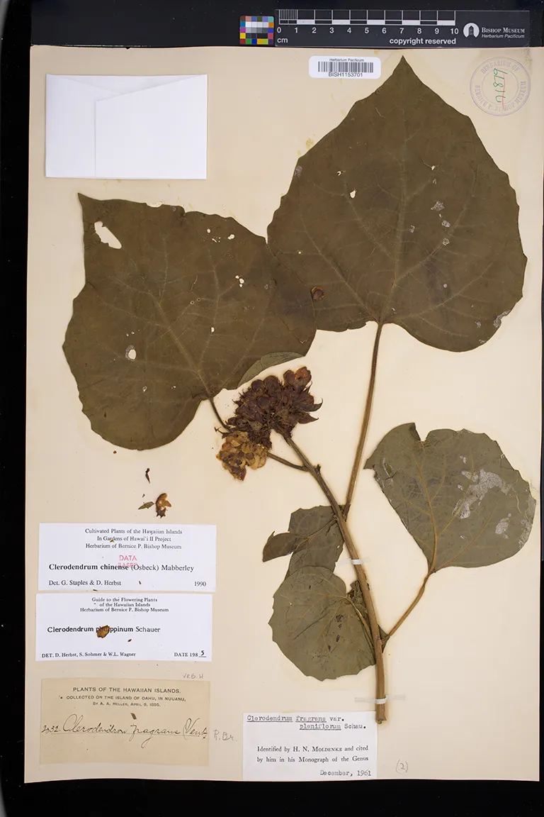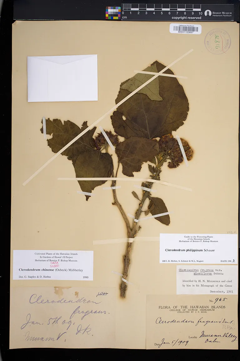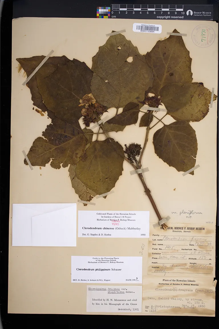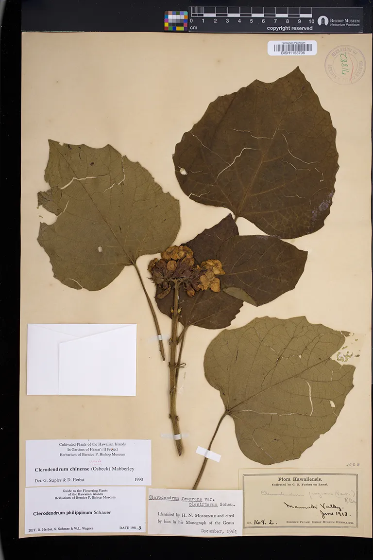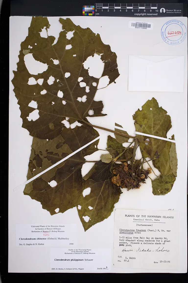 Common woody shrub up to 4 ft. tall at base of talus slopes, growing with lauae fern, Bryophyllum, Psidium, Schinus. |