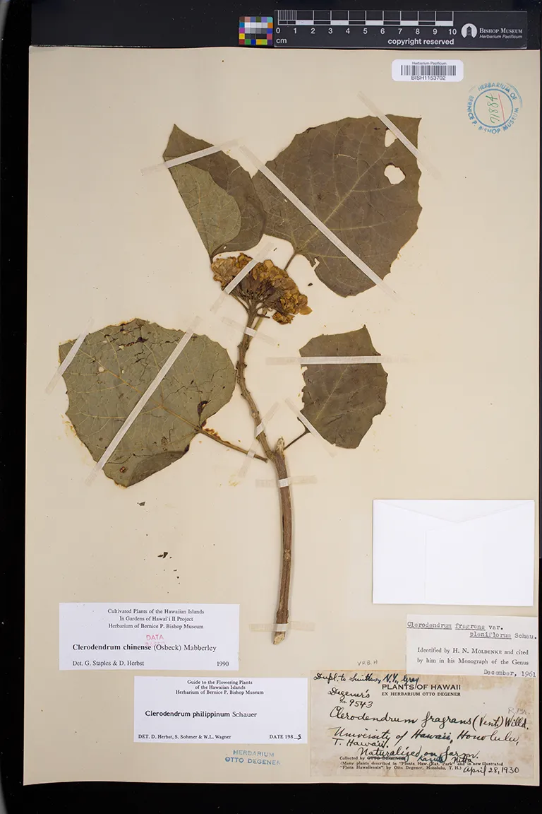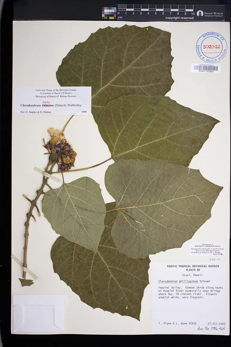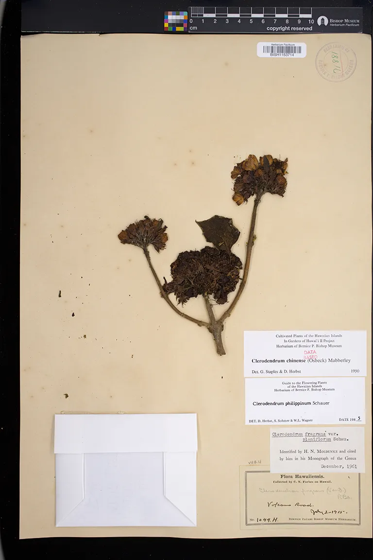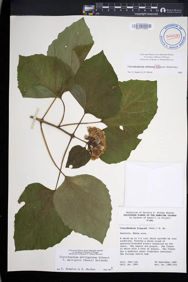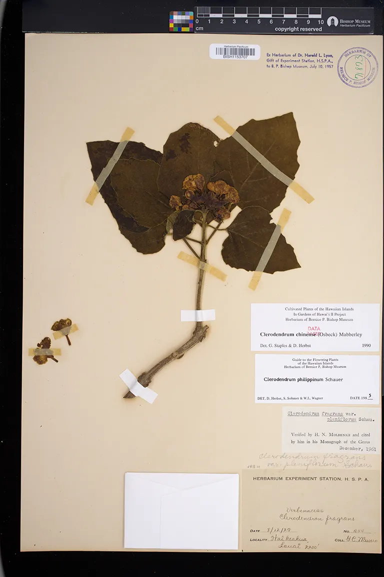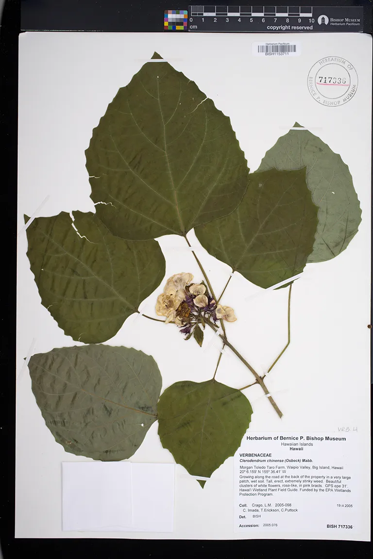 Common woody shrub up to 4 ft. tall at base of talus slopes, growing with lauae fern, Bryophyllum, Psidium, Schinus. |