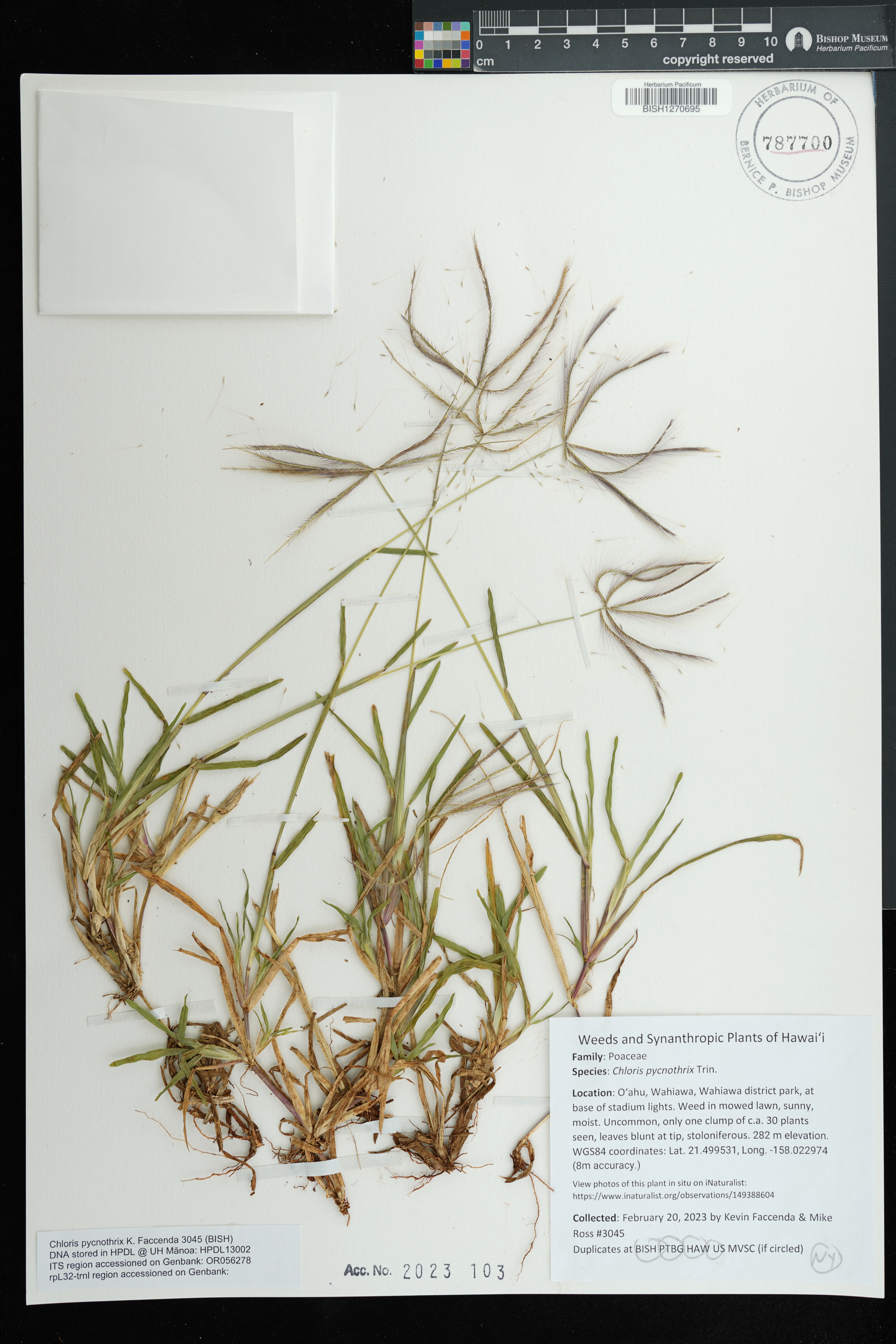 Kingdom: Viridiplantae Phylum: Magnoliophyta Class/Clade: Monocots Order: Poales Family: Poaceae Genus: Chloris
