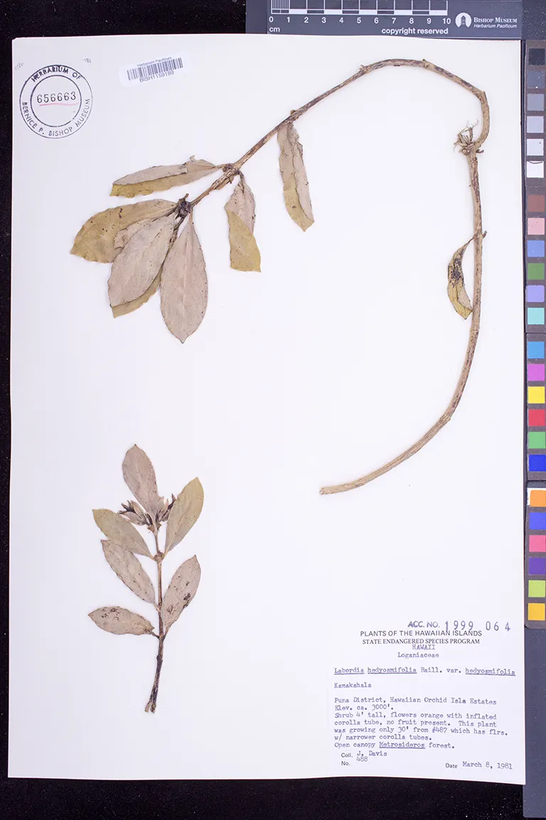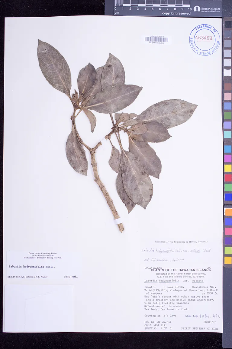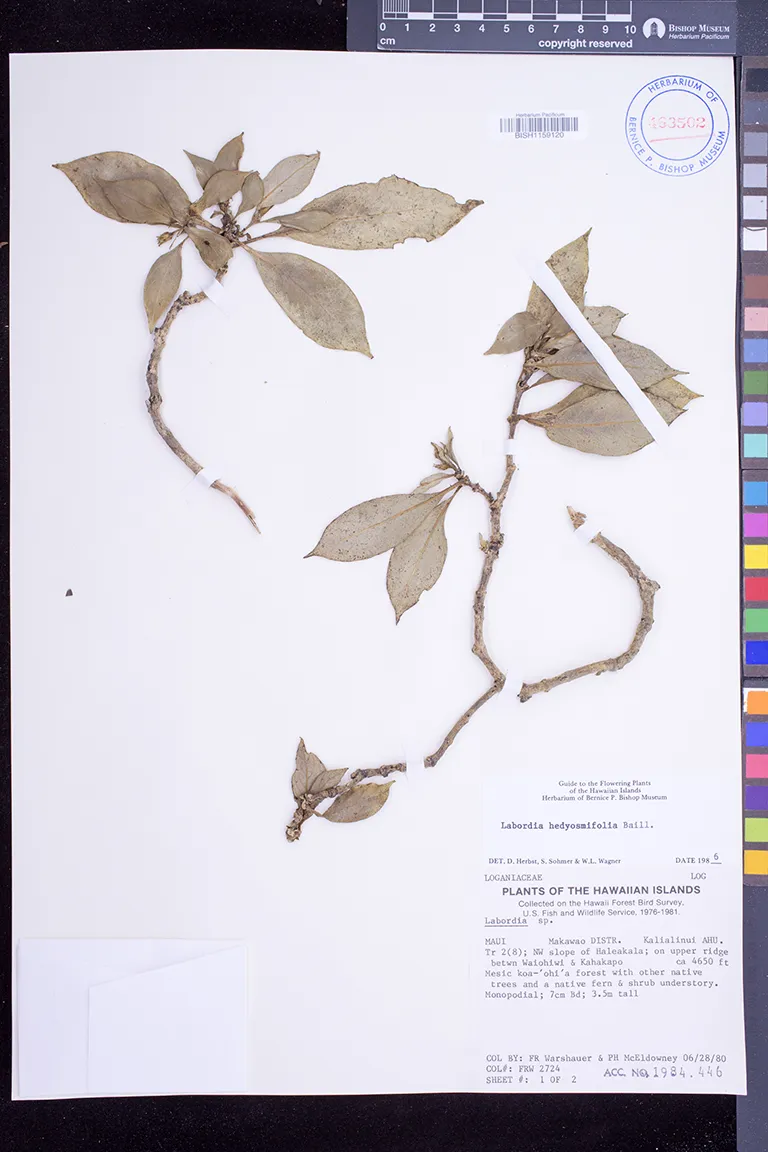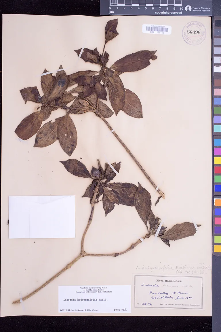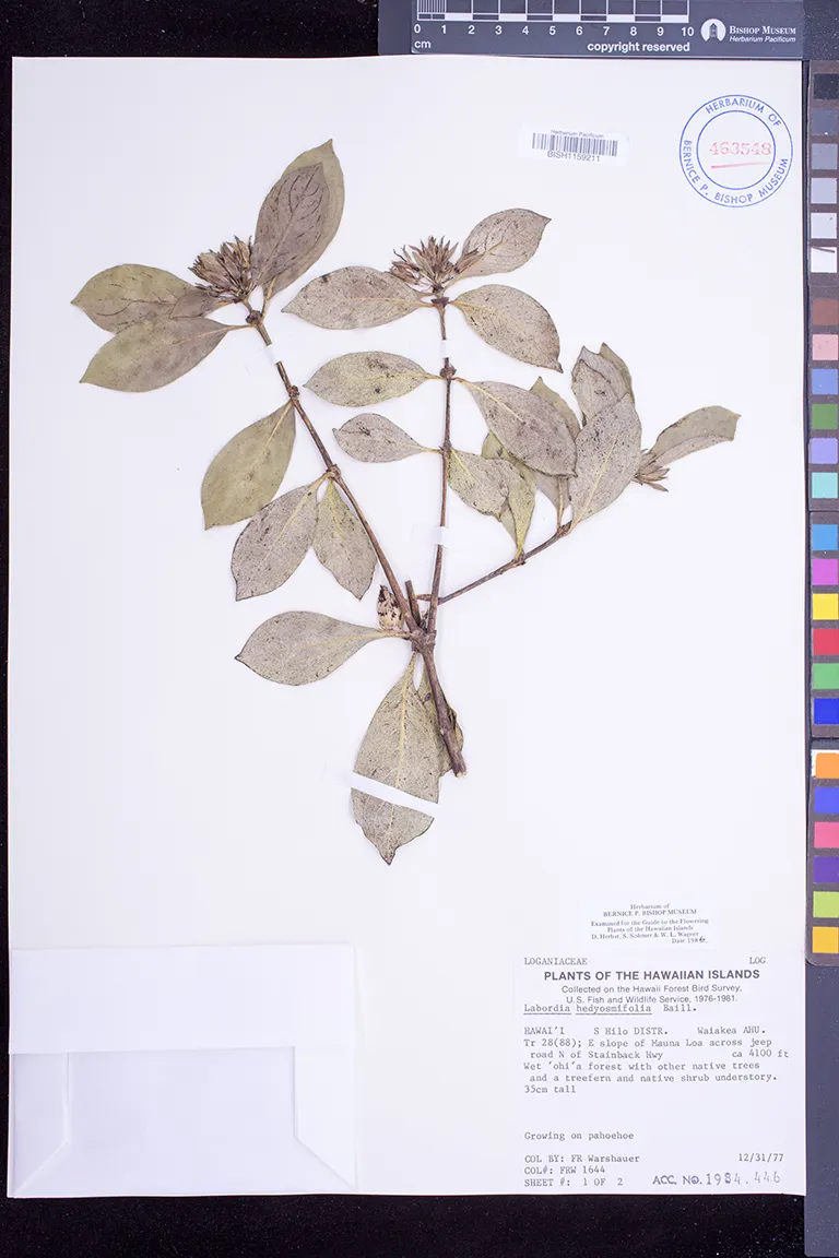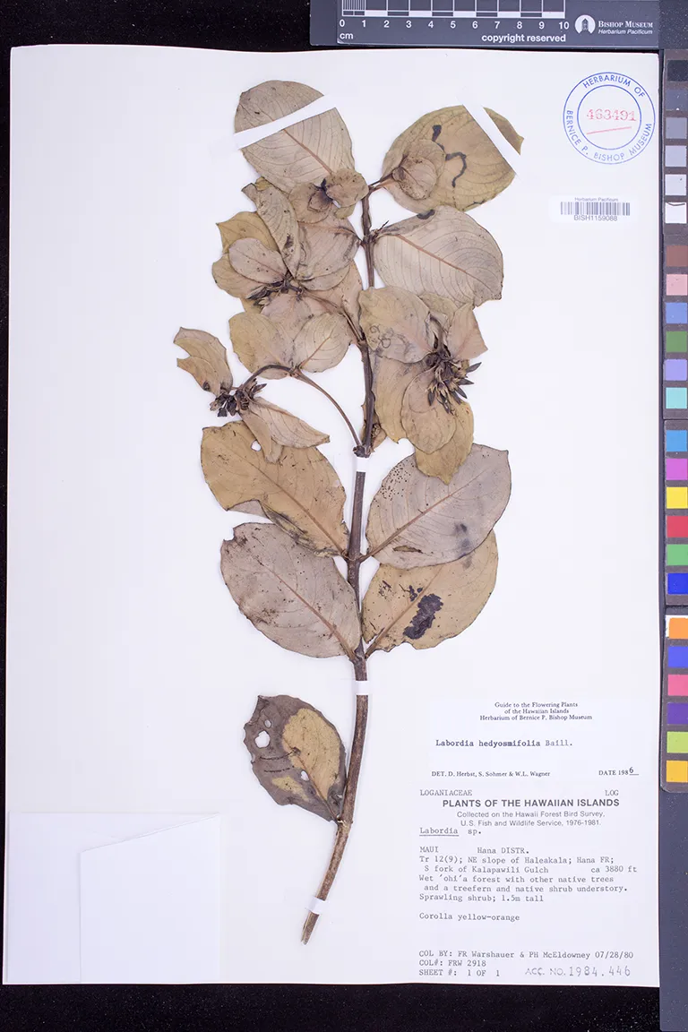 Montane Wet Shrubland at 4100 ft near the summit of Lihau with Metrosideros, Clermontia arborescens, Coprosma, Vaccinium calycinum, Broussaisia, Dubautia spp. Hedyotis, native herbs, sedges and ferns |