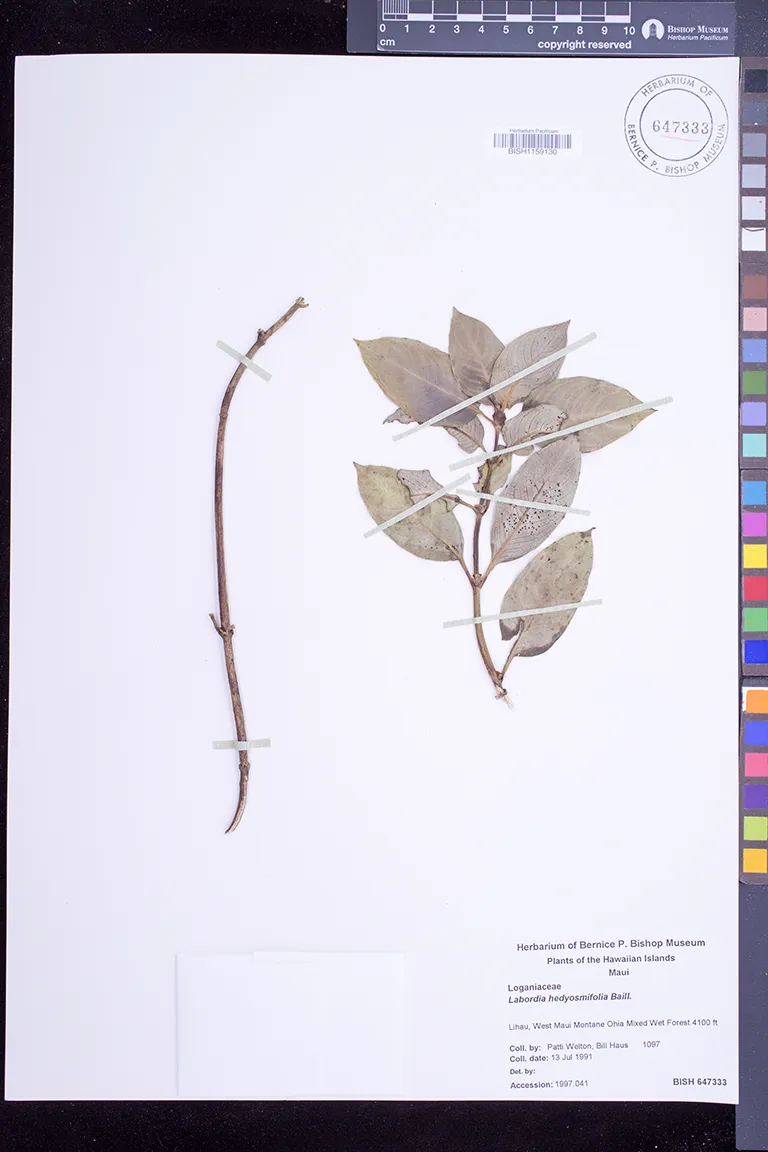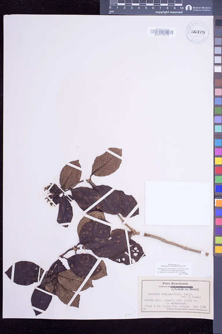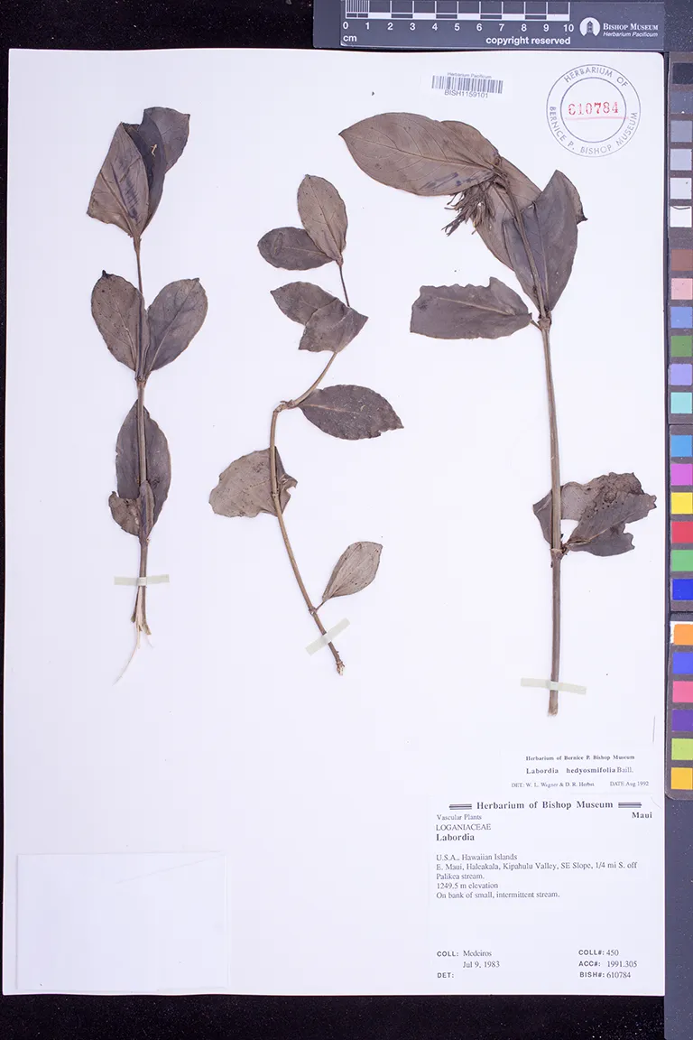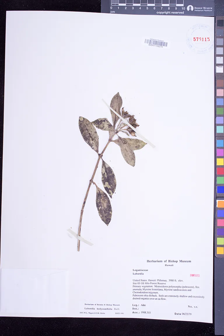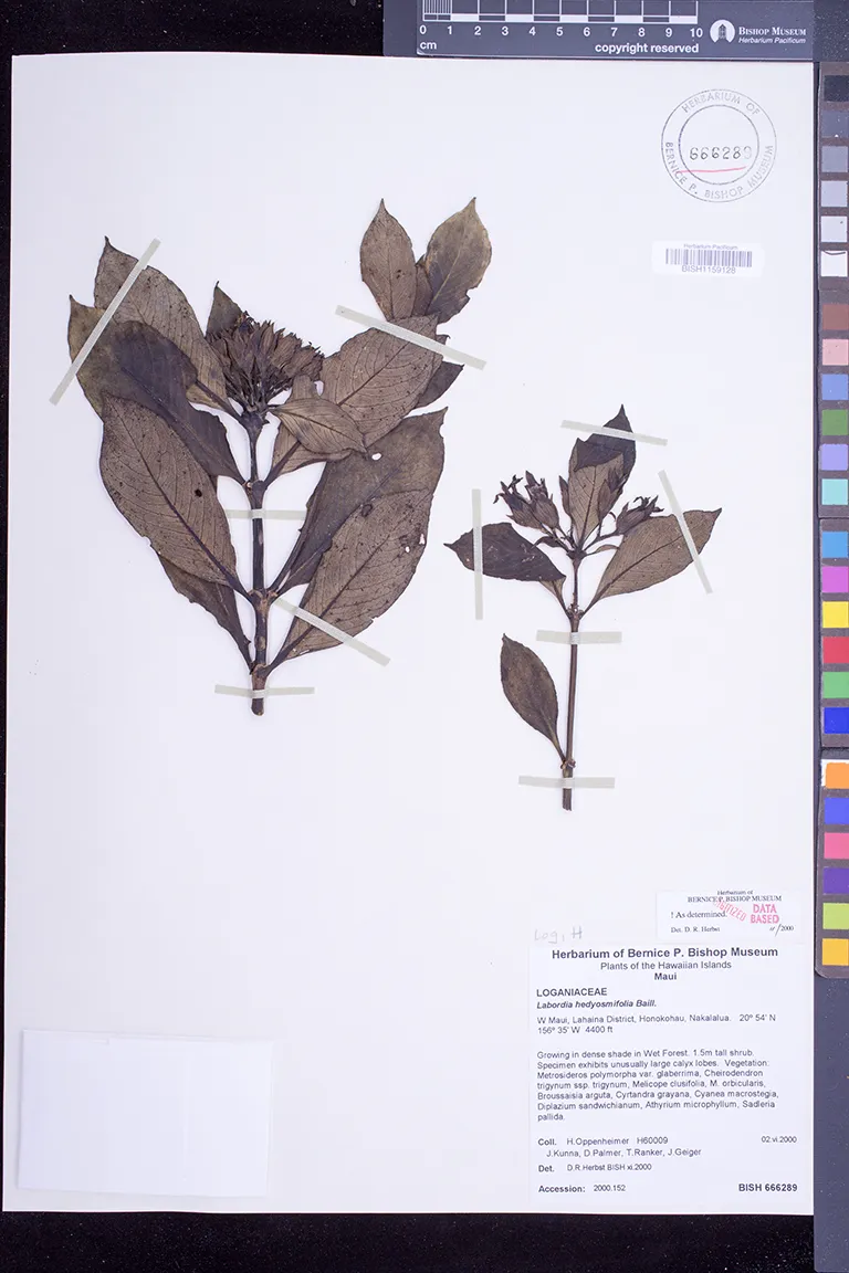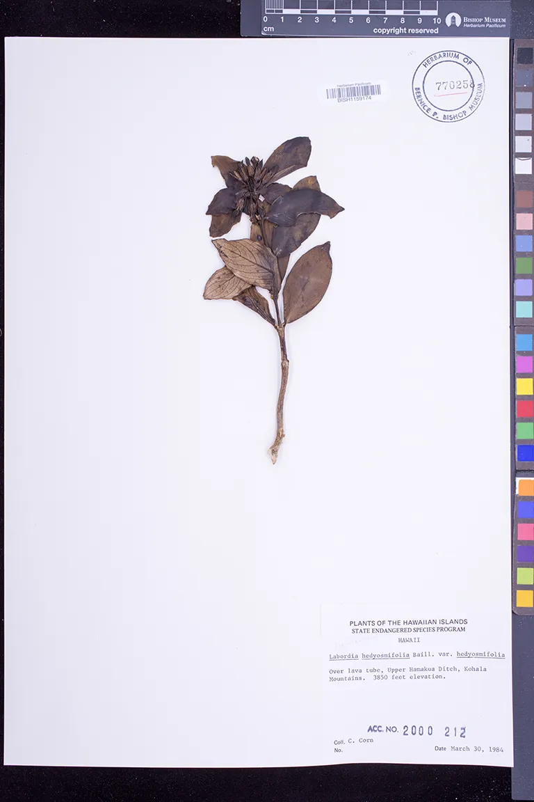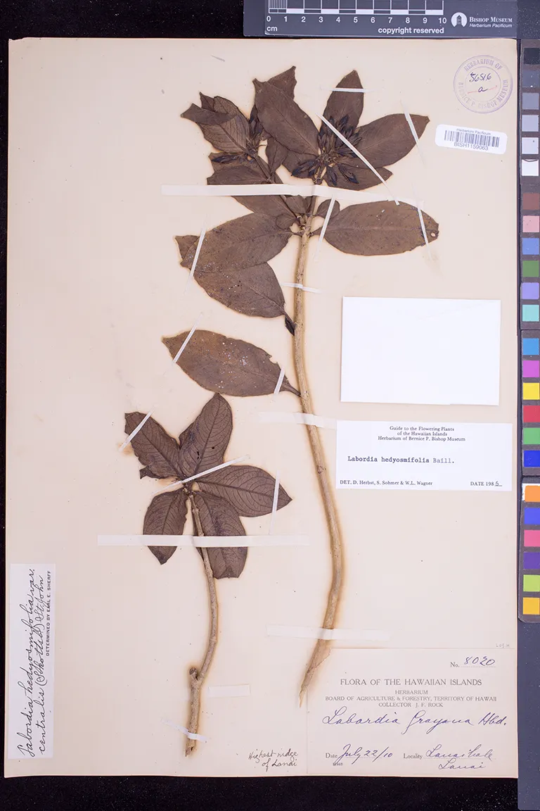 Montane Wet Shrubland at 4100 ft near the summit of Lihau with Metrosideros, Clermontia arborescens, Coprosma, Vaccinium calycinum, Broussaisia, Dubautia spp. Hedyotis, native herbs, sedges and ferns |