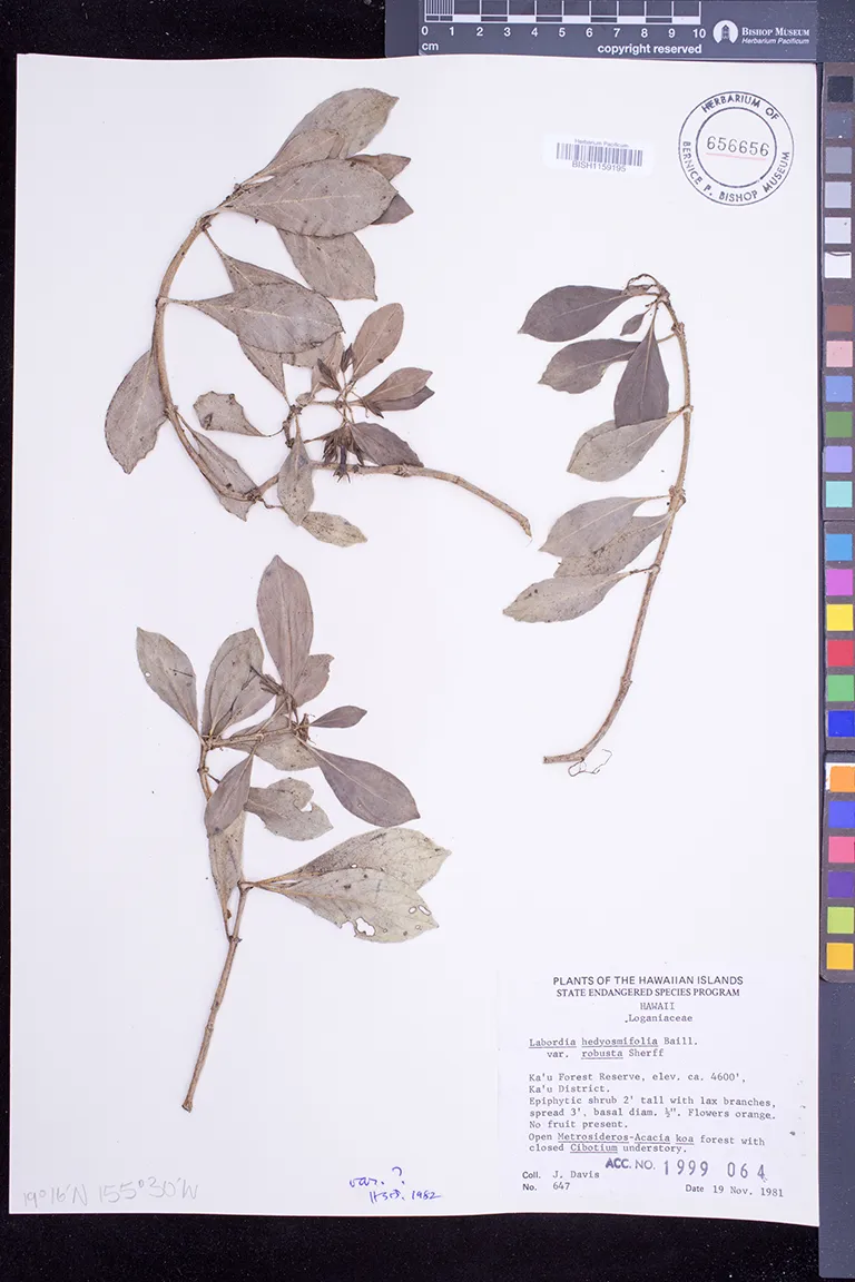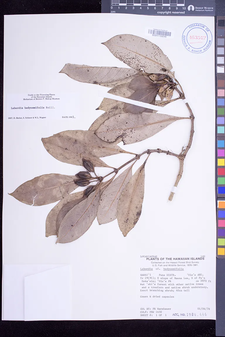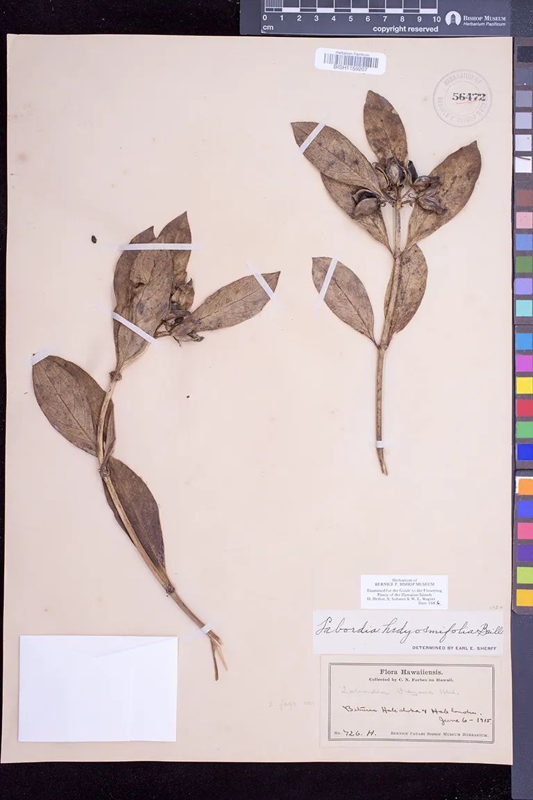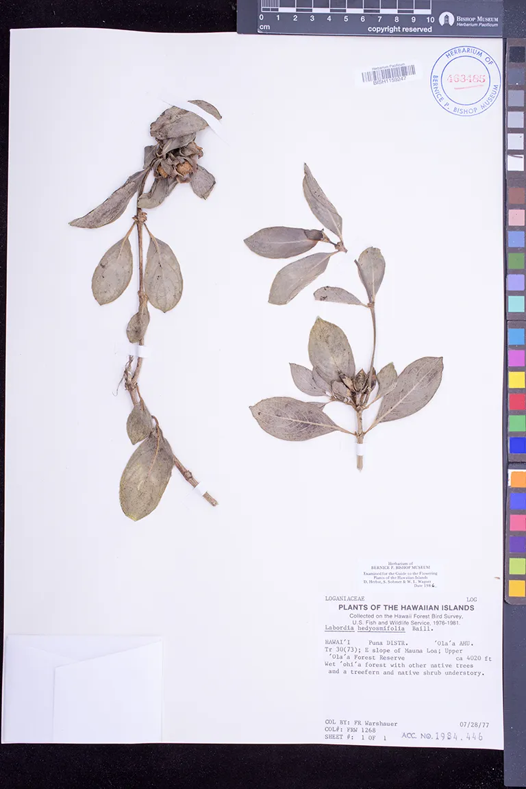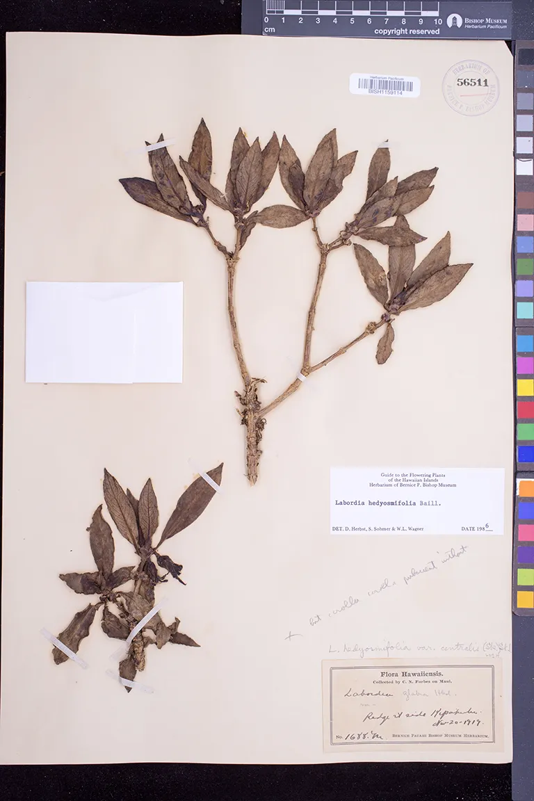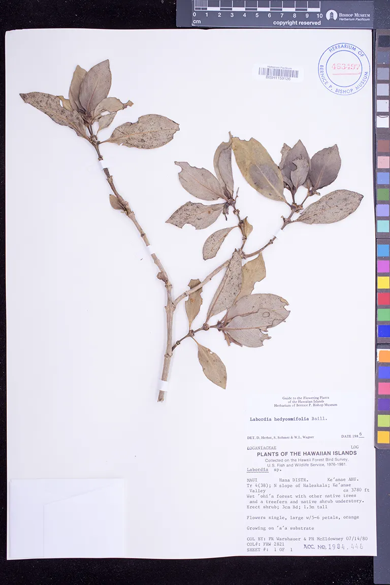 Montane Wet Shrubland at 4100 ft near the summit of Lihau with Metrosideros, Clermontia arborescens, Coprosma, Vaccinium calycinum, Broussaisia, Dubautia spp. Hedyotis, native herbs, sedges and ferns |