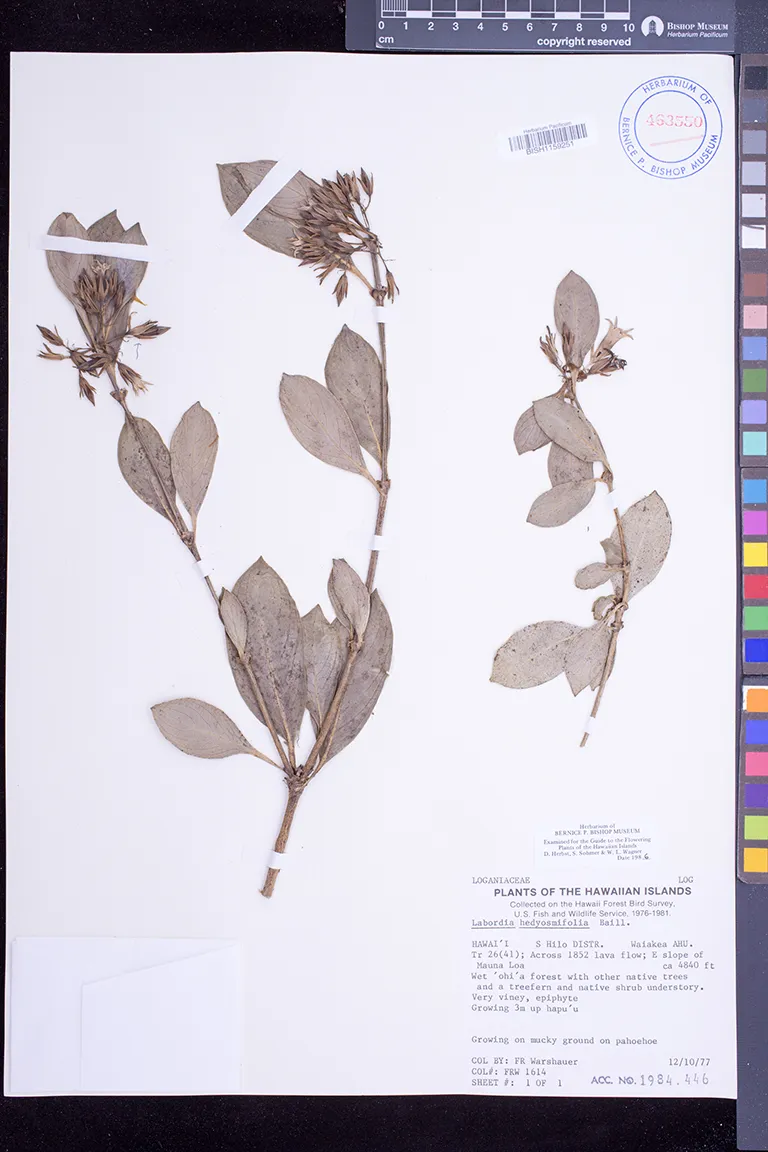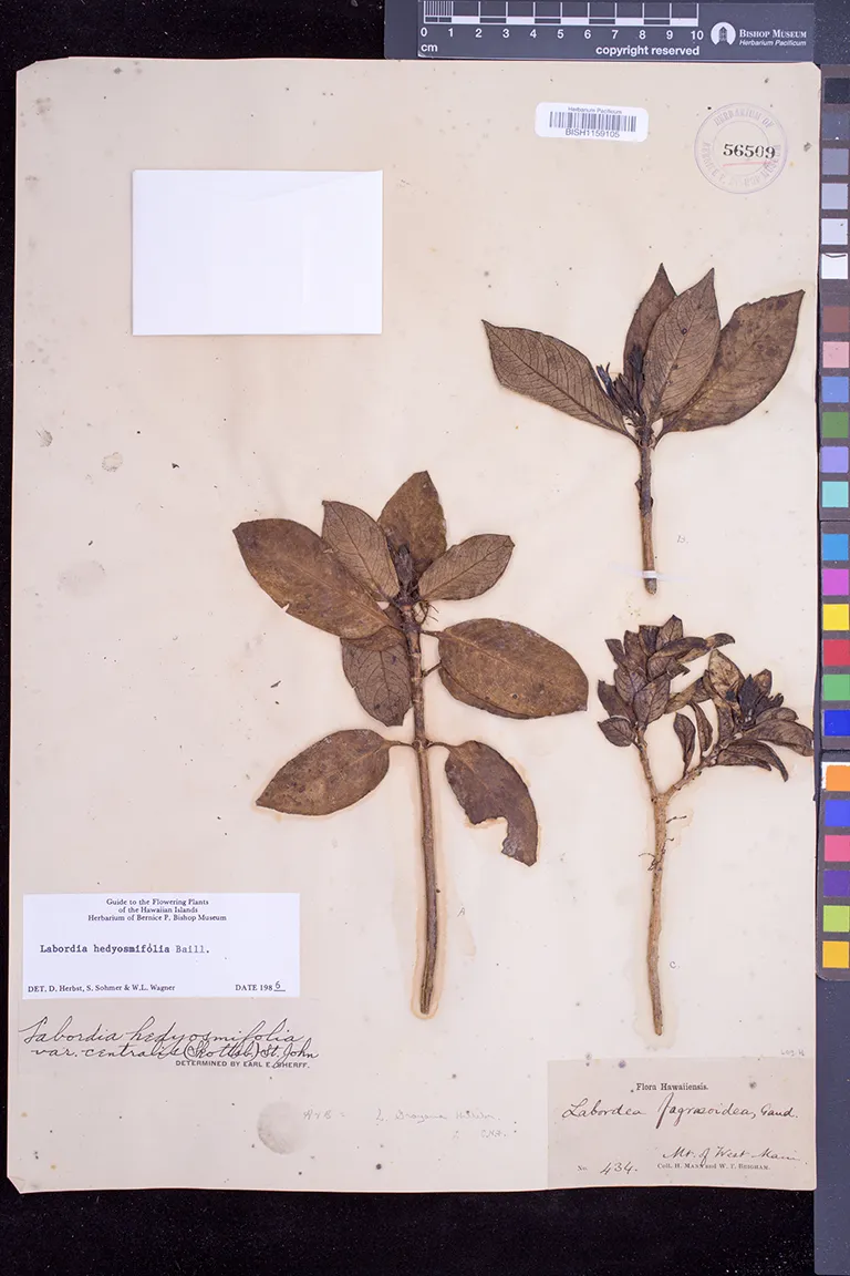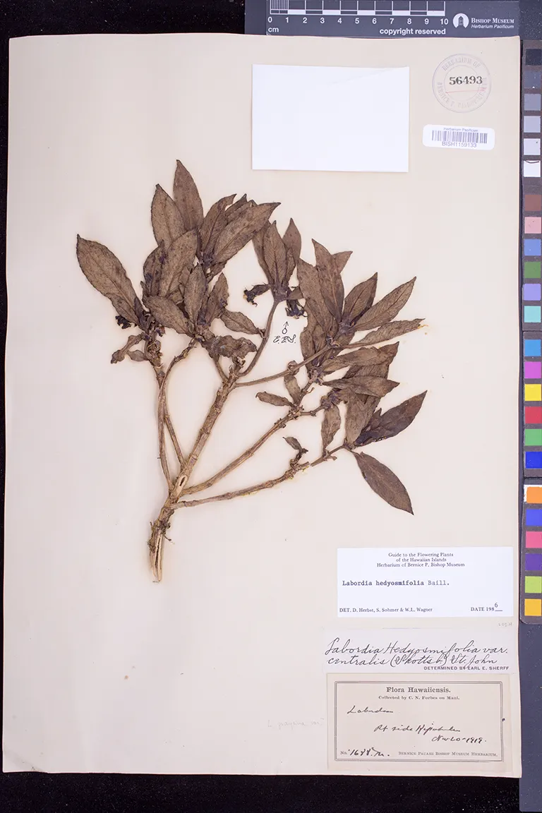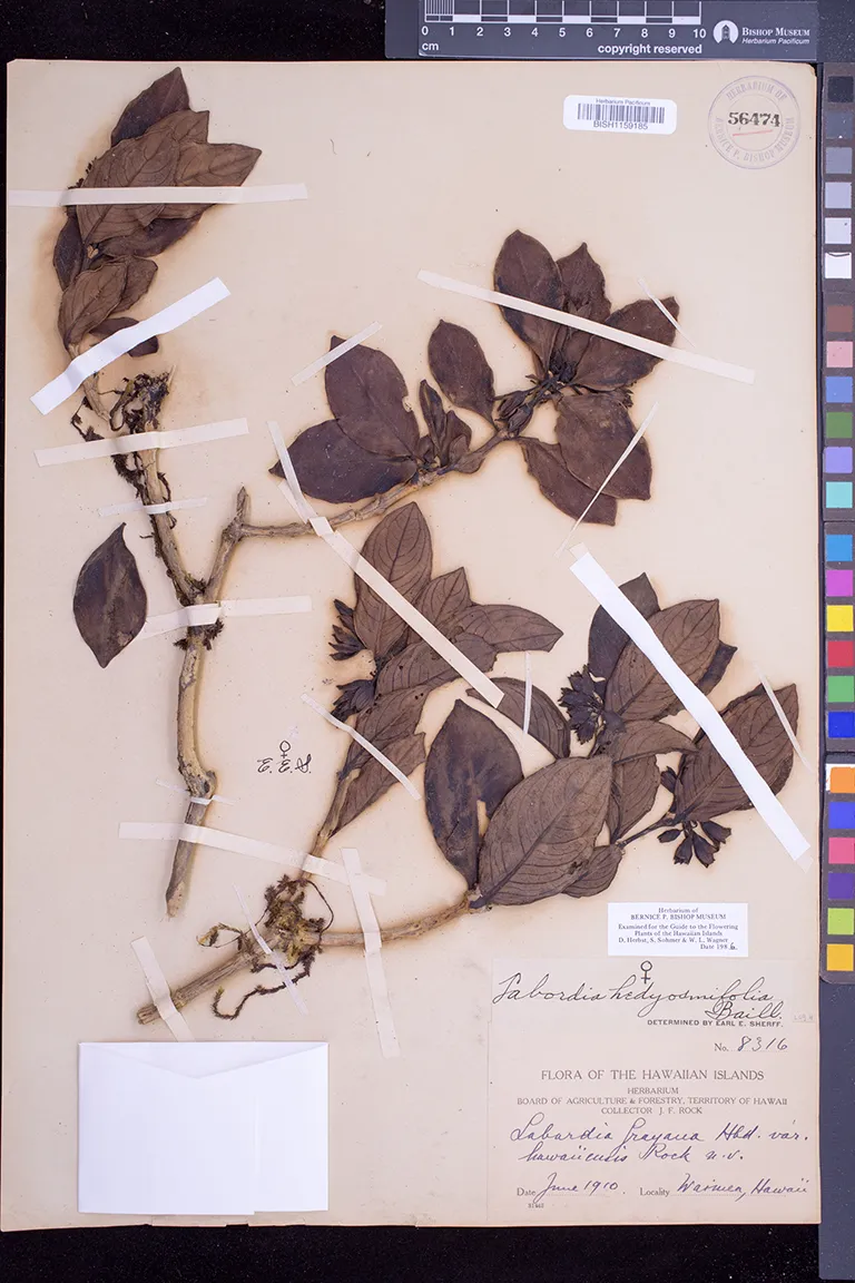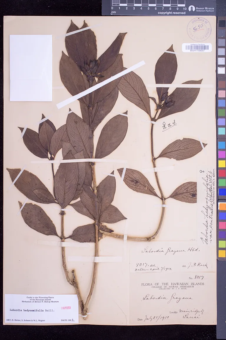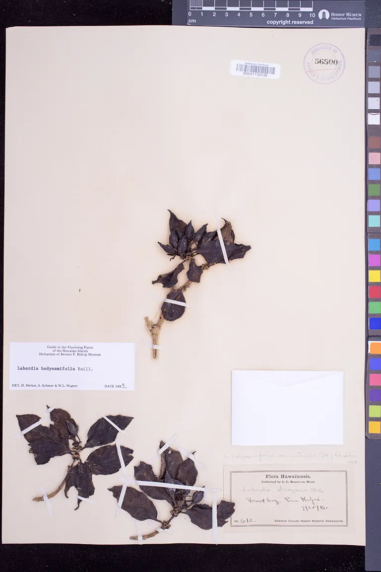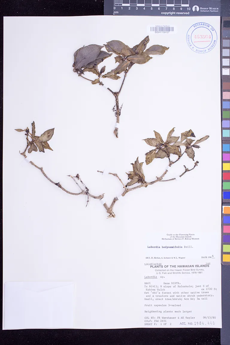 Montane Wet Shrubland at 4100 ft near the summit of Lihau with Metrosideros, Clermontia arborescens, Coprosma, Vaccinium calycinum, Broussaisia, Dubautia spp. Hedyotis, native herbs, sedges and ferns |