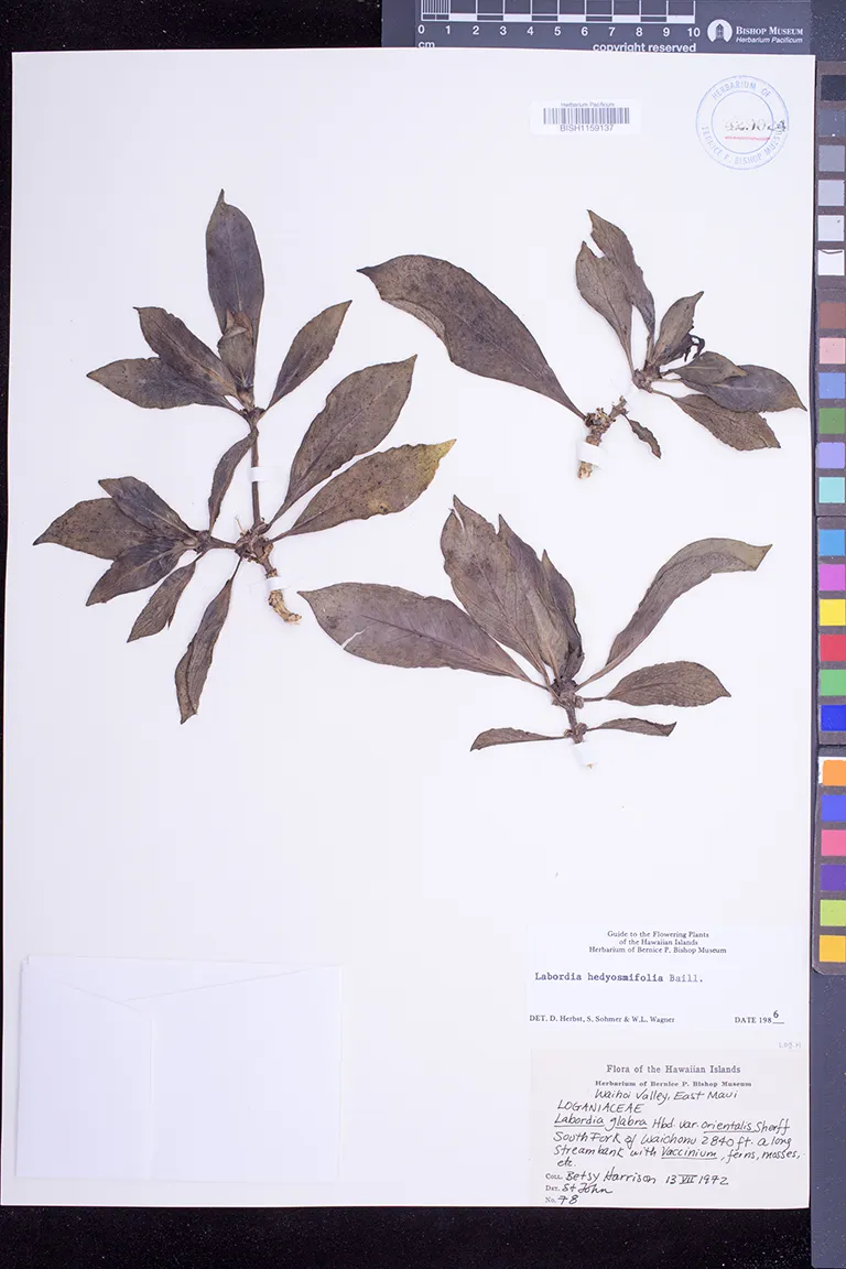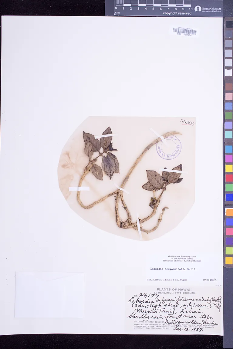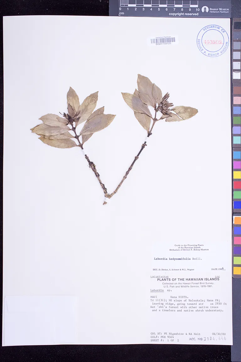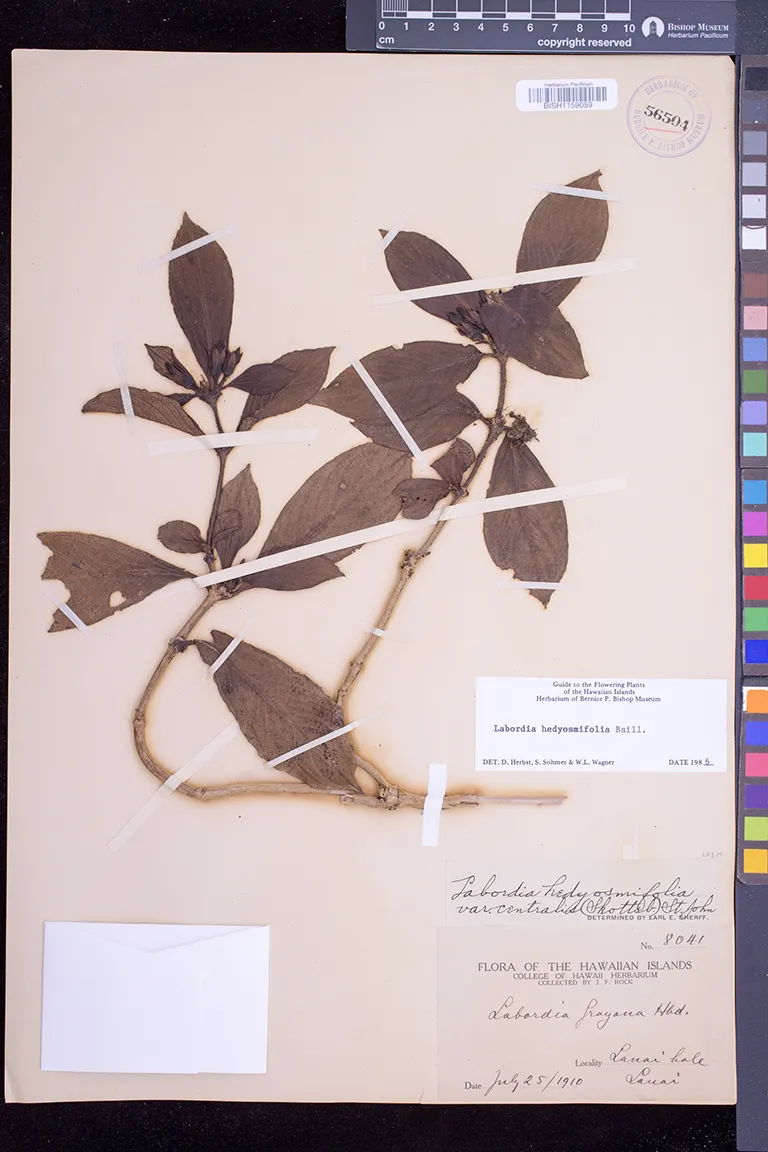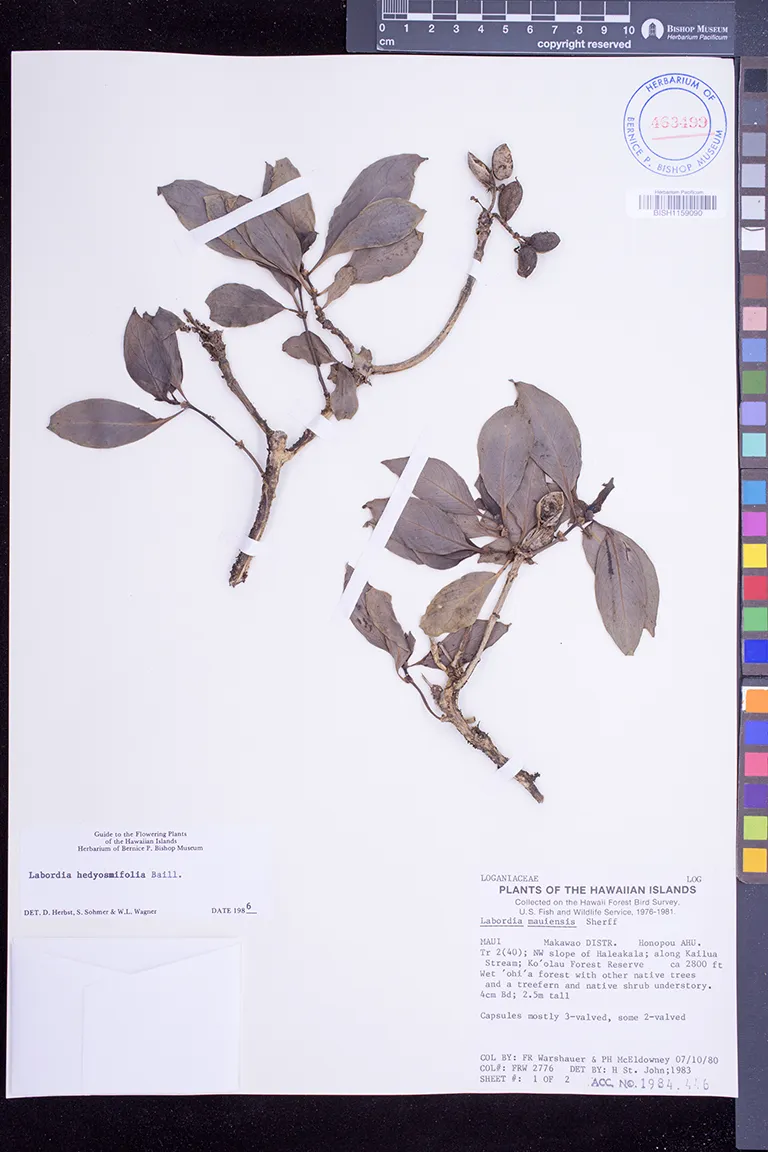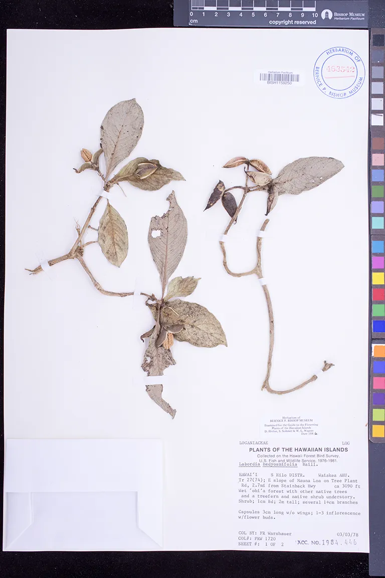 Montane Wet Shrubland at 4100 ft near the summit of Lihau with Metrosideros, Clermontia arborescens, Coprosma, Vaccinium calycinum, Broussaisia, Dubautia spp. Hedyotis, native herbs, sedges and ferns |