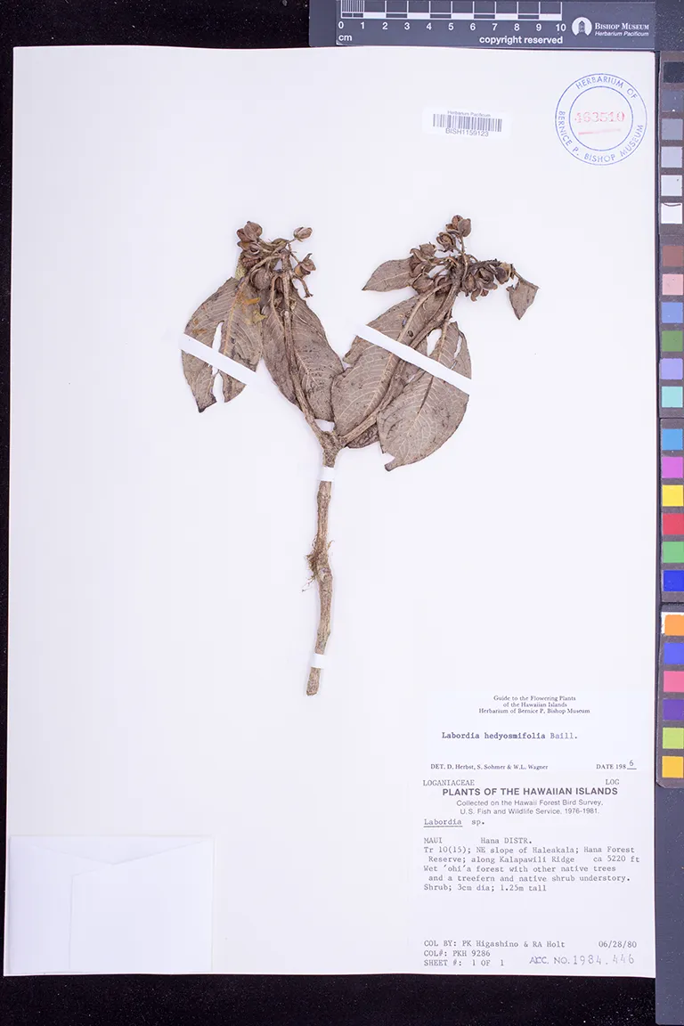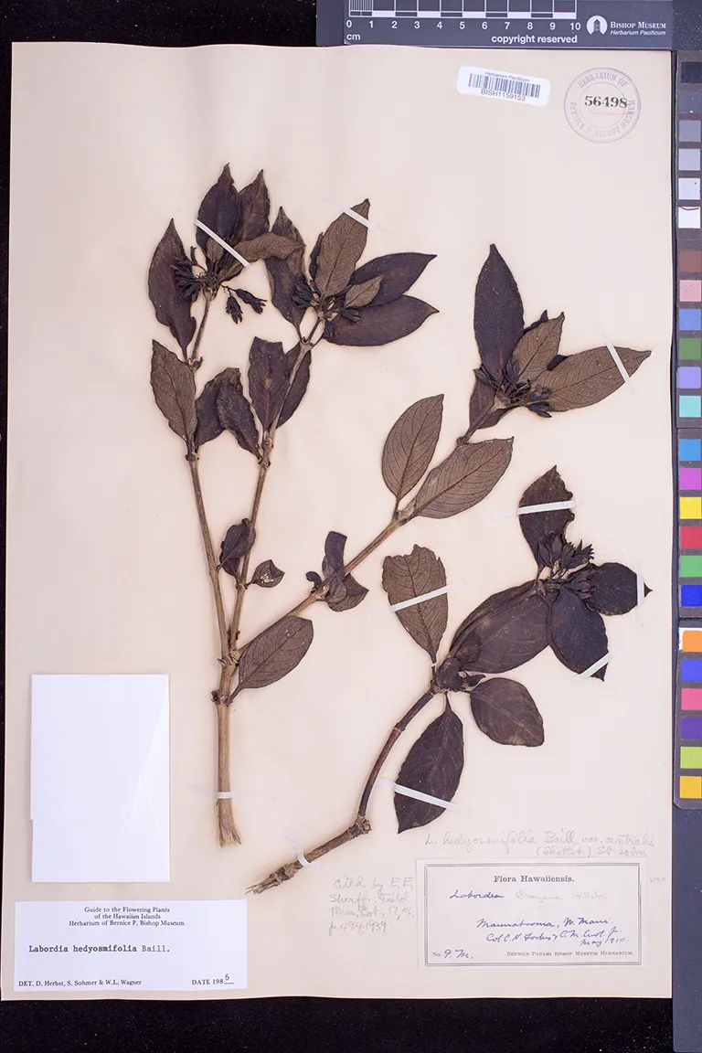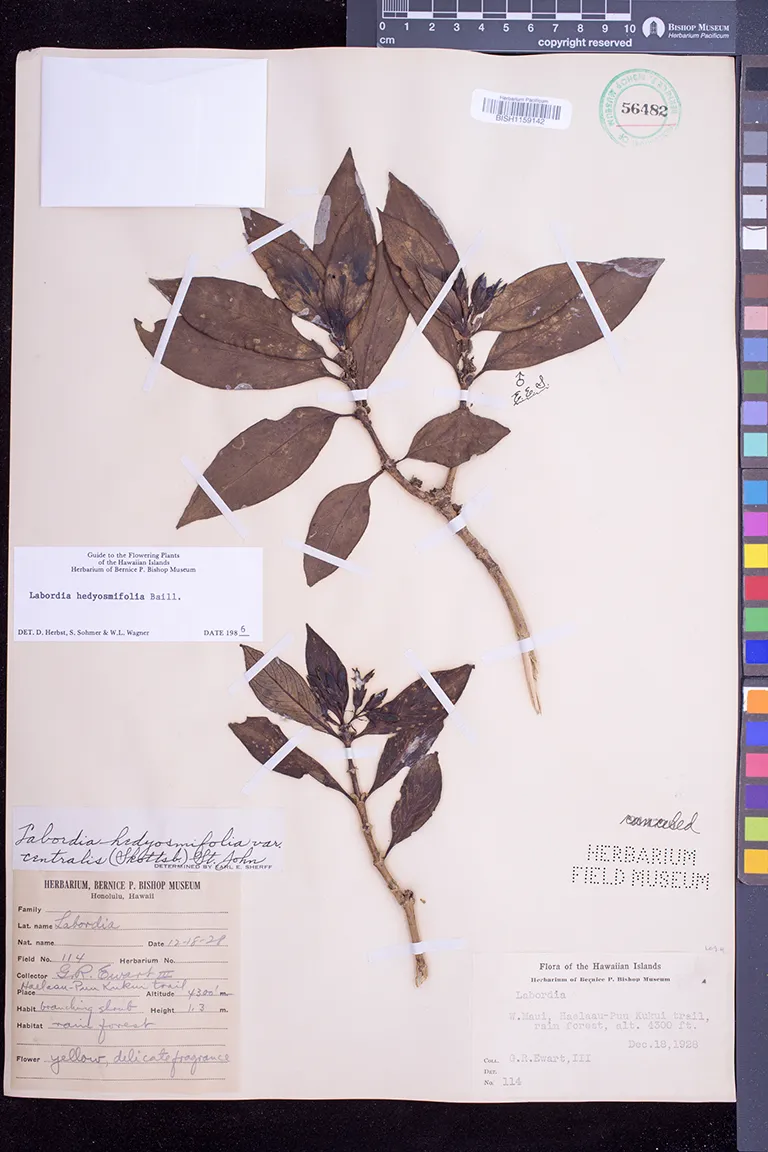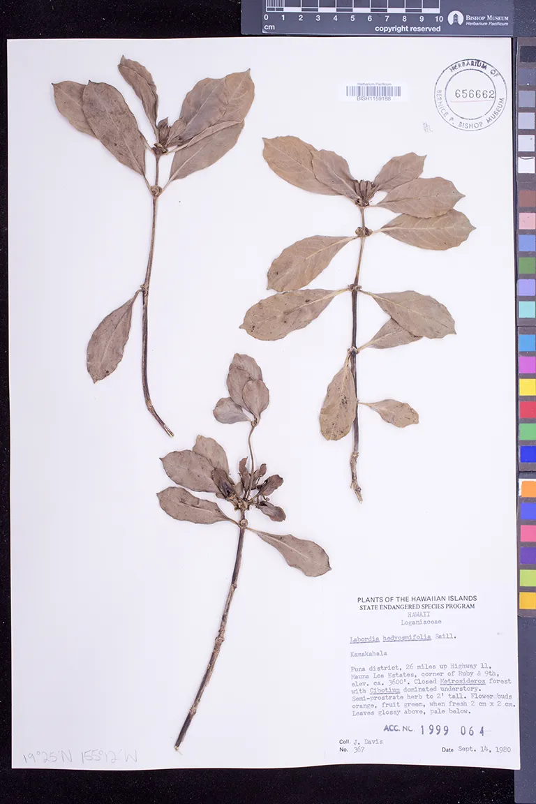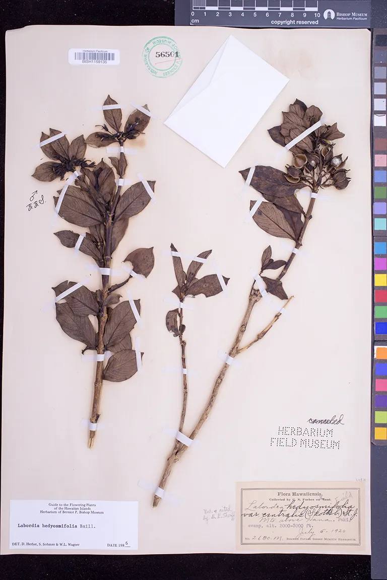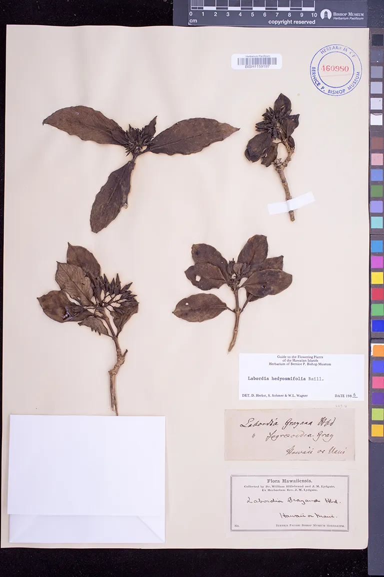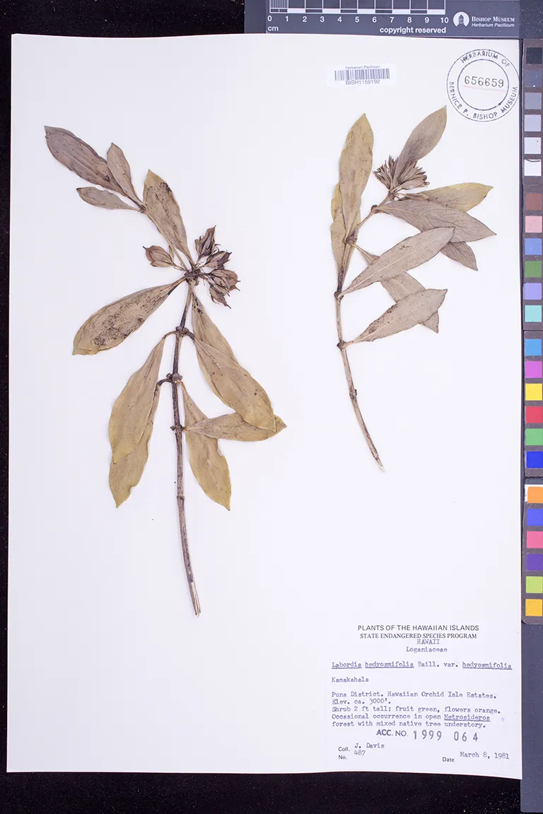 Montane Wet Shrubland at 4100 ft near the summit of Lihau with Metrosideros, Clermontia arborescens, Coprosma, Vaccinium calycinum, Broussaisia, Dubautia spp. Hedyotis, native herbs, sedges and ferns |