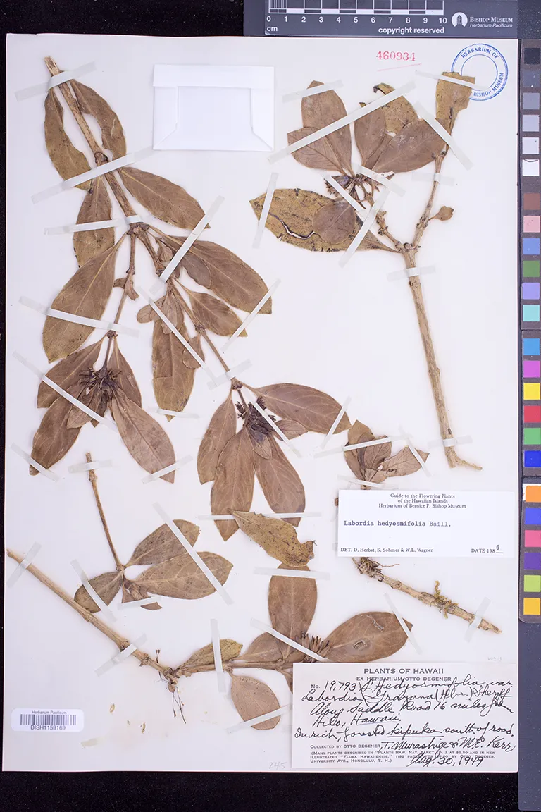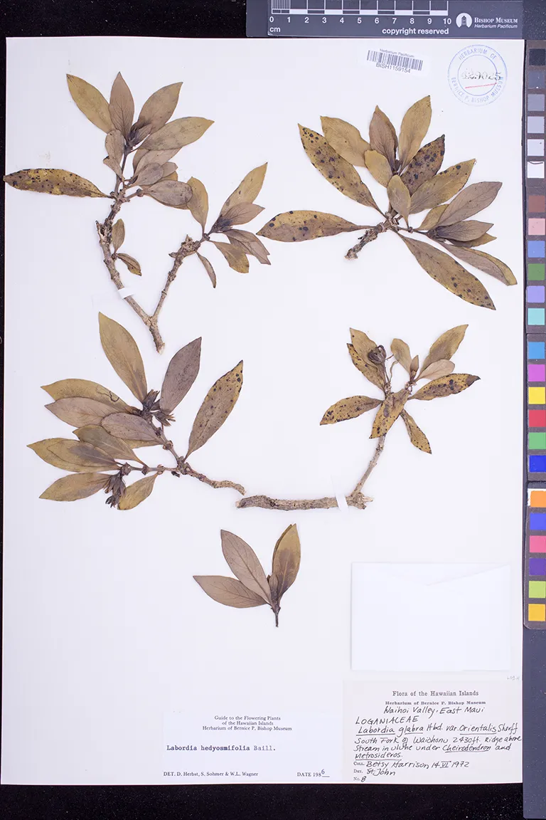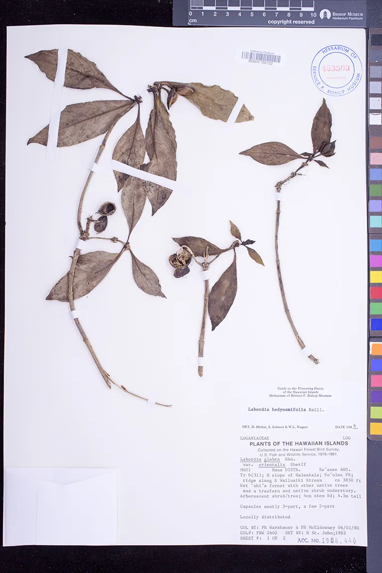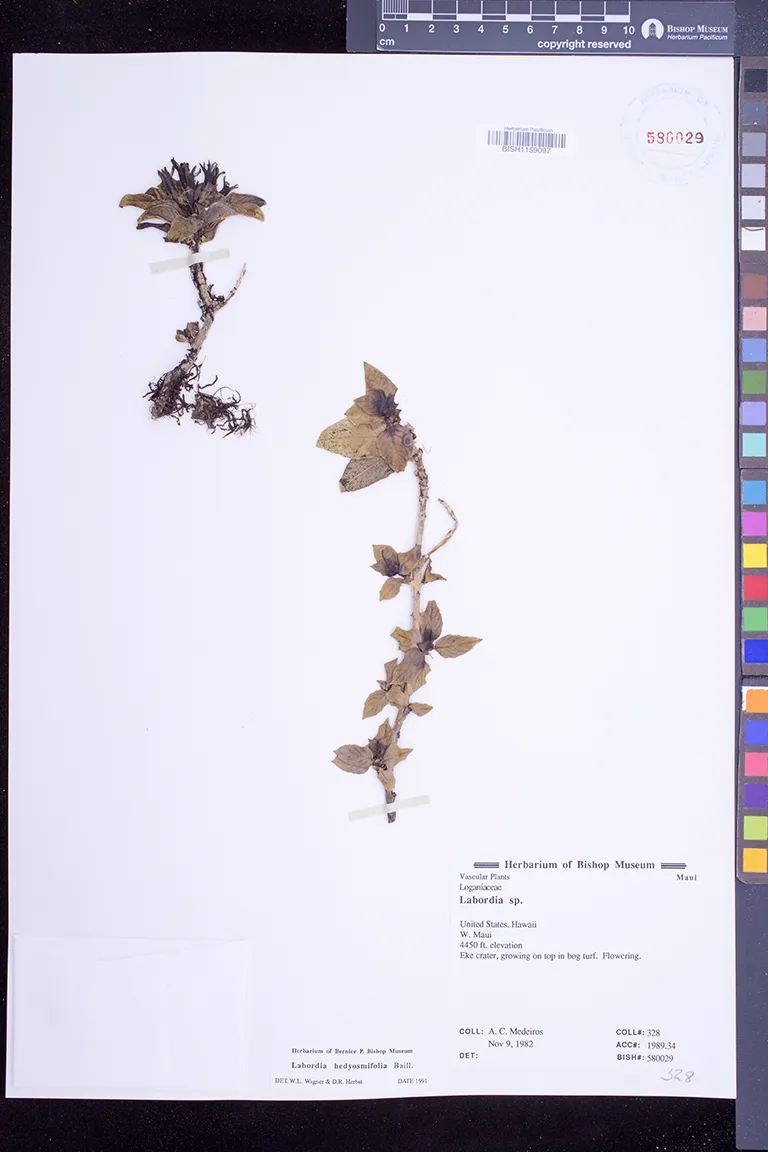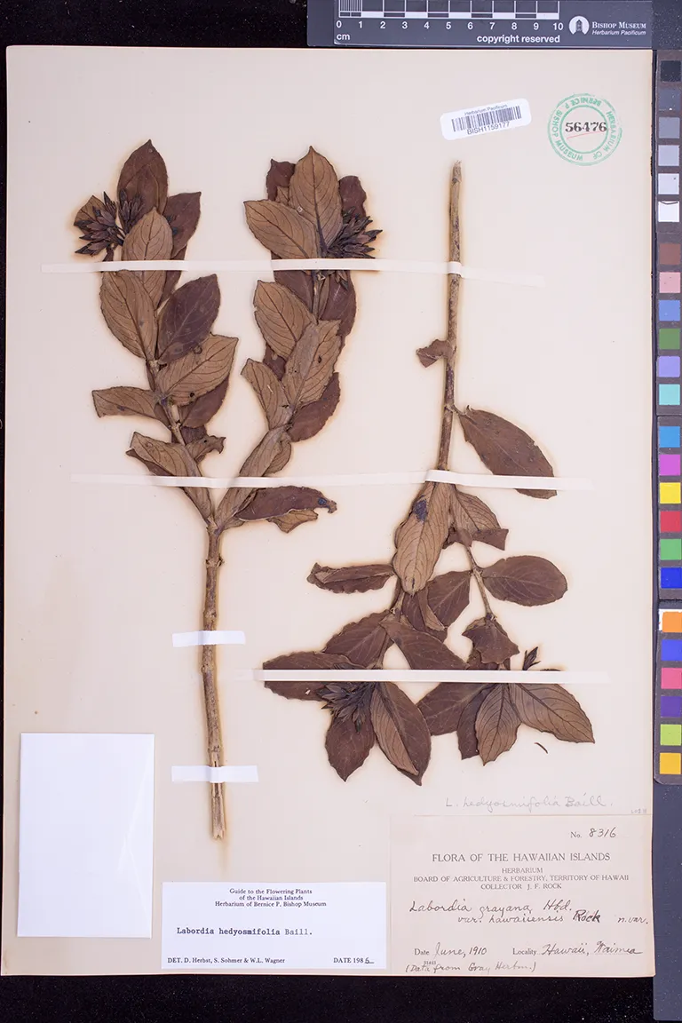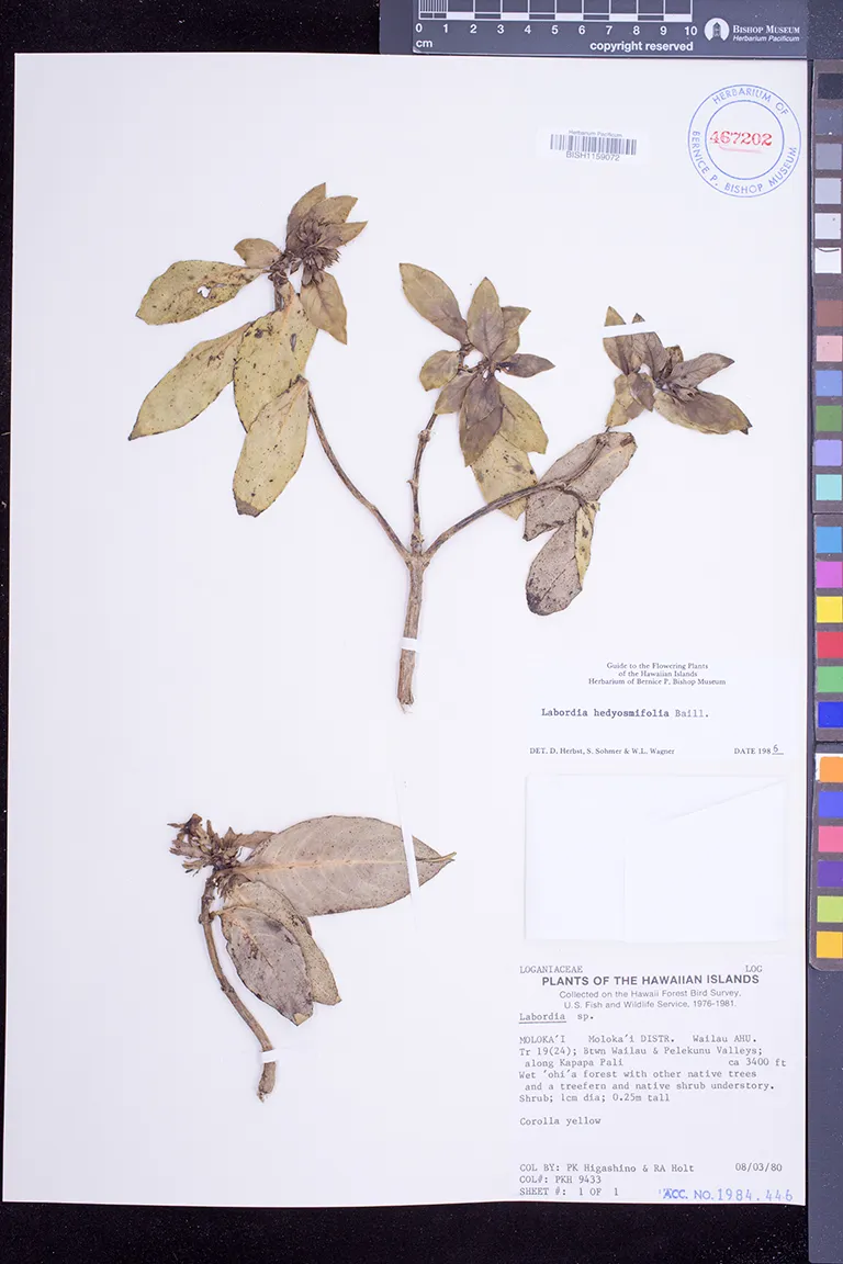 Montane Wet Shrubland at 4100 ft near the summit of Lihau with Metrosideros, Clermontia arborescens, Coprosma, Vaccinium calycinum, Broussaisia, Dubautia spp. Hedyotis, native herbs, sedges and ferns |