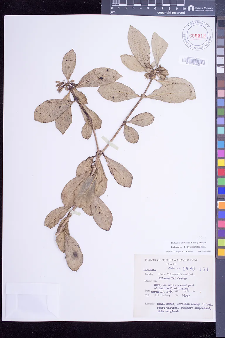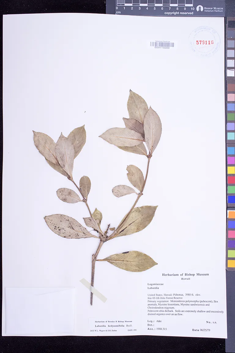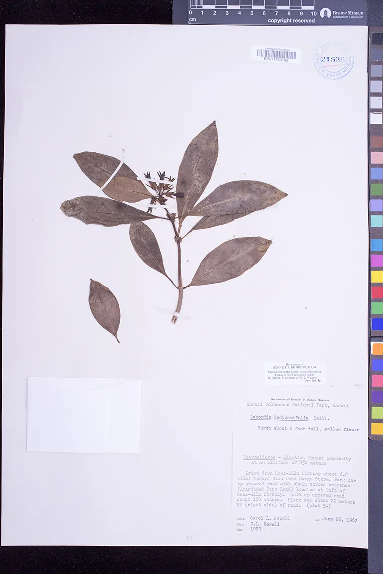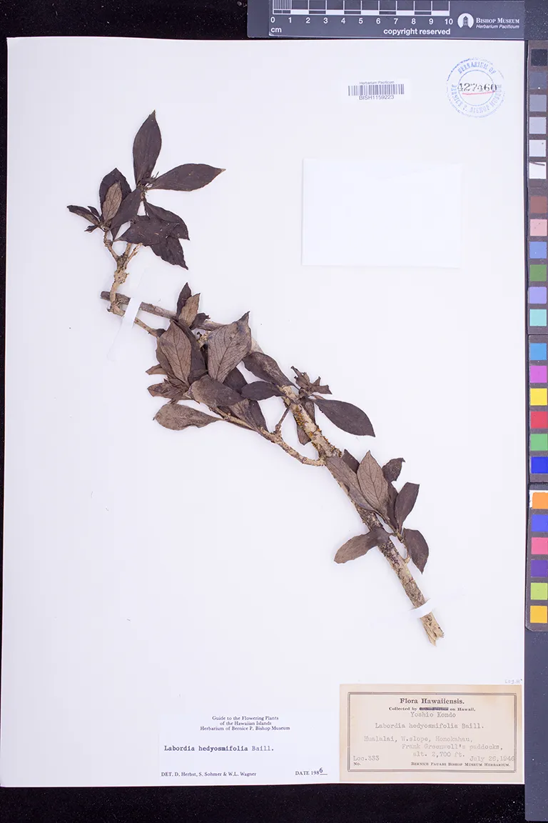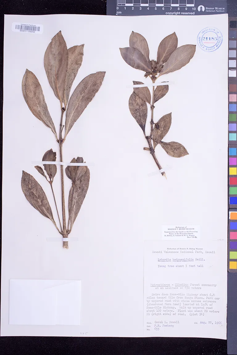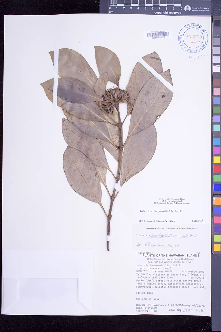 Dry naio scrub forest with other native trees and native shrub-exotic grass understory. Growing on pahoehoe substrate |