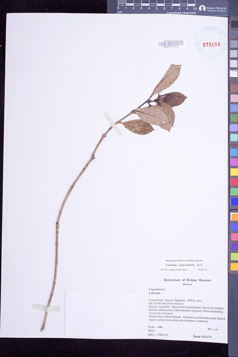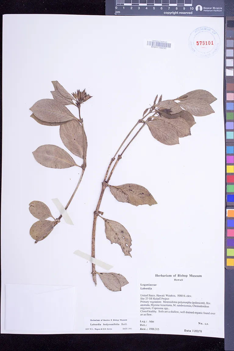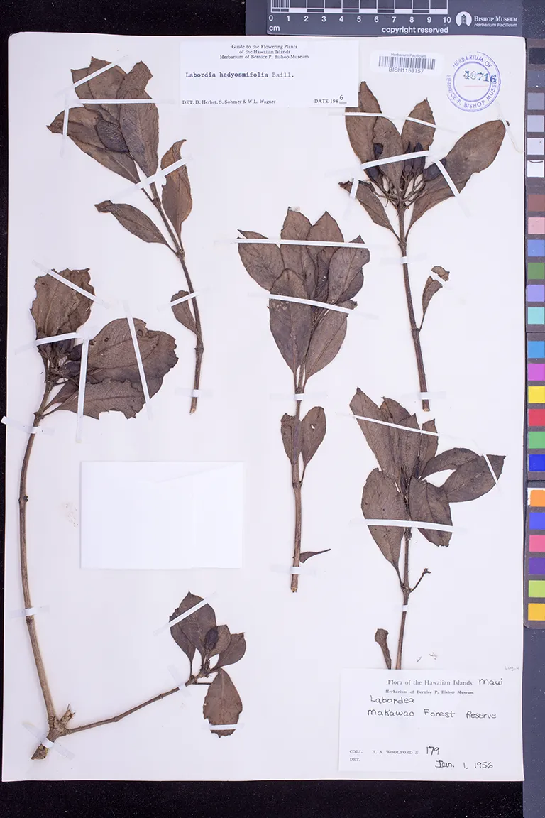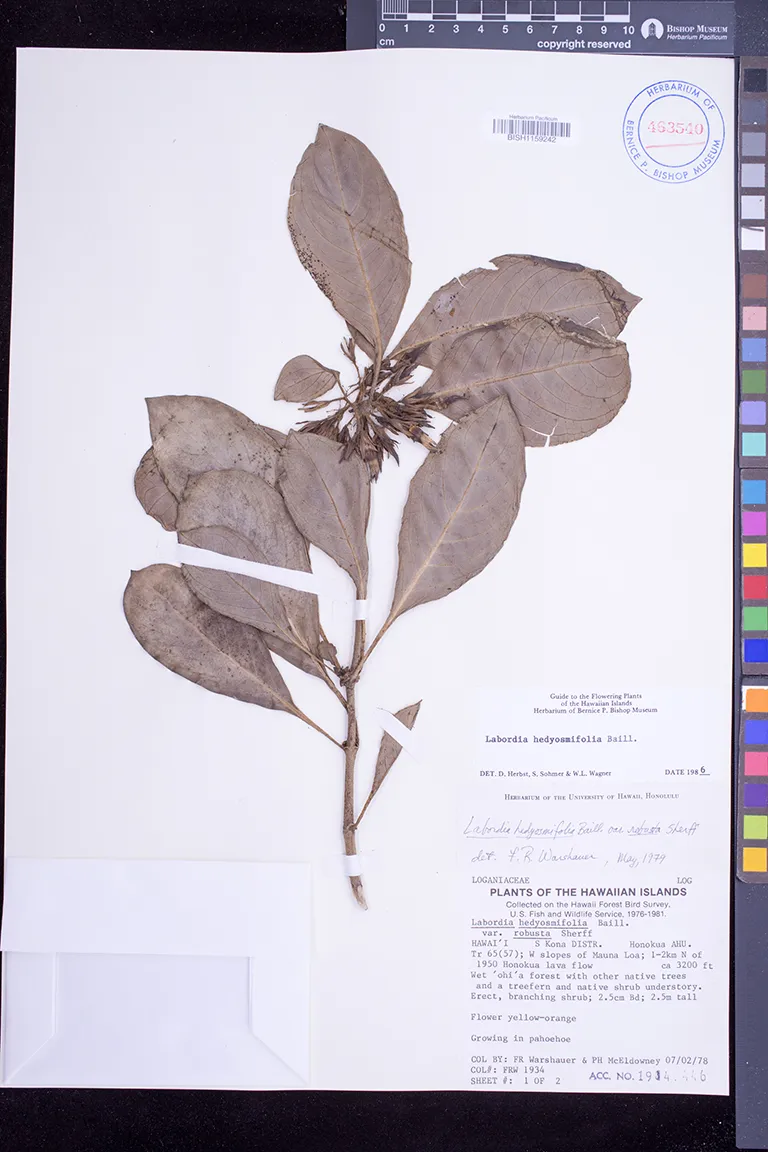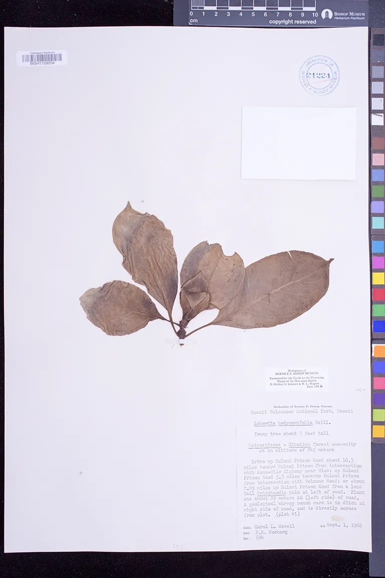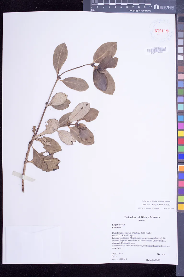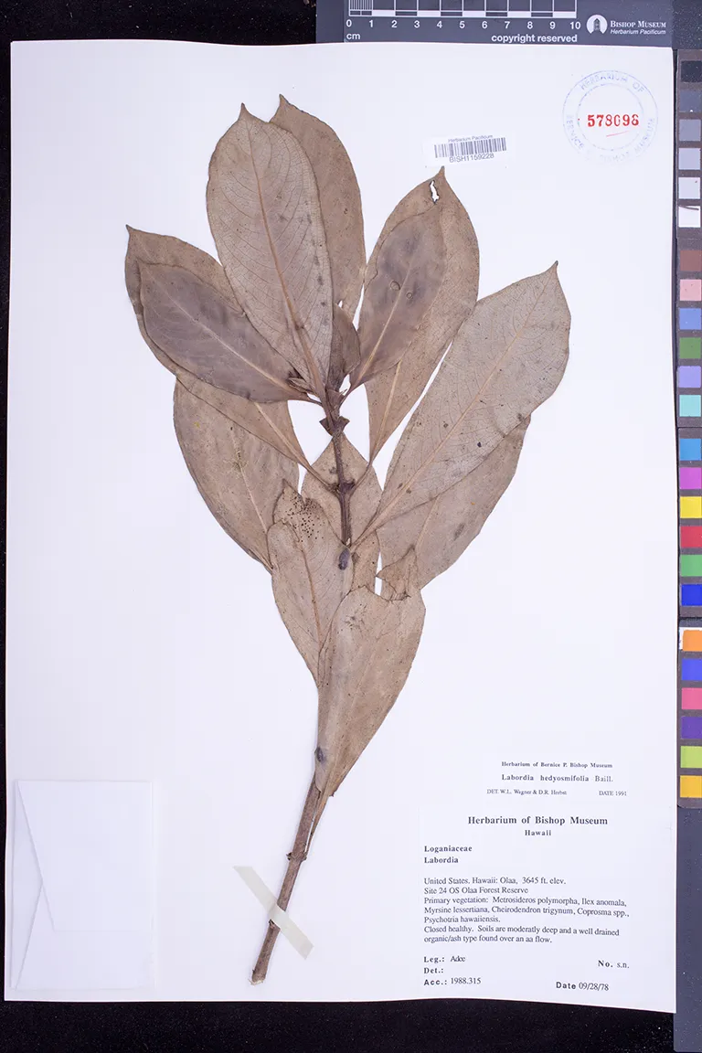 Dry naio scrub forest with other native trees and native shrub-exotic grass understory. Growing on pahoehoe substrate |