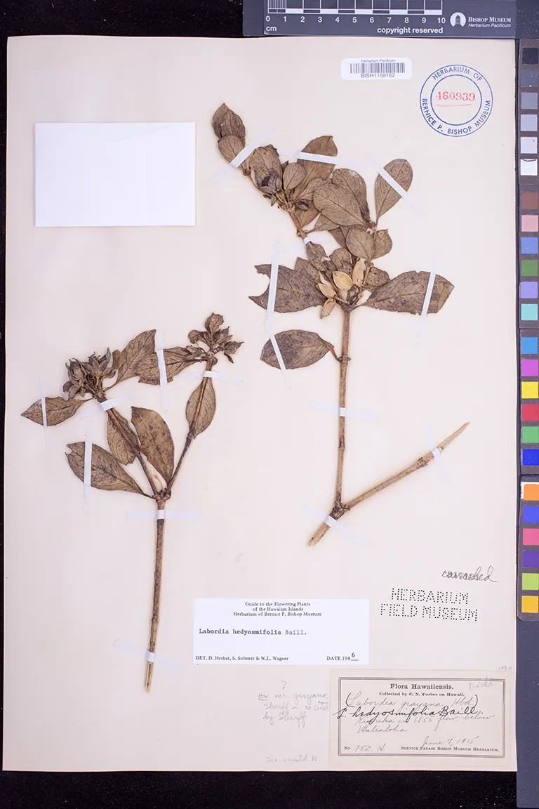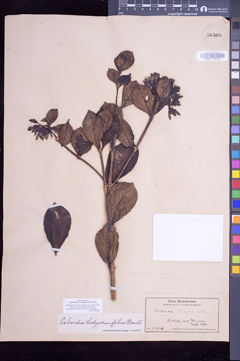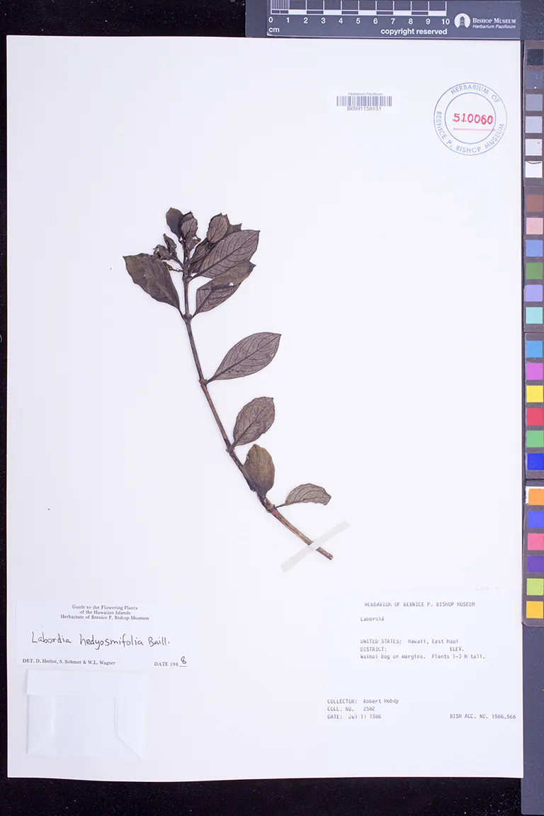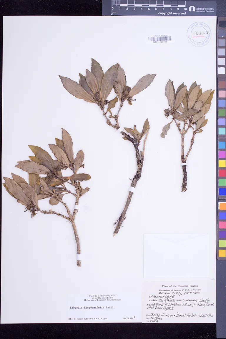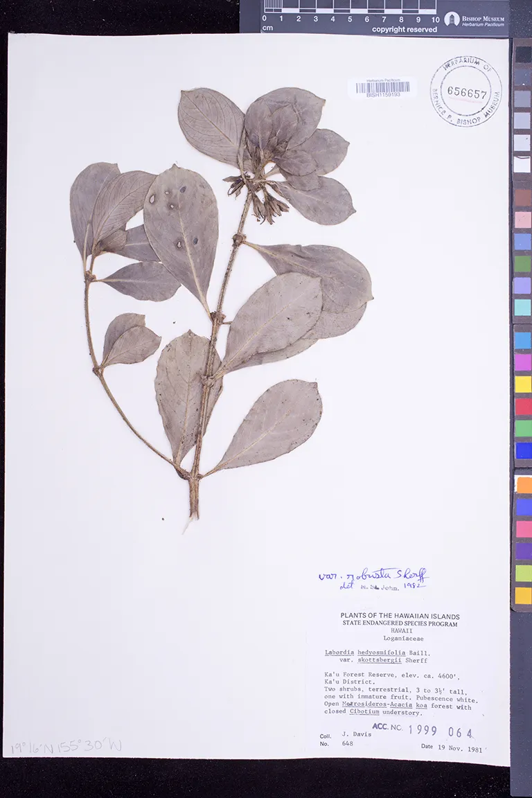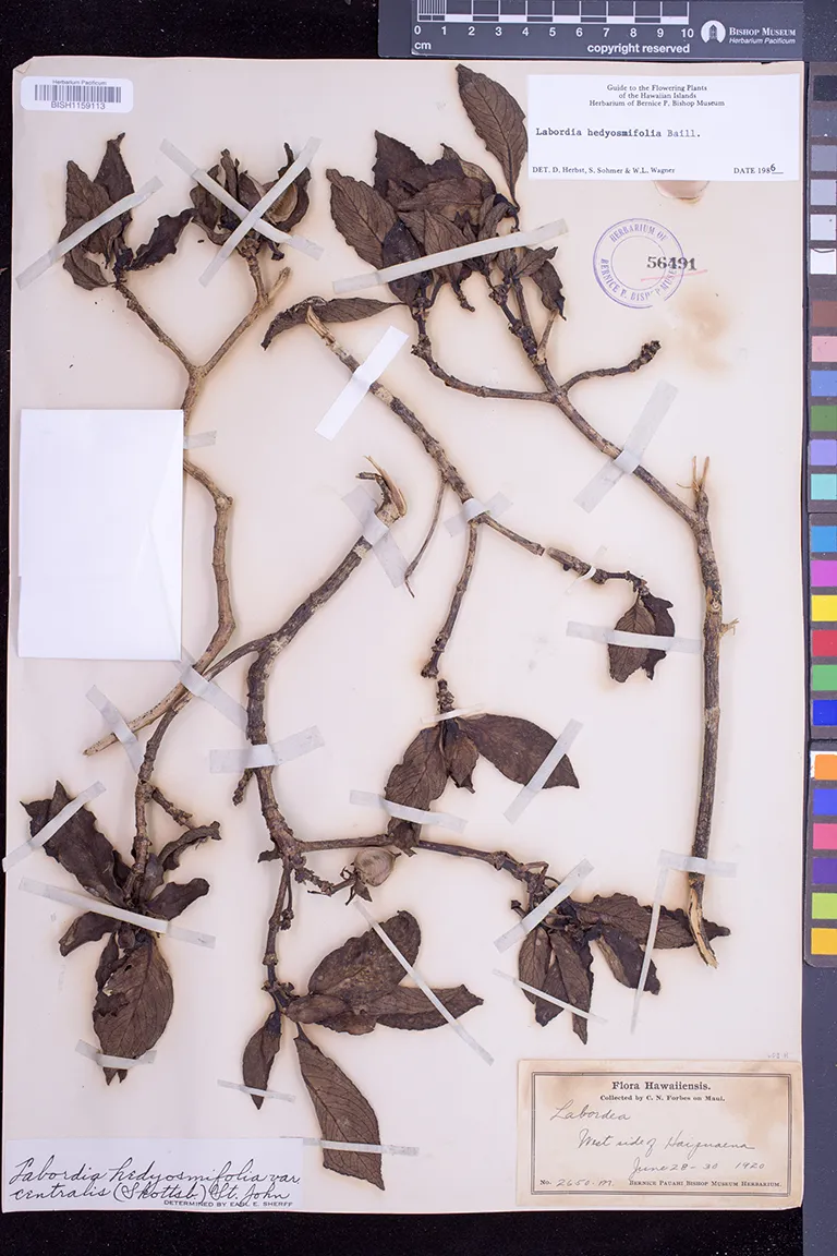Dry naio scrub forest with other native trees and native shrub-exotic grass understory. Growing on pahoehoe substrate |