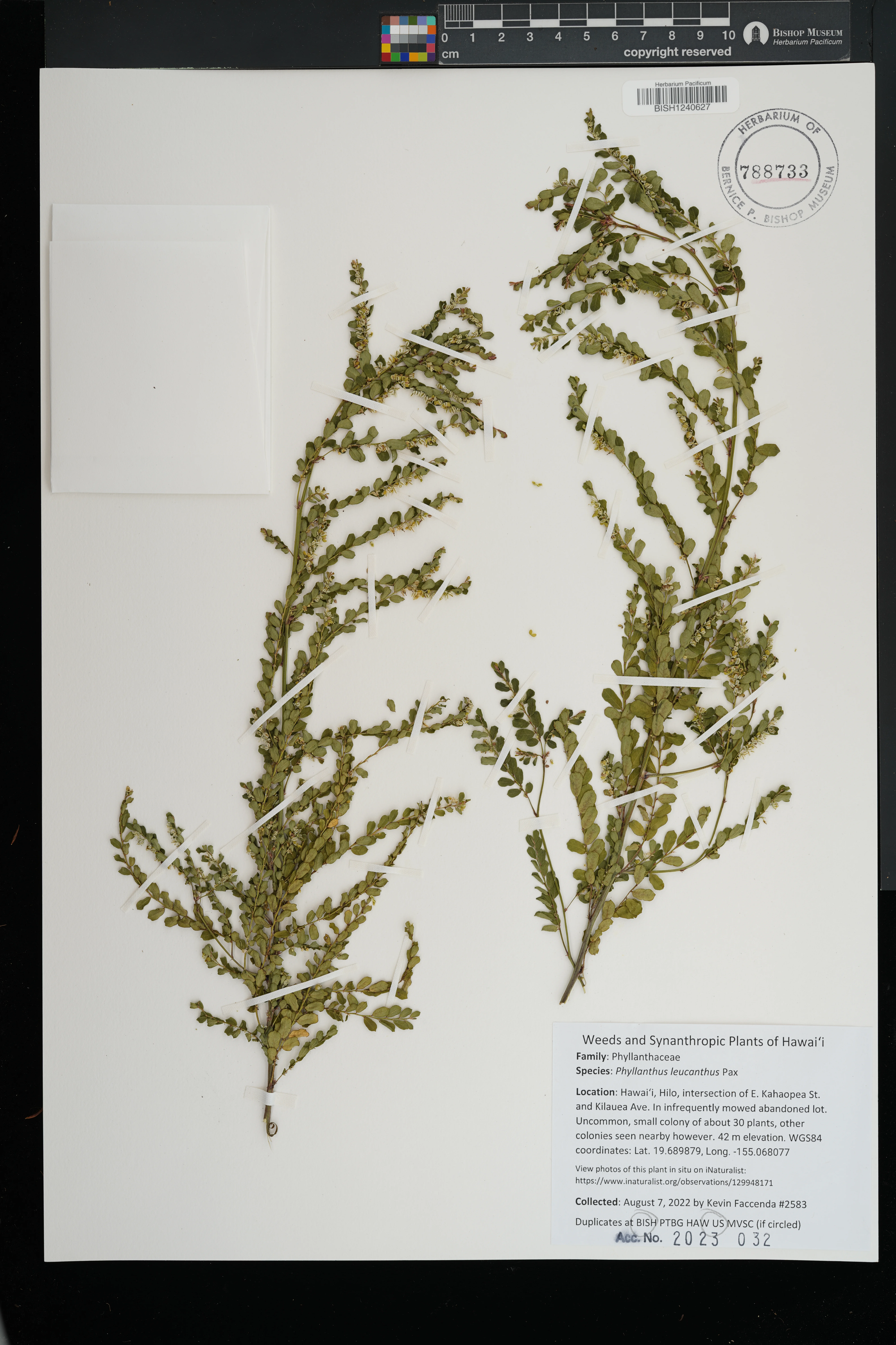 Faccenda 2023a:4, 7 (NEWNAT/K, O, M, H, DESCR, KEY [as Phyllanthus leucanthus]); Oppenheimer & Pezzillo 2024:62 (L); Bouman et al. 2022:27 (Syn. P. leucanthus = M. leucantha)