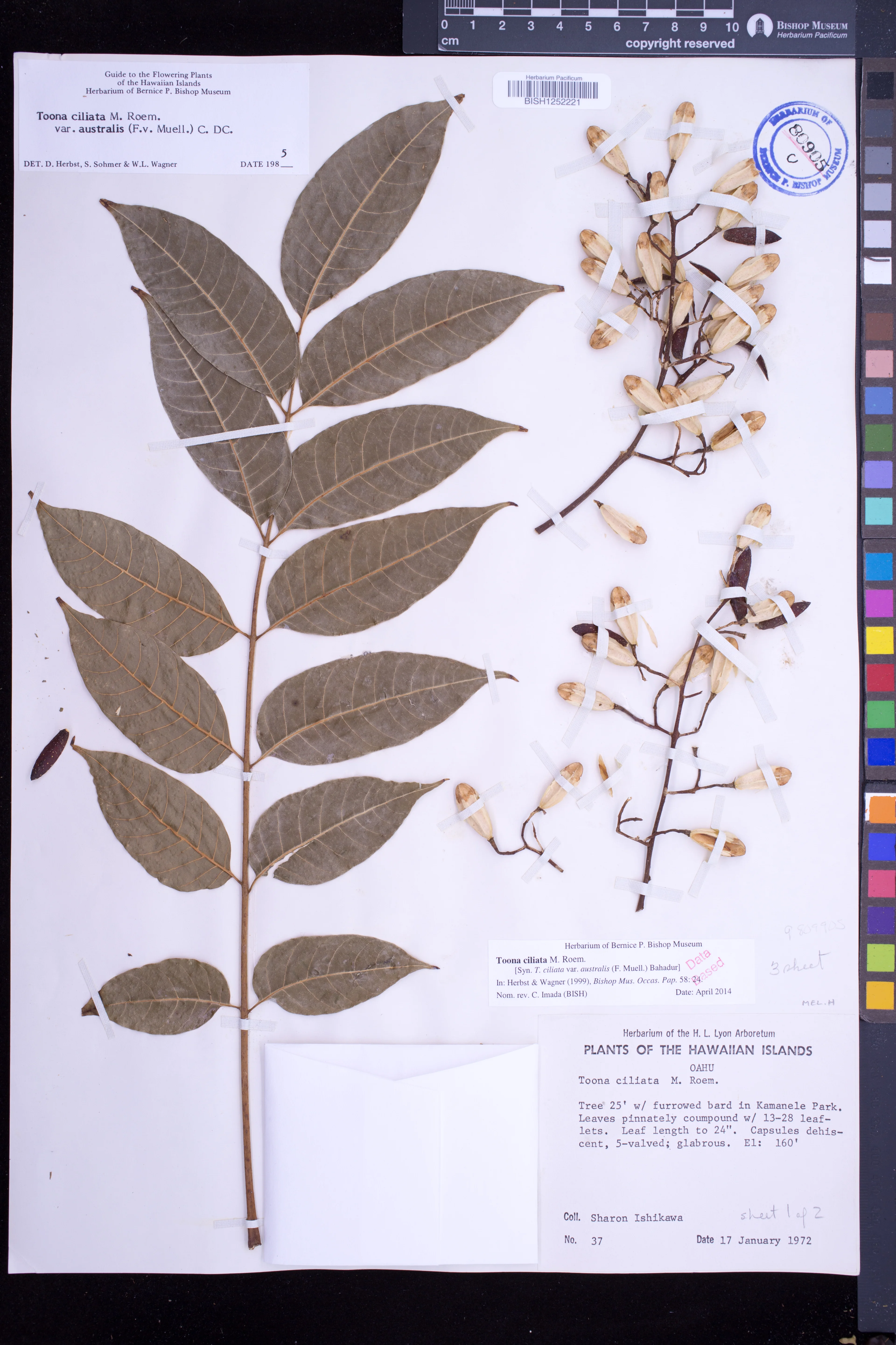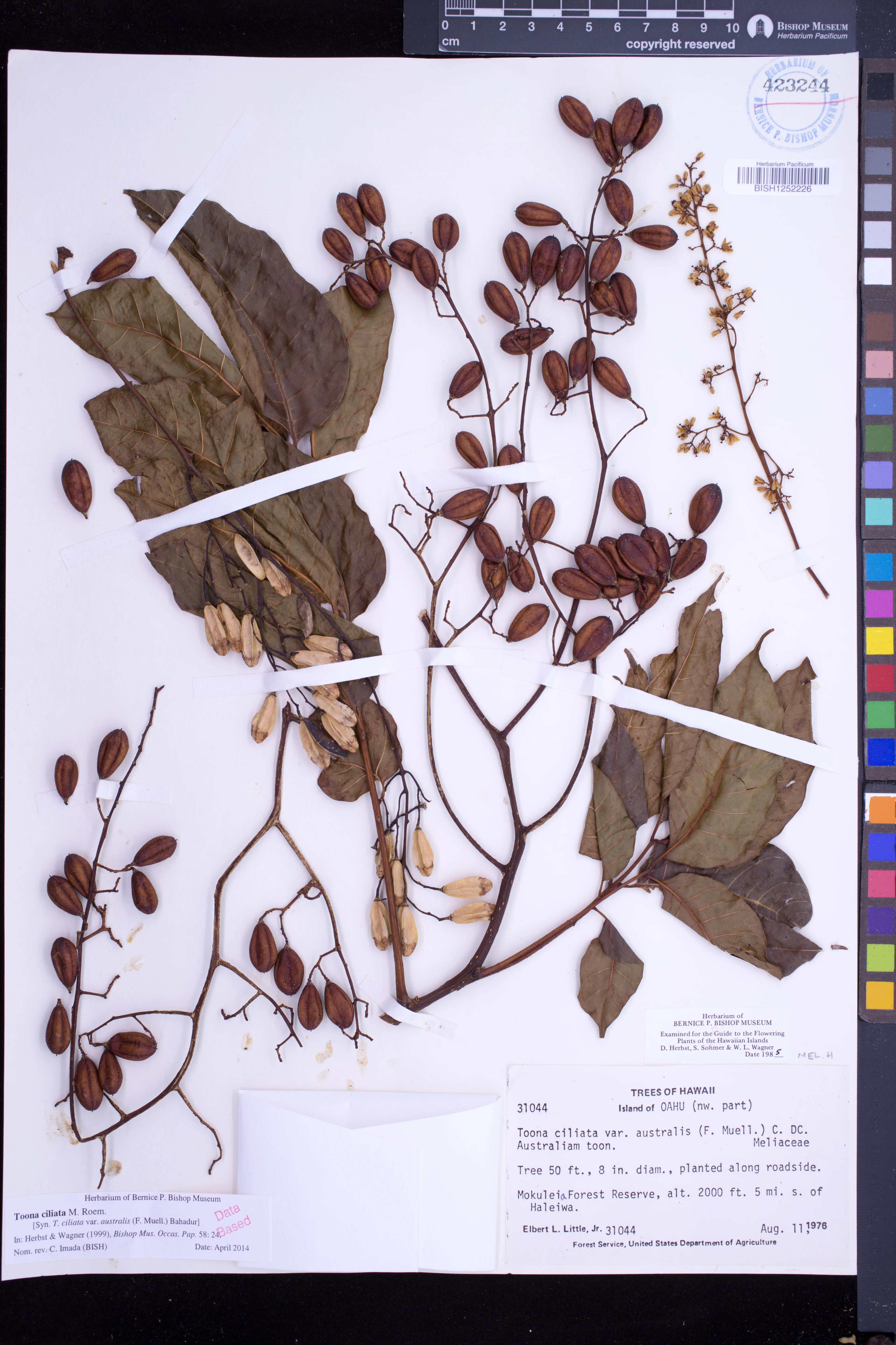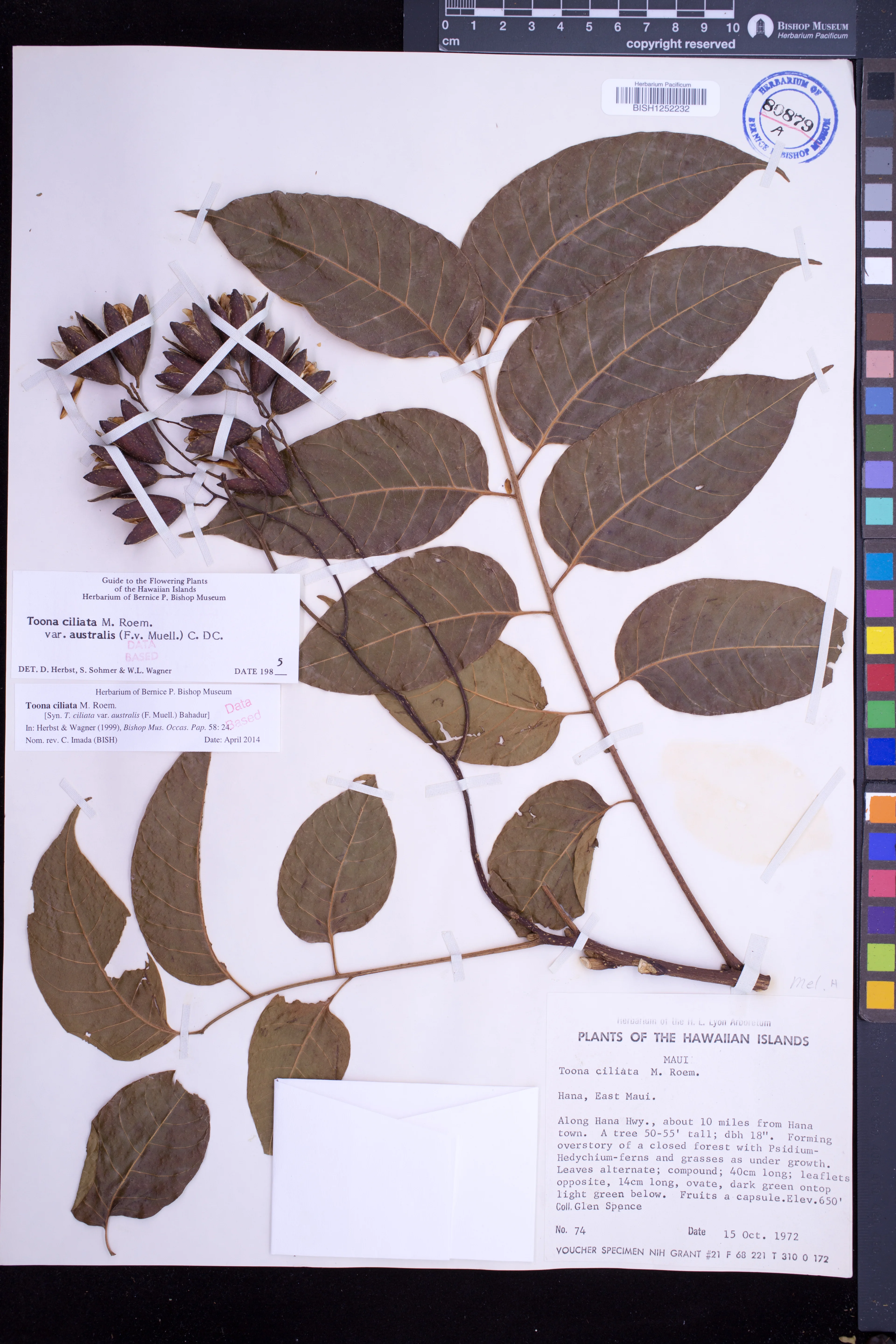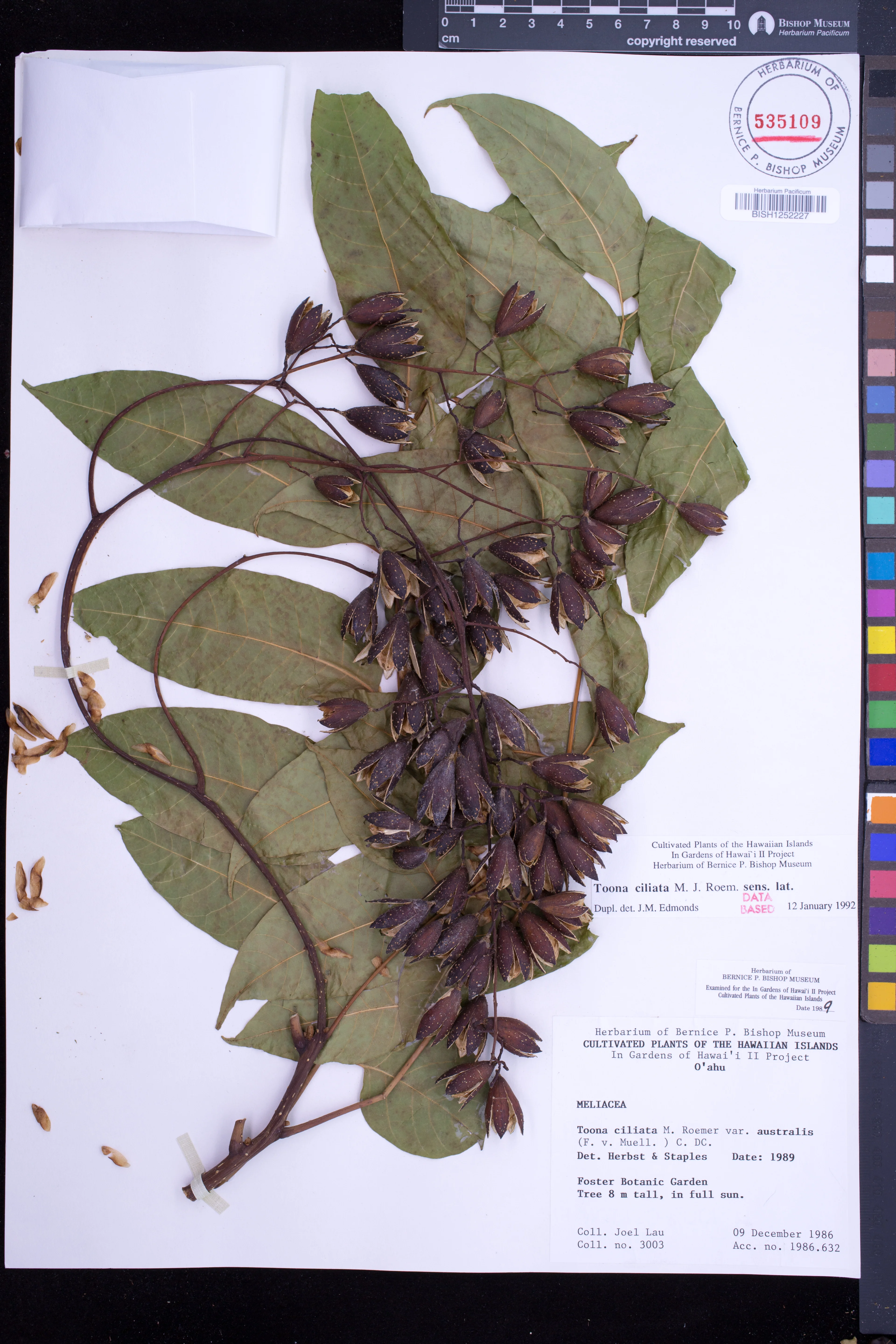 Capsules reddish brown; pendulous; septicidal; with some lighter spots; ellipsoid; 2–2.8 cm long; opening by 5–valves; the columella 5–angled.