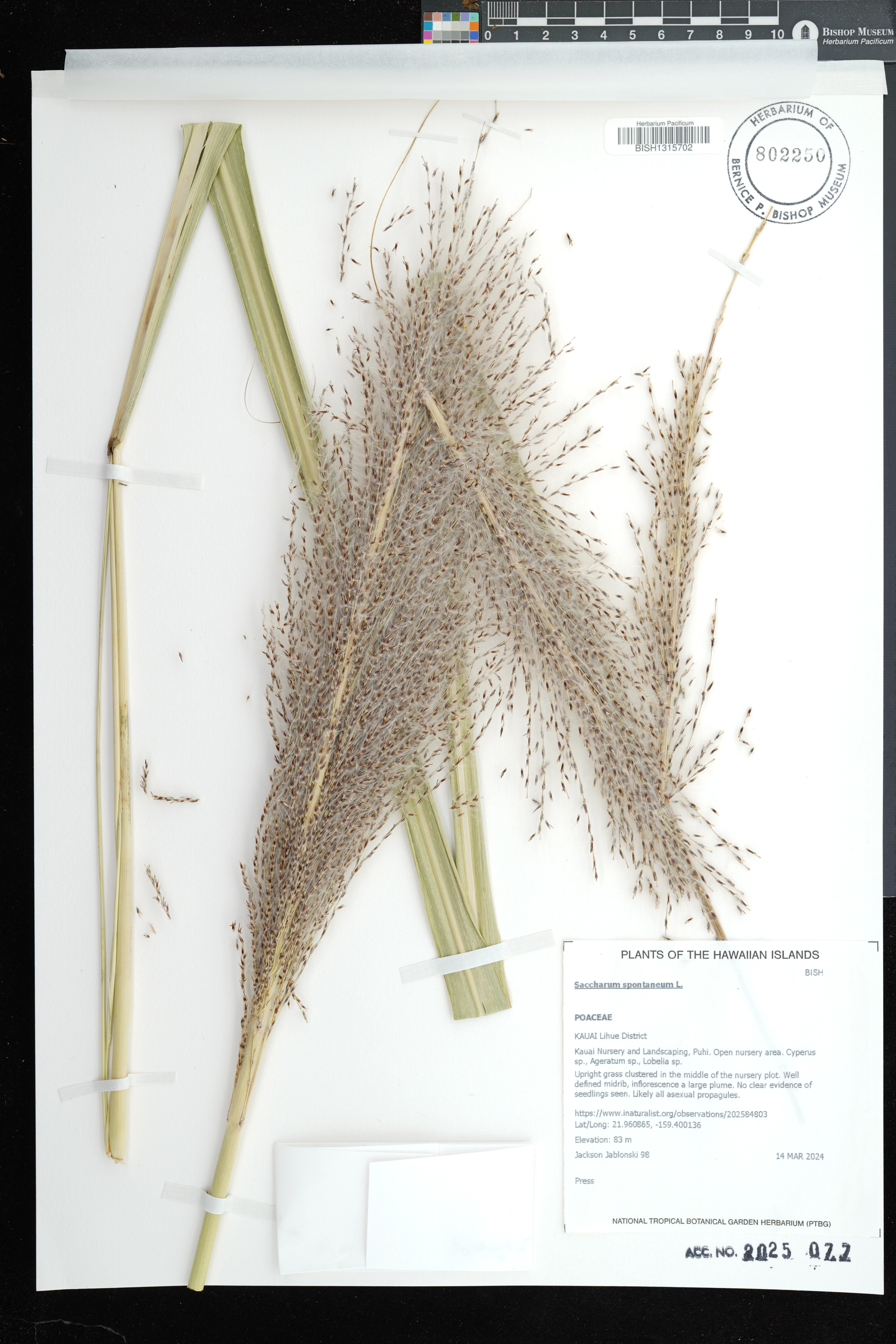 | 1 | Saccharum spontaneum | L. | Niaupala Fishpond, Kaluaaha | Flat near shore. | PRESERVED_SPECIMEN | St. John, H. | 19960 | Molokai | BISH | 1/2/1939 |