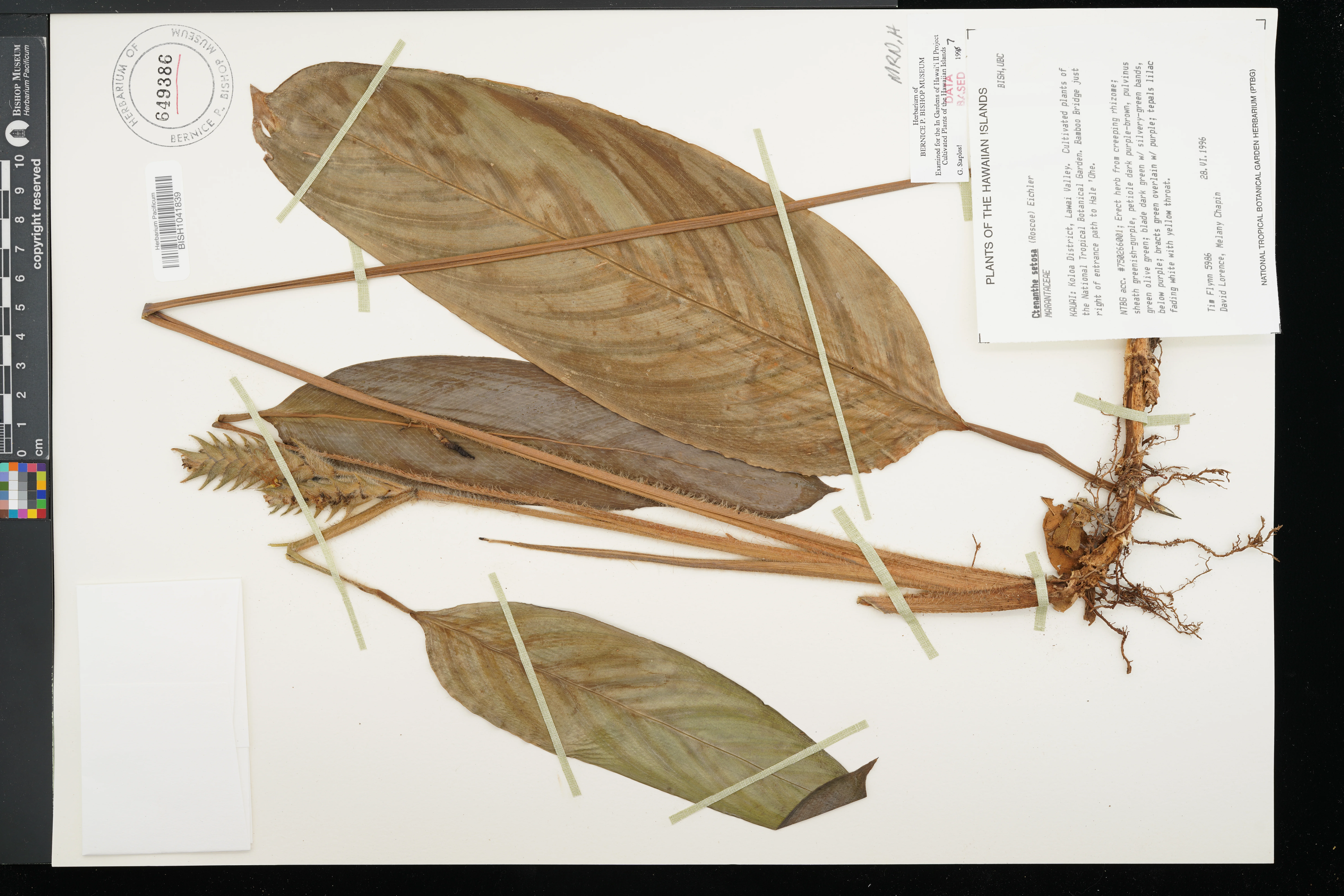 | 9 | Ctenanthe setosa | (Roscoe) Eichler | Honolulu: Manoa Valley; Lyon Arboretum, In Marantaceae area | PRESERVED_SPECIMEN | Ishikawa, S. | 483 | Oahu | BISH | 2/13/1979 | |