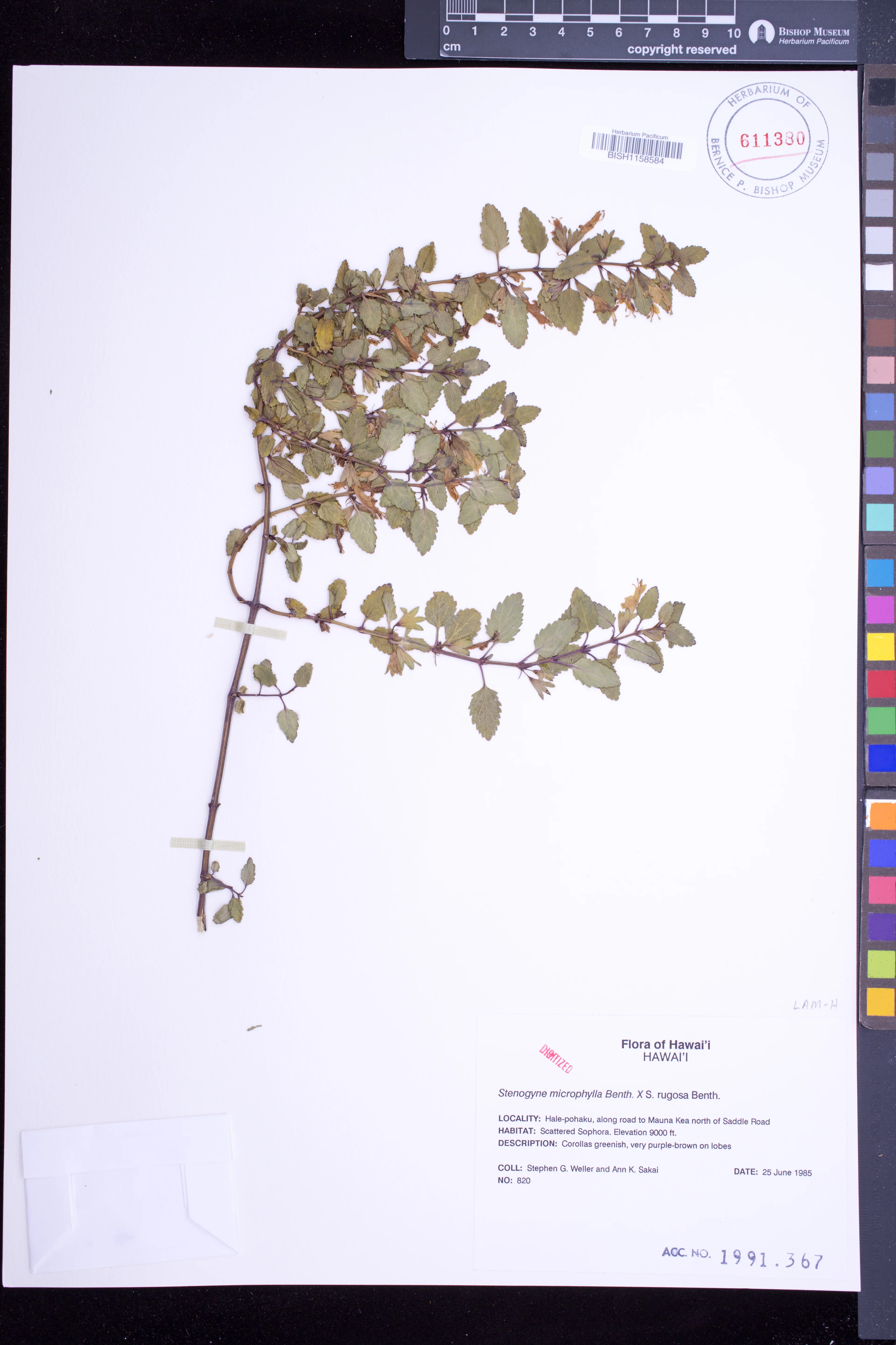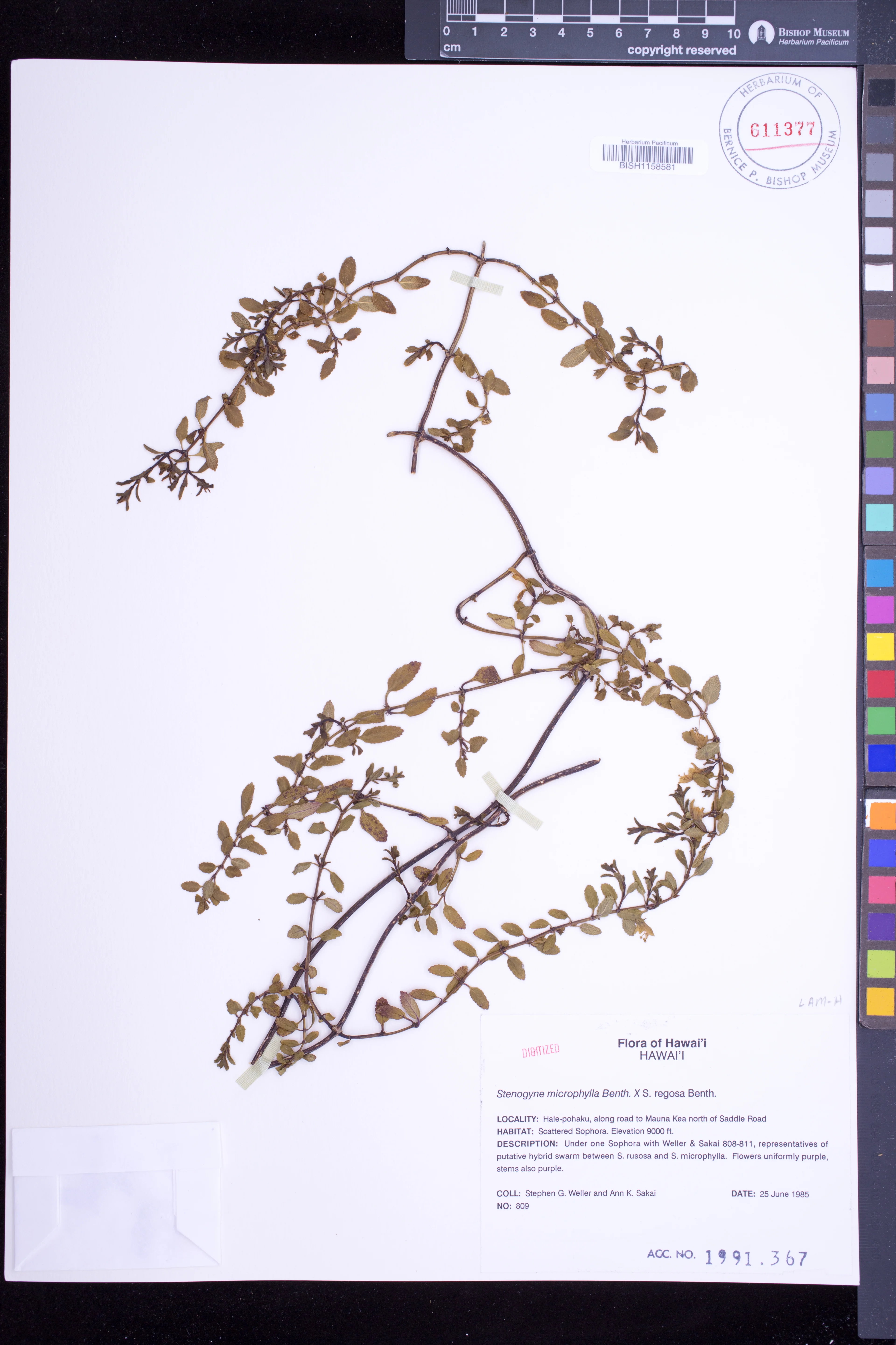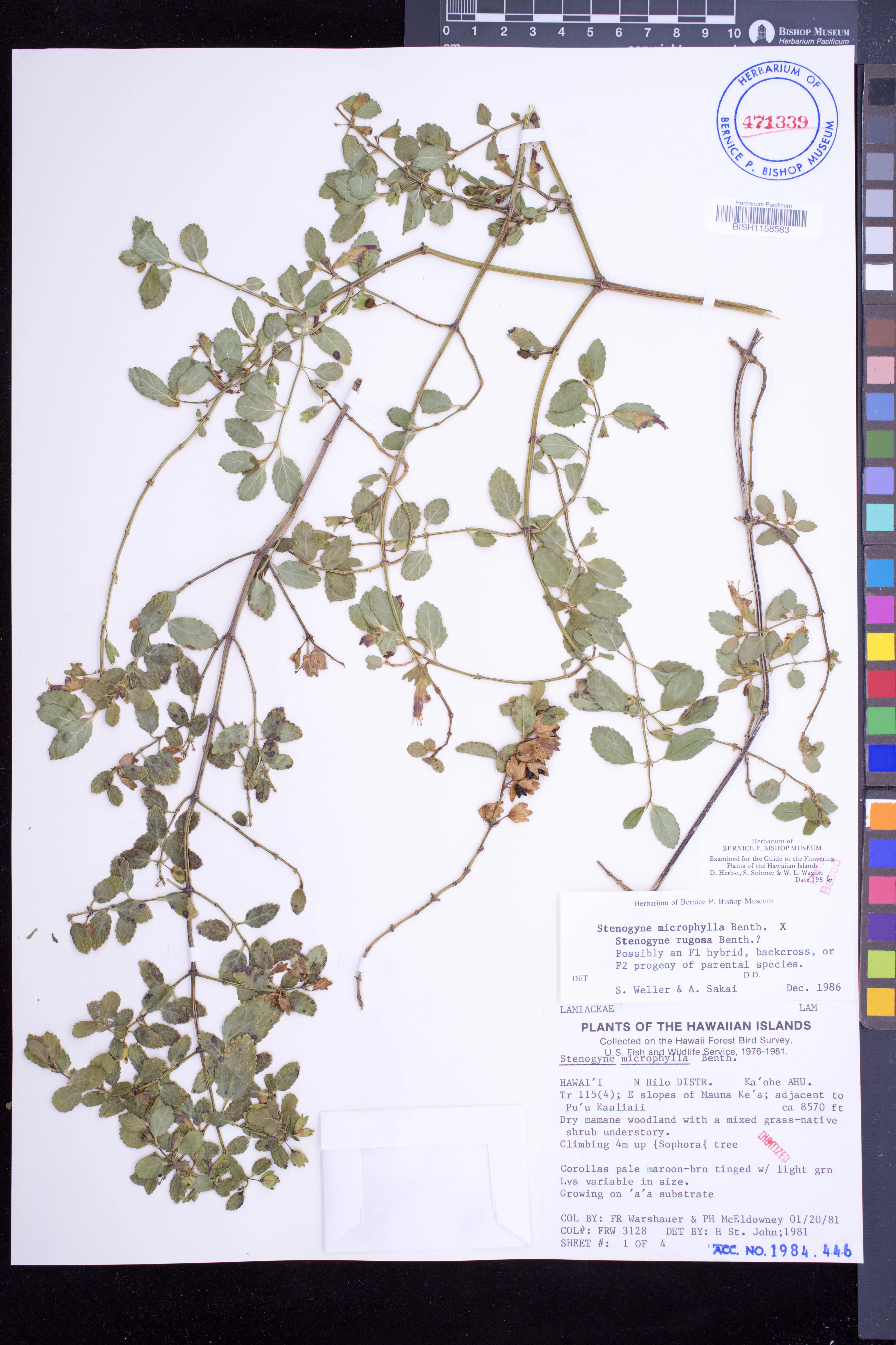 Kingdom: Viridiplantae Phylum: Magnoliophyta Class/Clade: Eudicot-Asterids Order: Lamiales Family: Lamiaceae Genus: Stenogyne