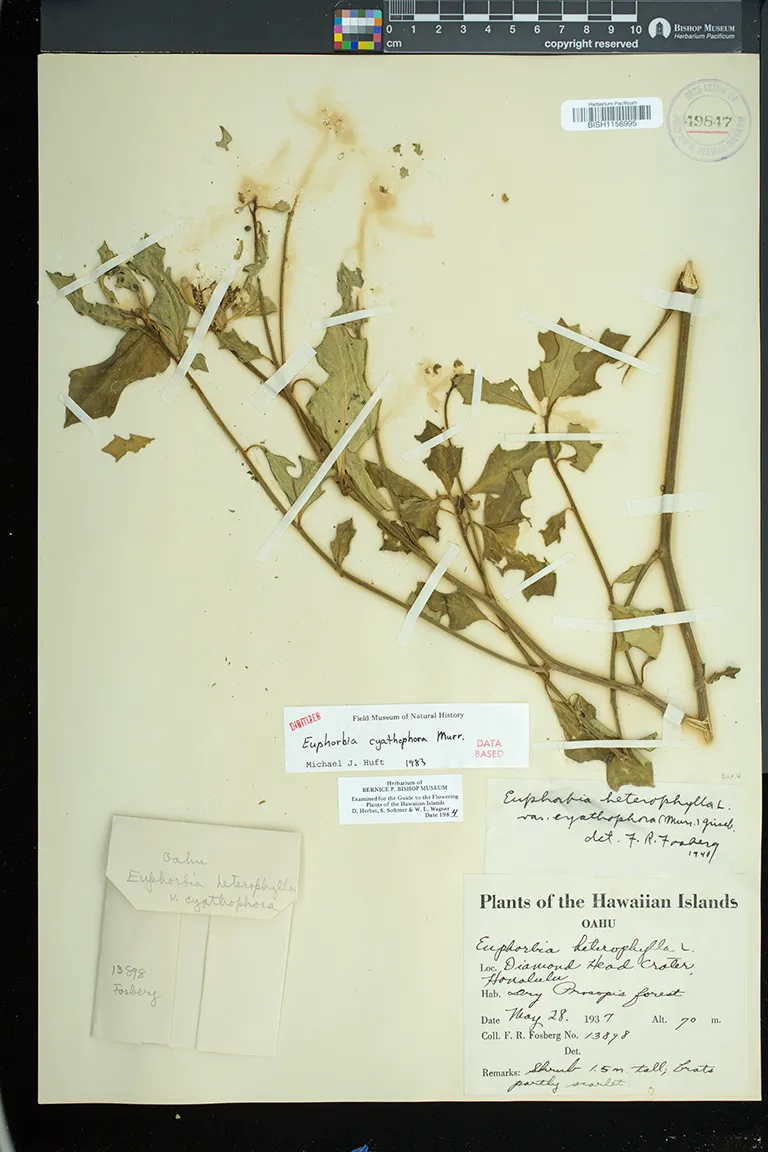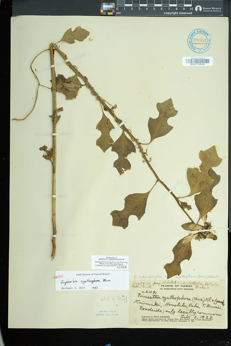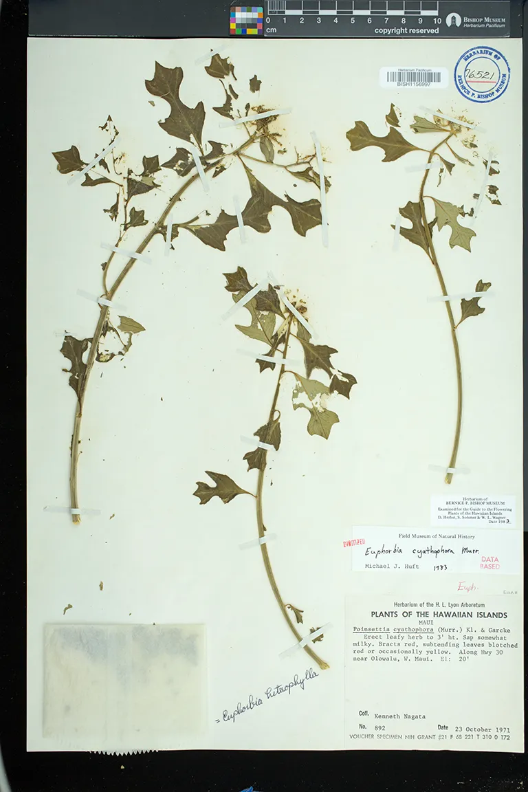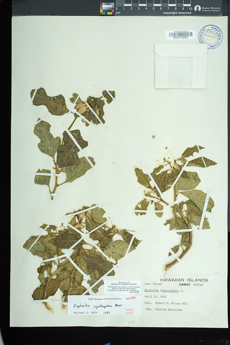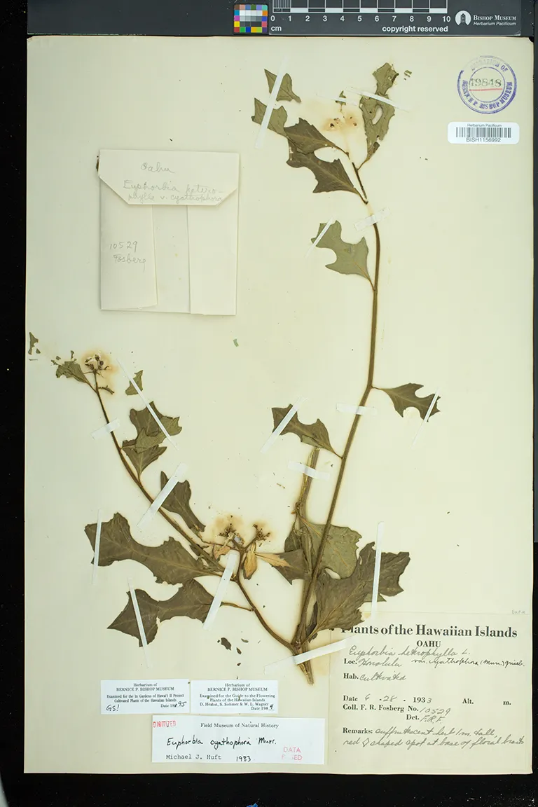 Flowers in cyathia in dense terminal cymes. pistillate flowers solitary, on a gynophore; staminate flowers in 5 groups or cymules, each with 1 to several flowers. involucre ca. 3 mm high, glabrous, gland 1, bilabiate, flattened, without an appendage.