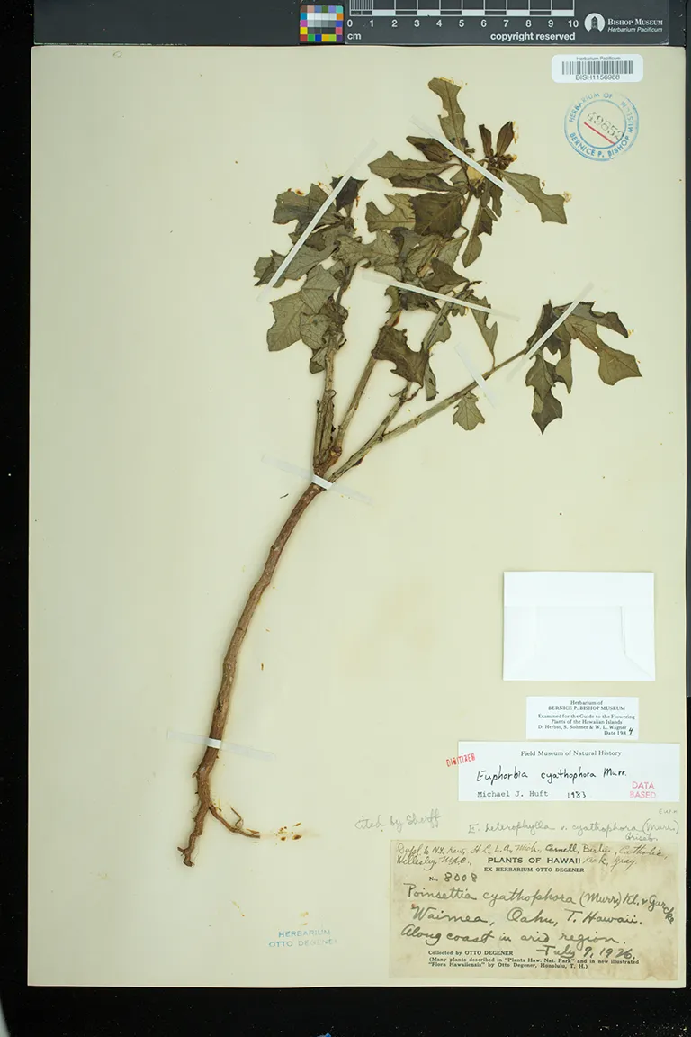 Surfaces green, floral leaves usually red at least at base.