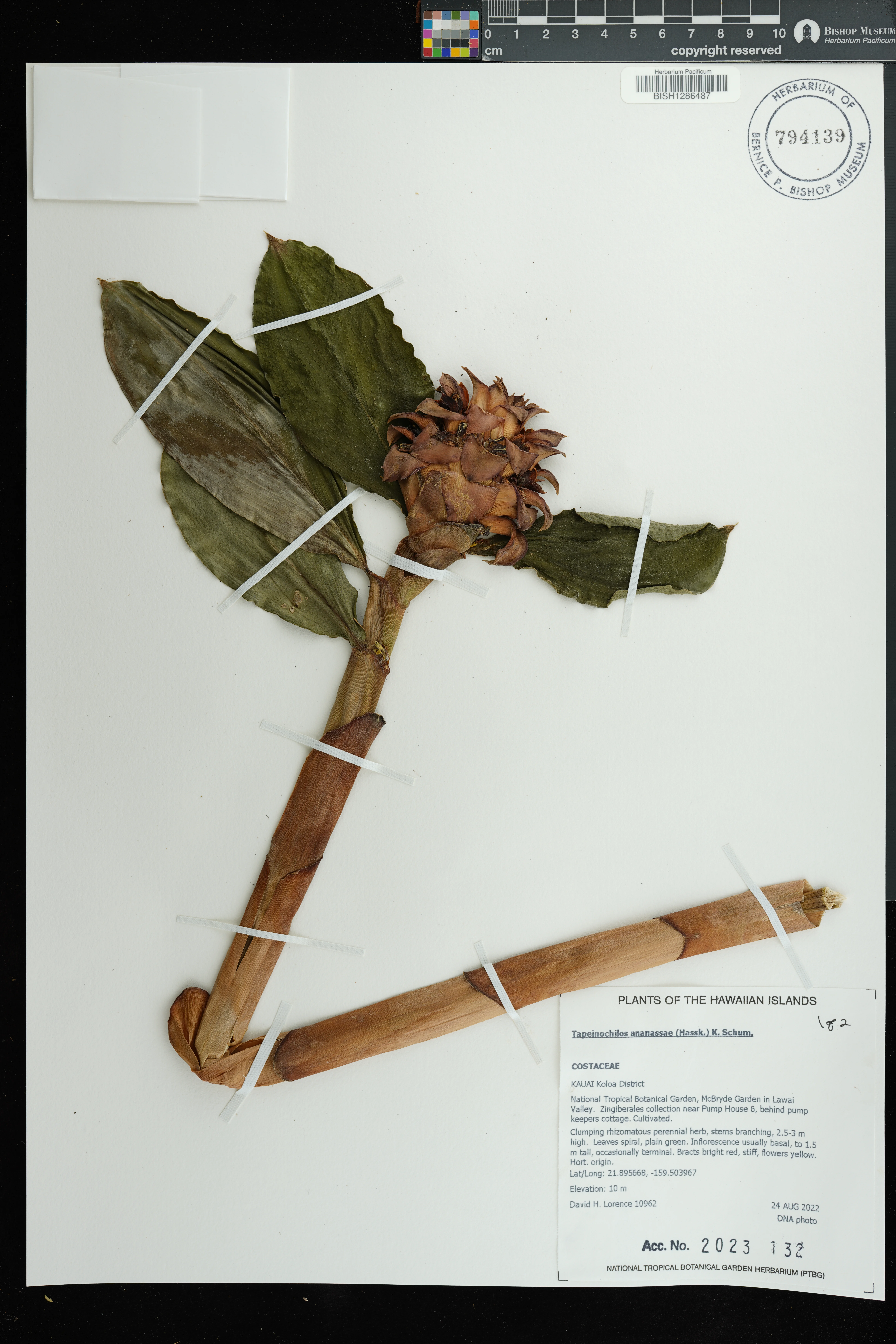 | 4 | Tapeinochilos ananassae | (Hassk.) K.Schum. | Waimea District: Waimea Plantation Cottages, just west of Waimea town | Cultivated | PRESERVED_SPECIMEN | C. R. Annable | 3479 | Kauai | HAPI | 4/30/1997 |