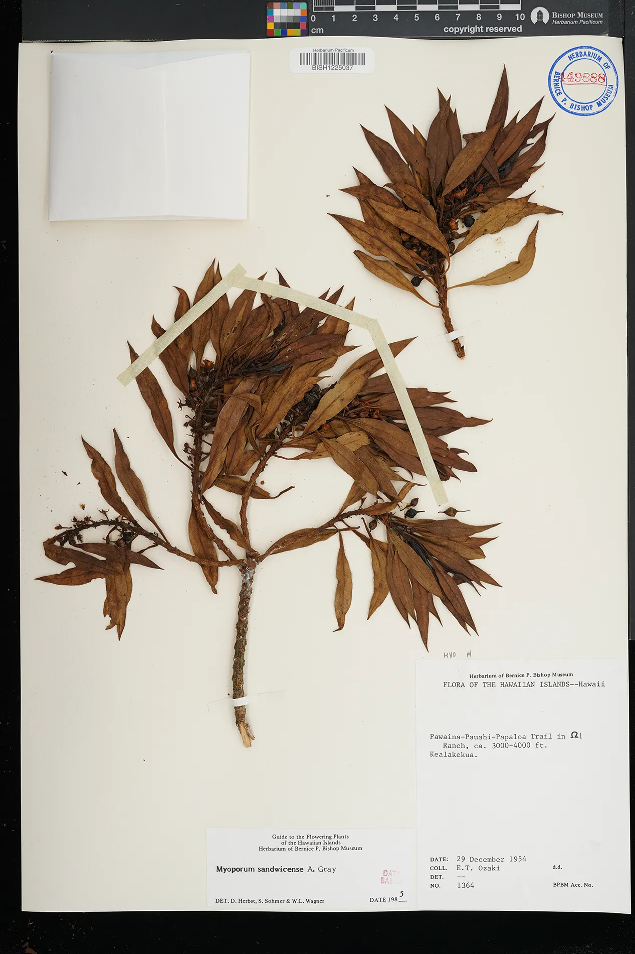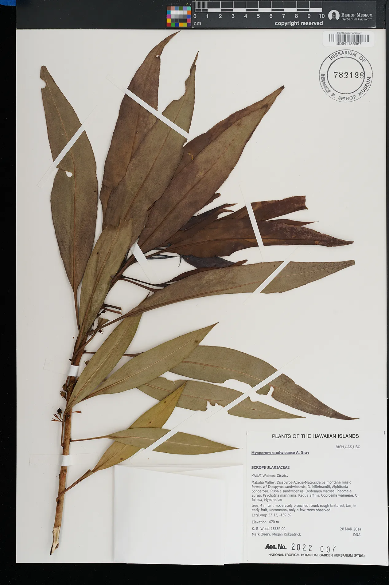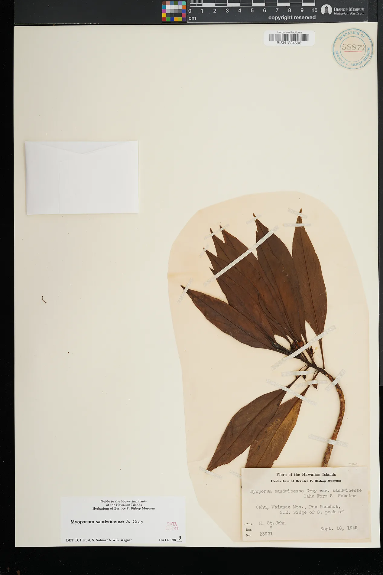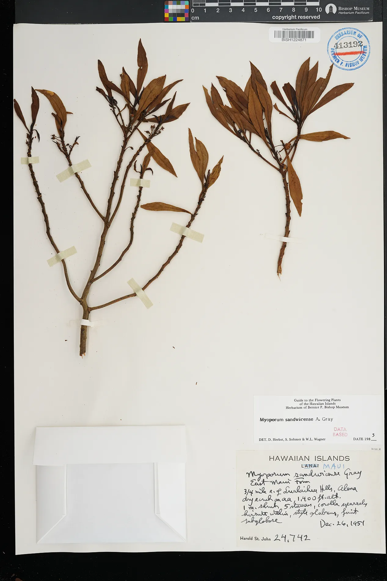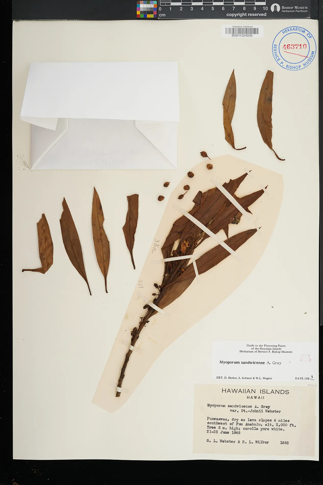 Wood has odor similar to sandalwood (Degener 1930:267). Used for house posts (Degener 1930:268; Krauss 1993:56). Burns well and long, used for torches (Lamb 1981:127). Wood used for fish net gauge (haha ka ‘upena) (Krauss 1993:35). In the Ethnology Collection at Bishop Museum there is a post-contact example of the wood made into a bowl.