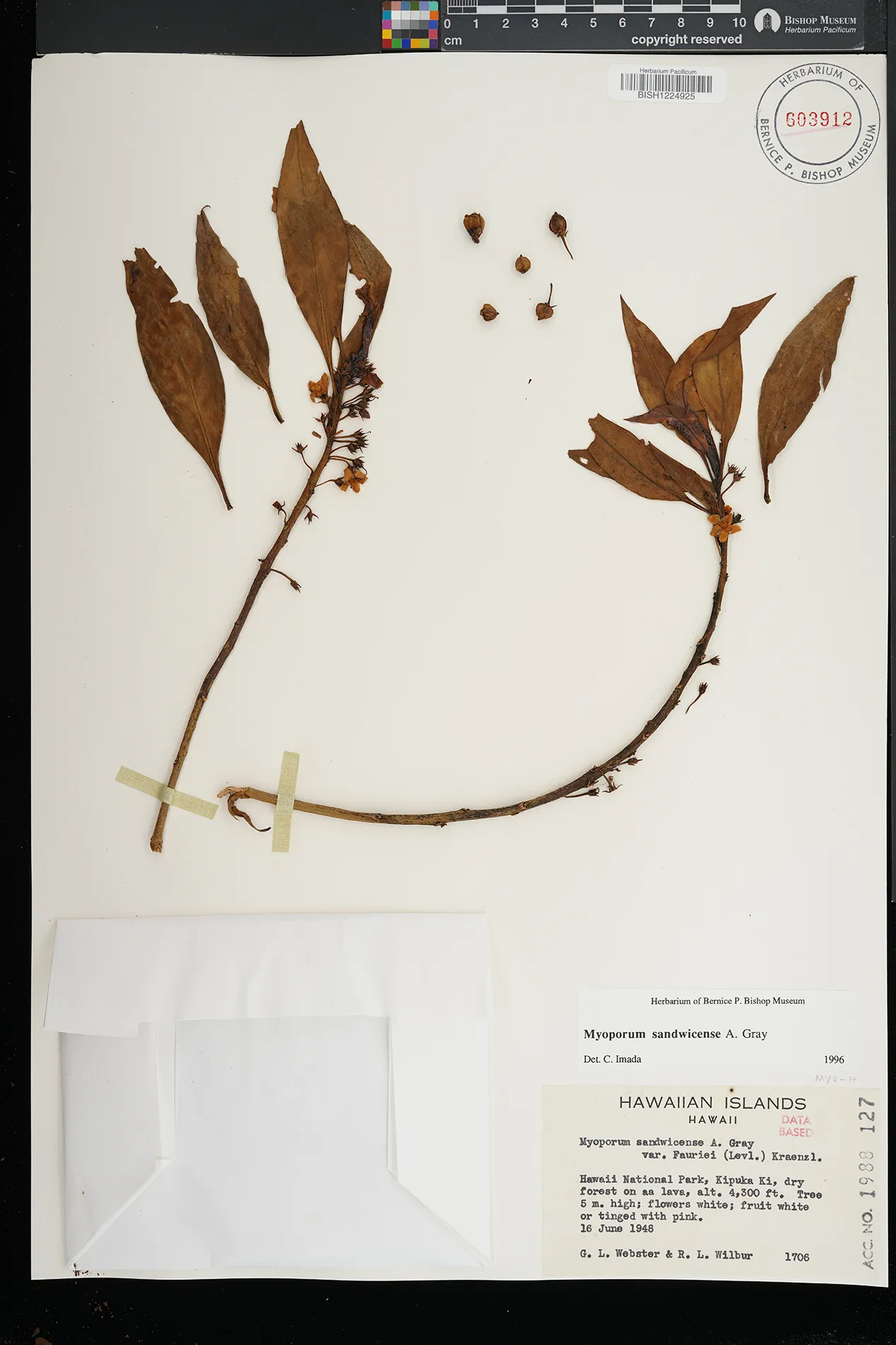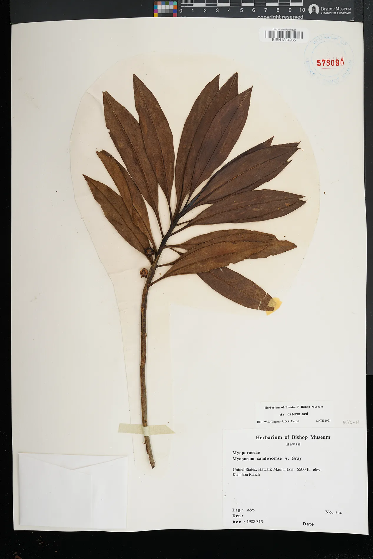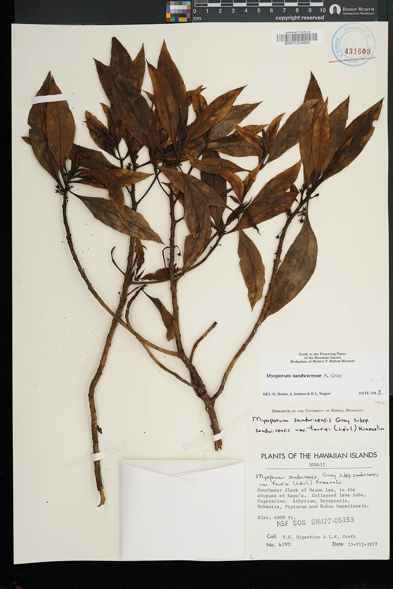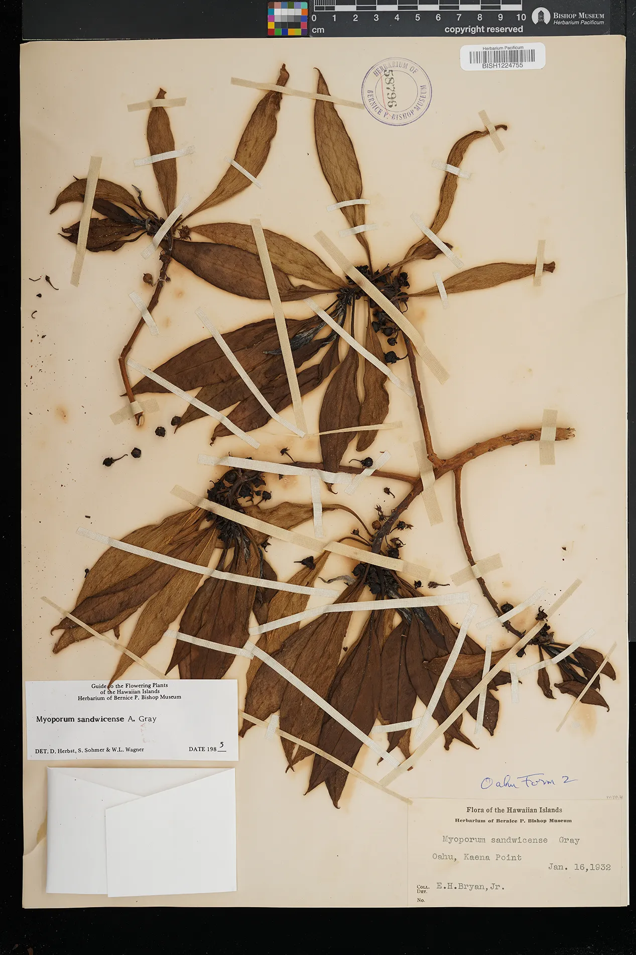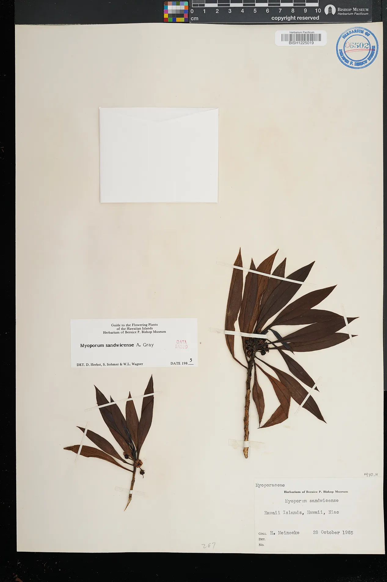 Wood has odor similar to sandalwood (Degener 1930:267). Used for house posts (Degener 1930:268; Krauss 1993:56). Burns well and long, used for torches (Lamb 1981:127). Wood used for fish net gauge (haha ka ‘upena) (Krauss 1993:35). In the Ethnology Collection at Bishop Museum there is a post-contact example of the wood made into a bowl.