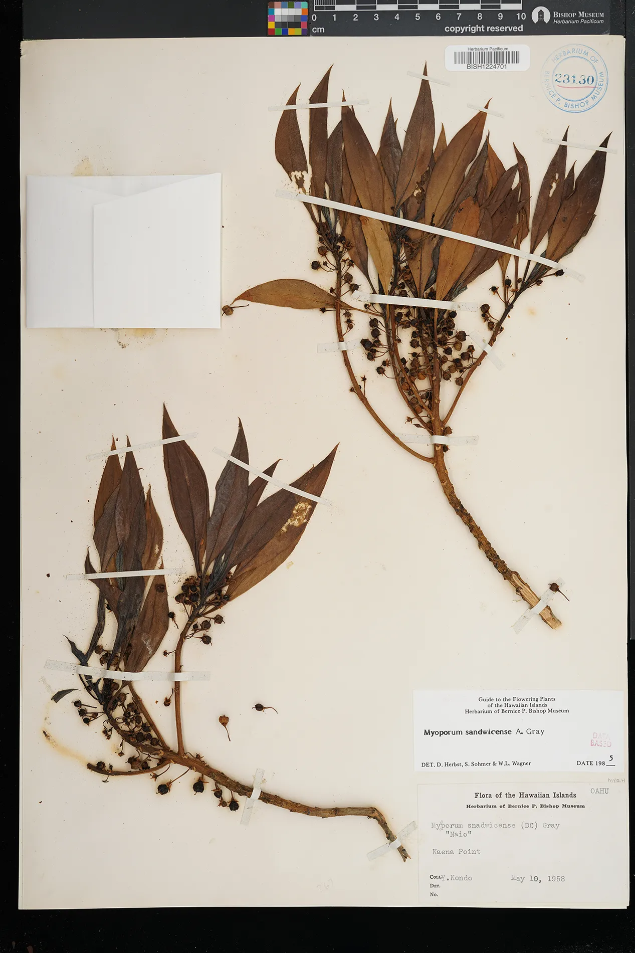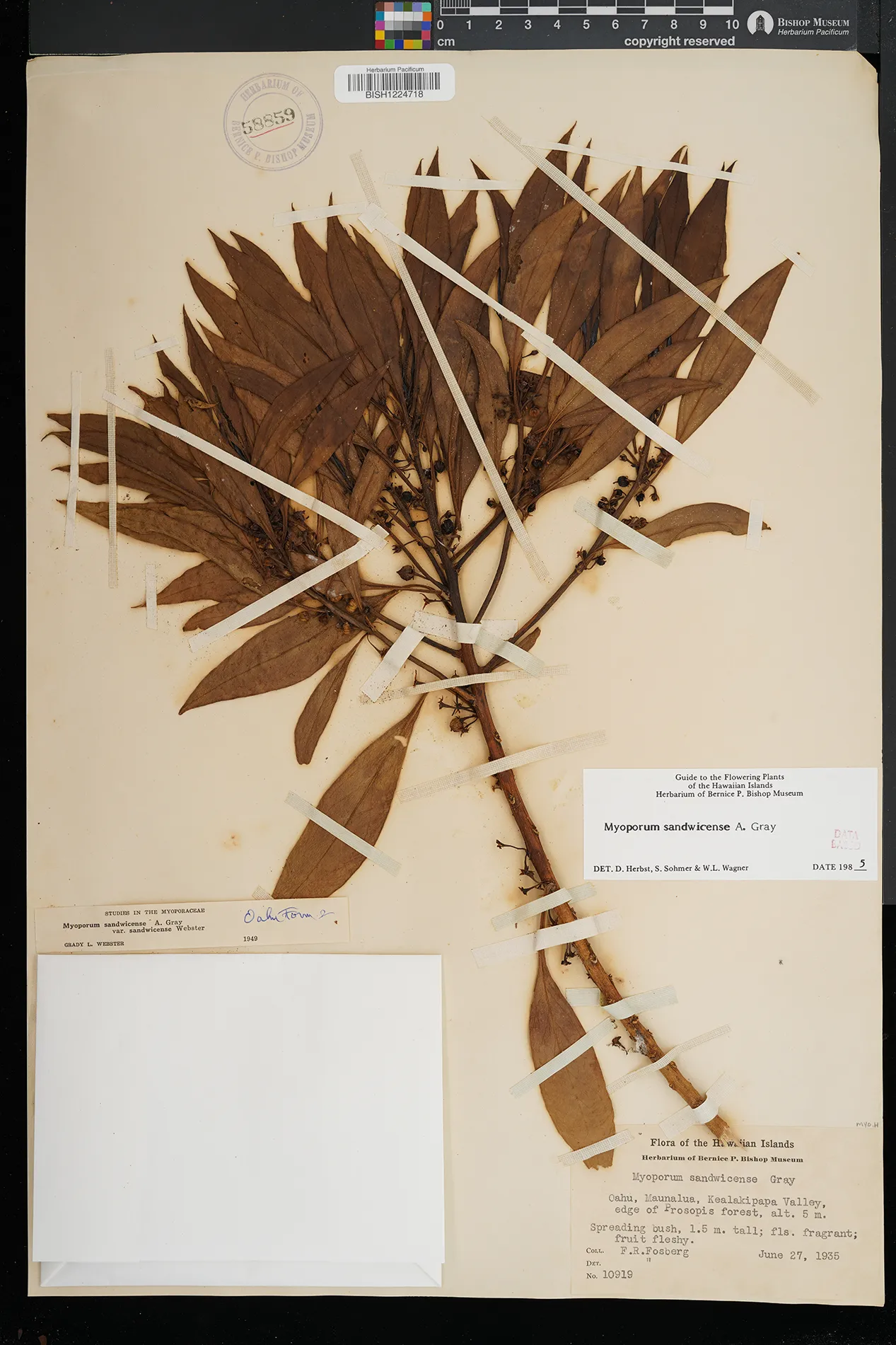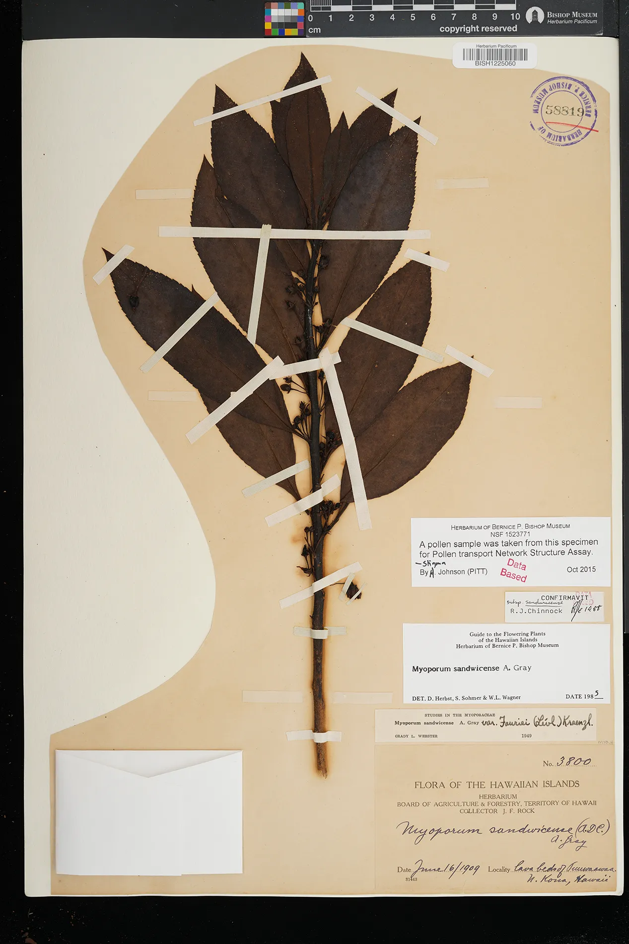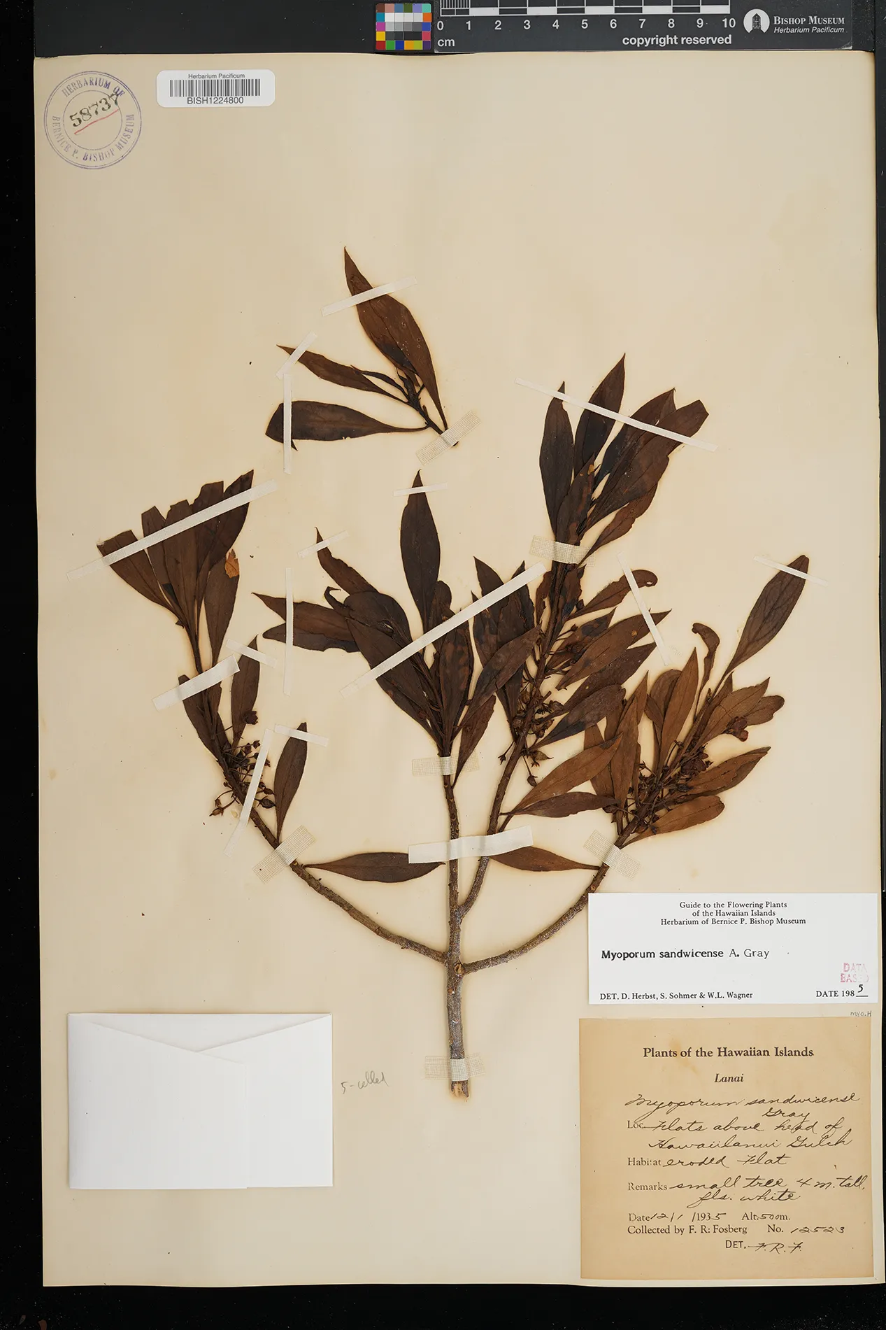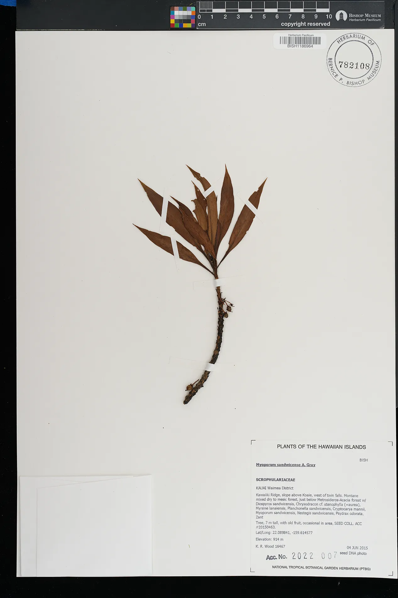 Wood has odor similar to sandalwood (Degener 1930:267). Used for house posts (Degener 1930:268; Krauss 1993:56). Burns well and long, used for torches (Lamb 1981:127). Wood used for fish net gauge (haha ka ‘upena) (Krauss 1993:35). In the Ethnology Collection at Bishop Museum there is a post-contact example of the wood made into a bowl.