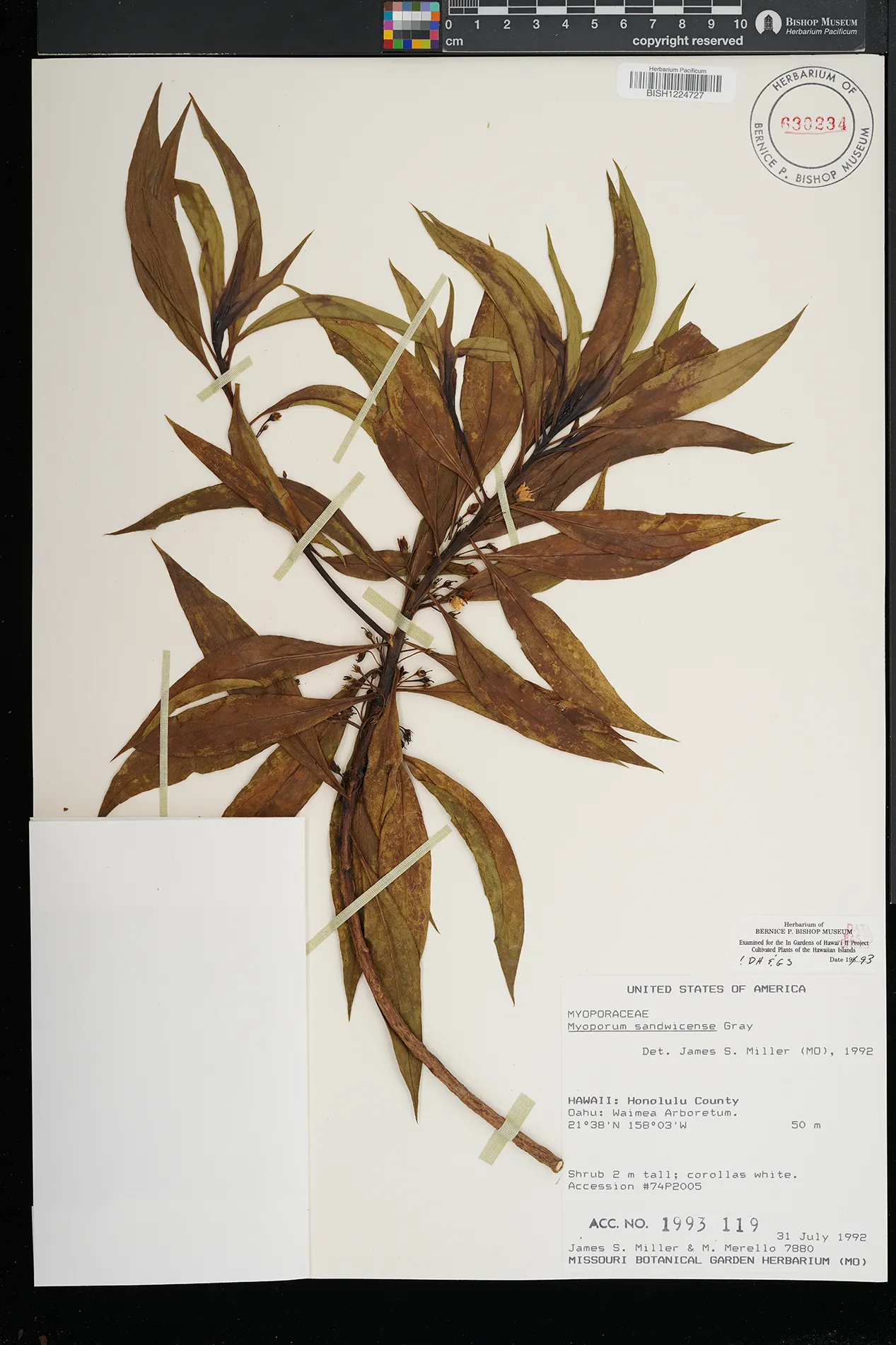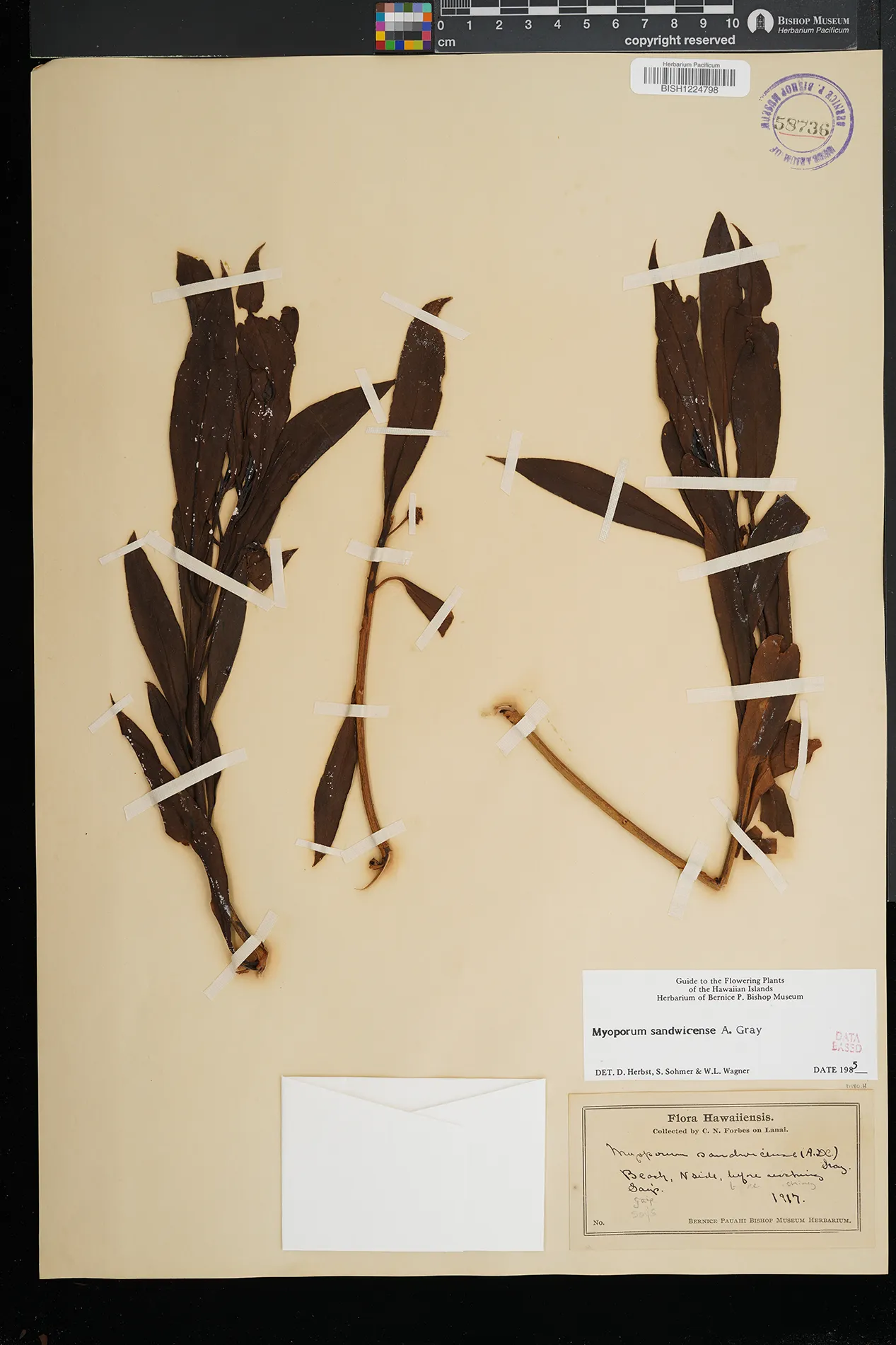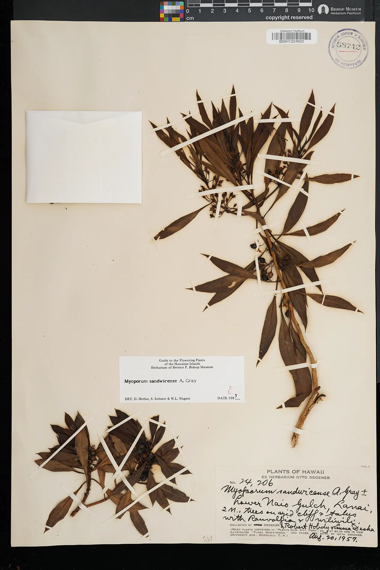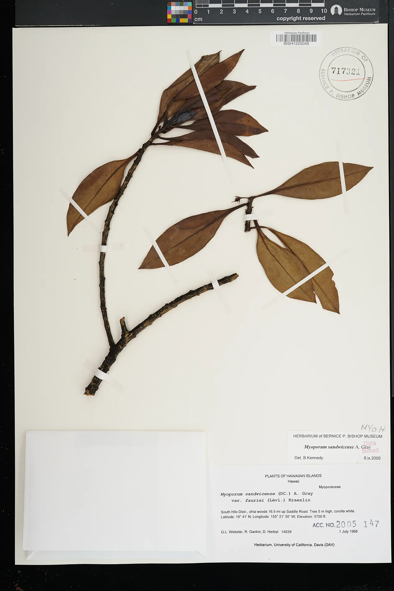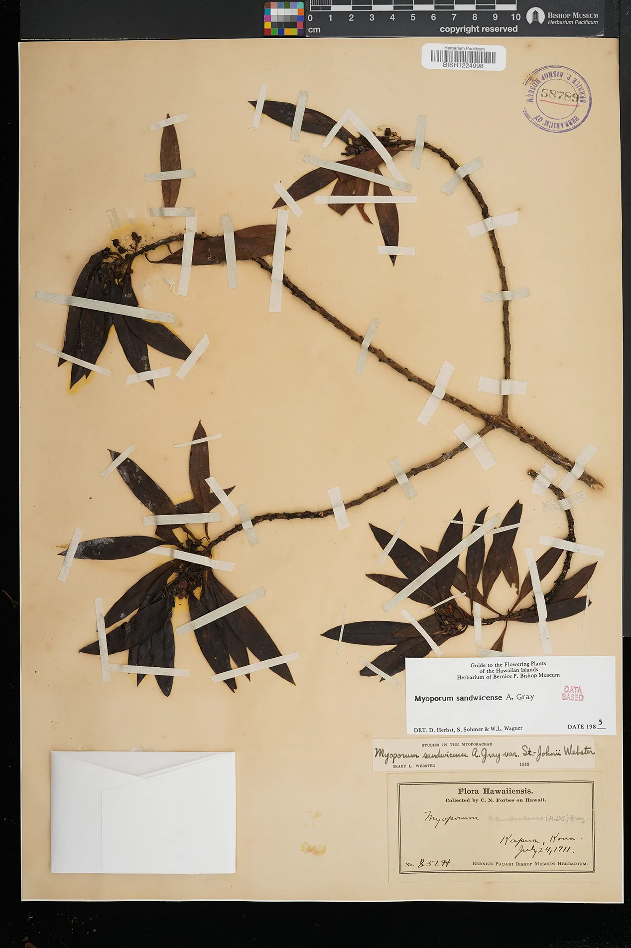 Wood has odor similar to sandalwood (Degener 1930:267). Used for house posts (Degener 1930:268; Krauss 1993:56). Burns well and long, used for torches (Lamb 1981:127). Wood used for fish net gauge (haha ka ‘upena) (Krauss 1993:35). In the Ethnology Collection at Bishop Museum there is a post-contact example of the wood made into a bowl.