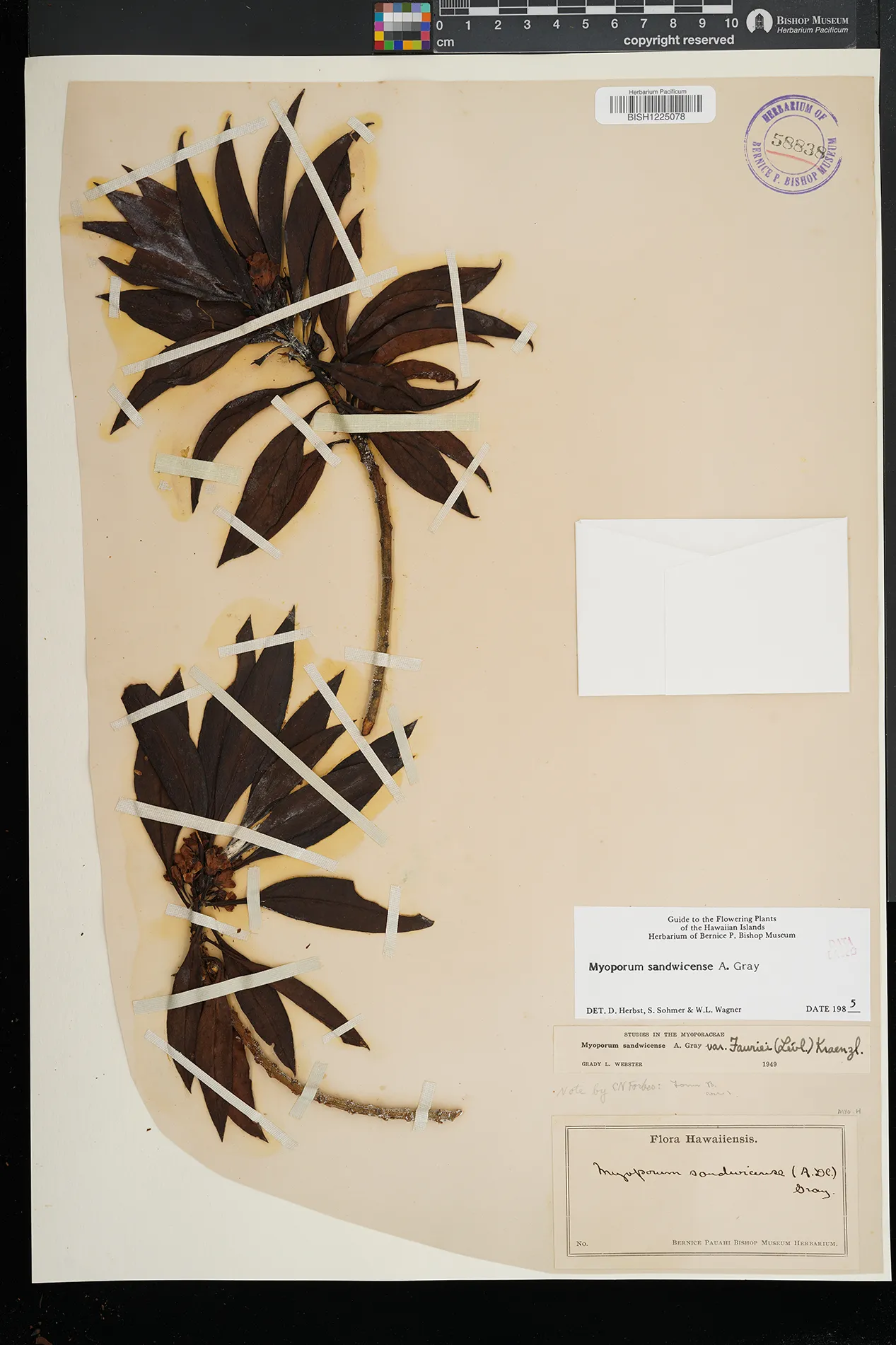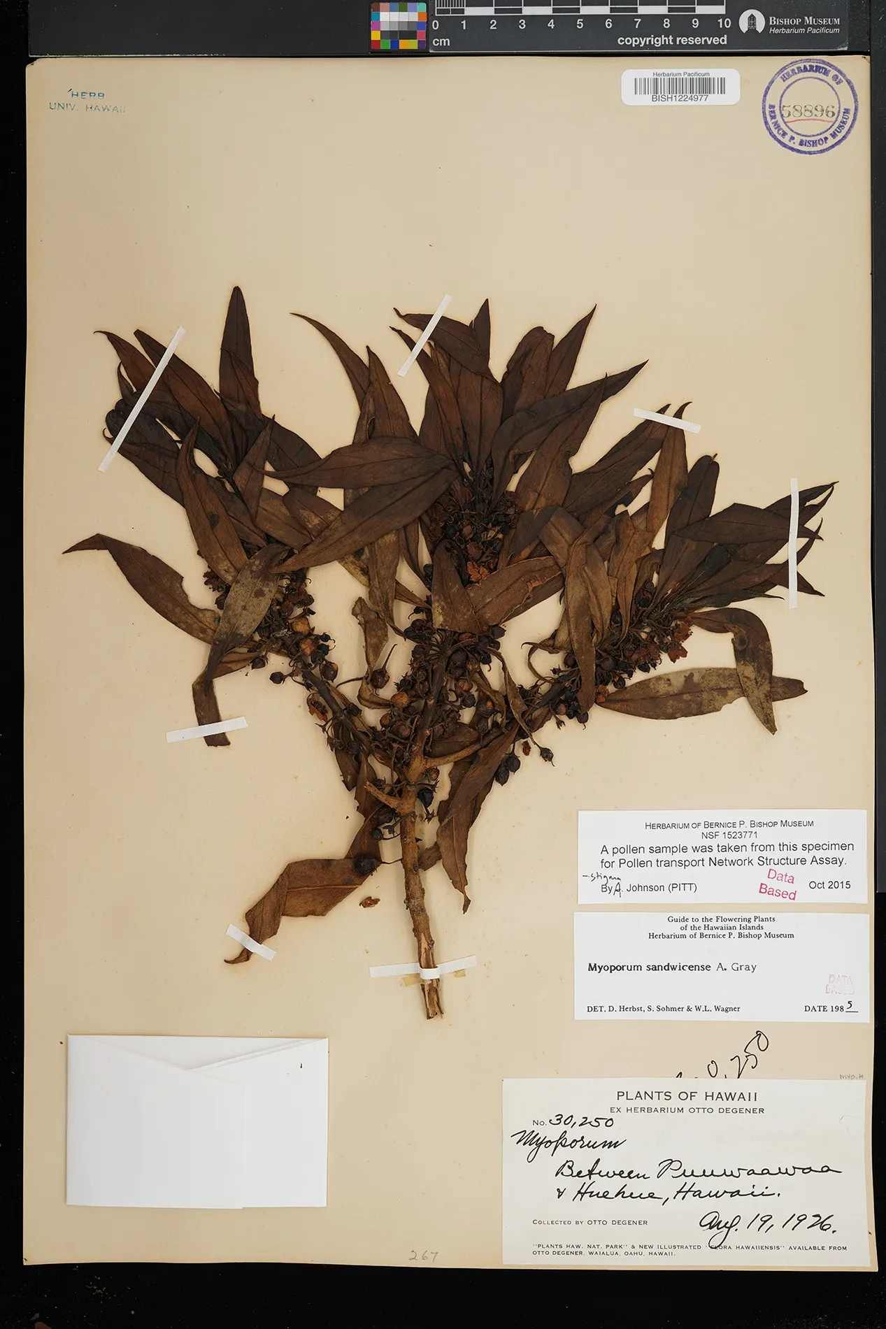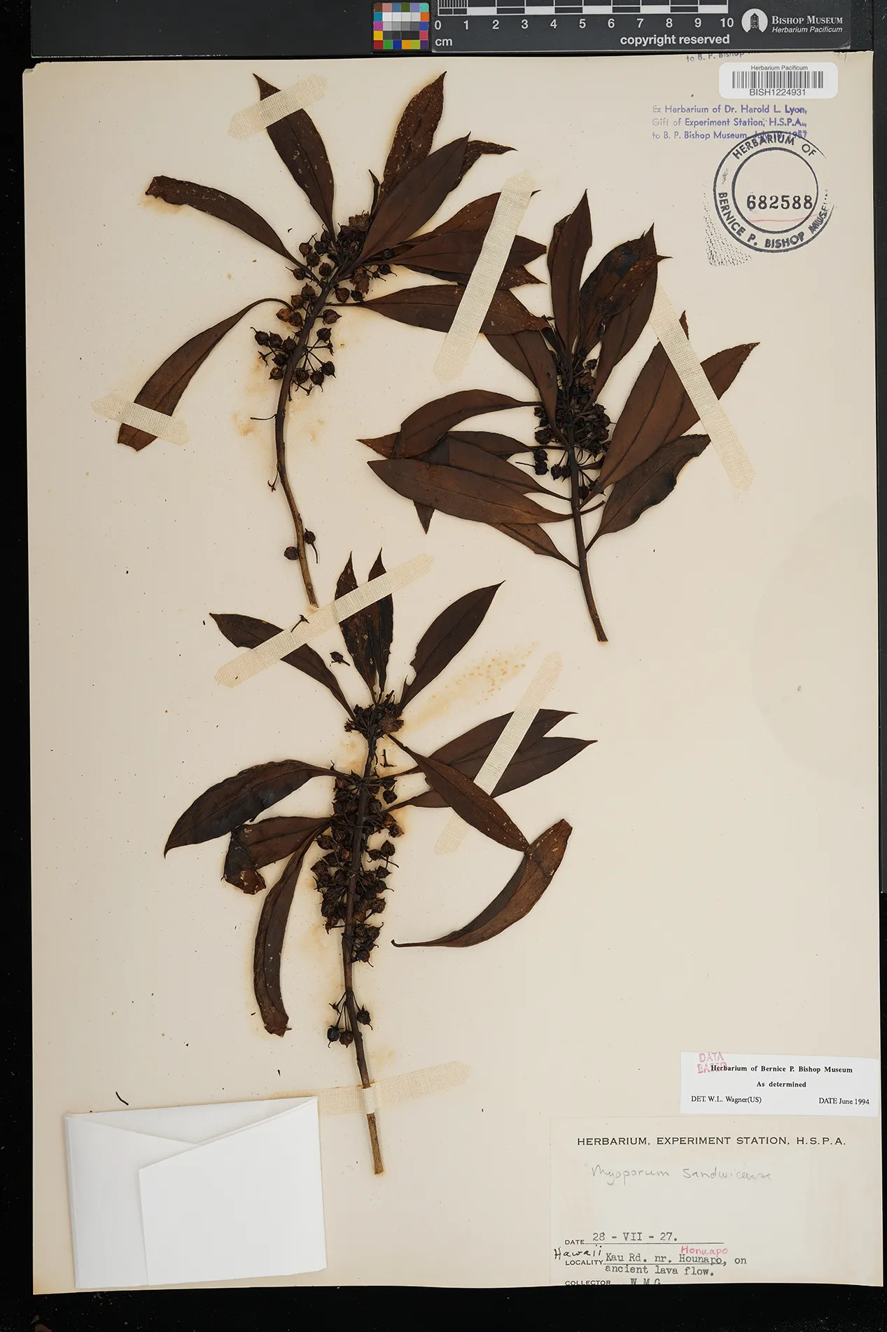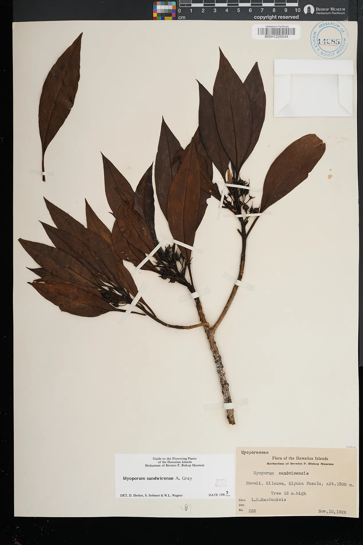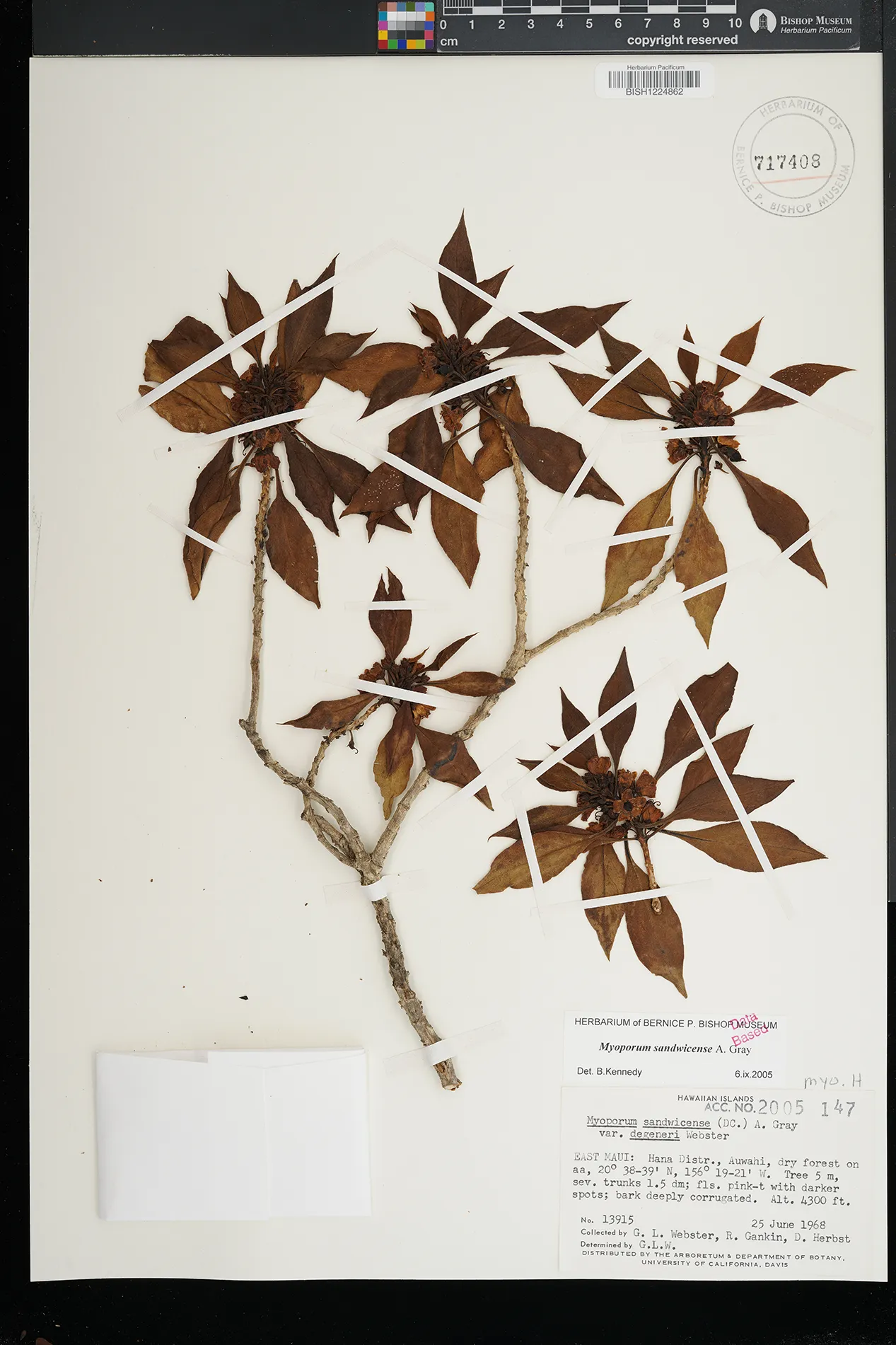 Wood has odor similar to sandalwood (Degener 1930:267). Used for house posts (Degener 1930:268; Krauss 1993:56). Burns well and long, used for torches (Lamb 1981:127). Wood used for fish net gauge (haha ka ‘upena) (Krauss 1993:35). In the Ethnology Collection at Bishop Museum there is a post-contact example of the wood made into a bowl.