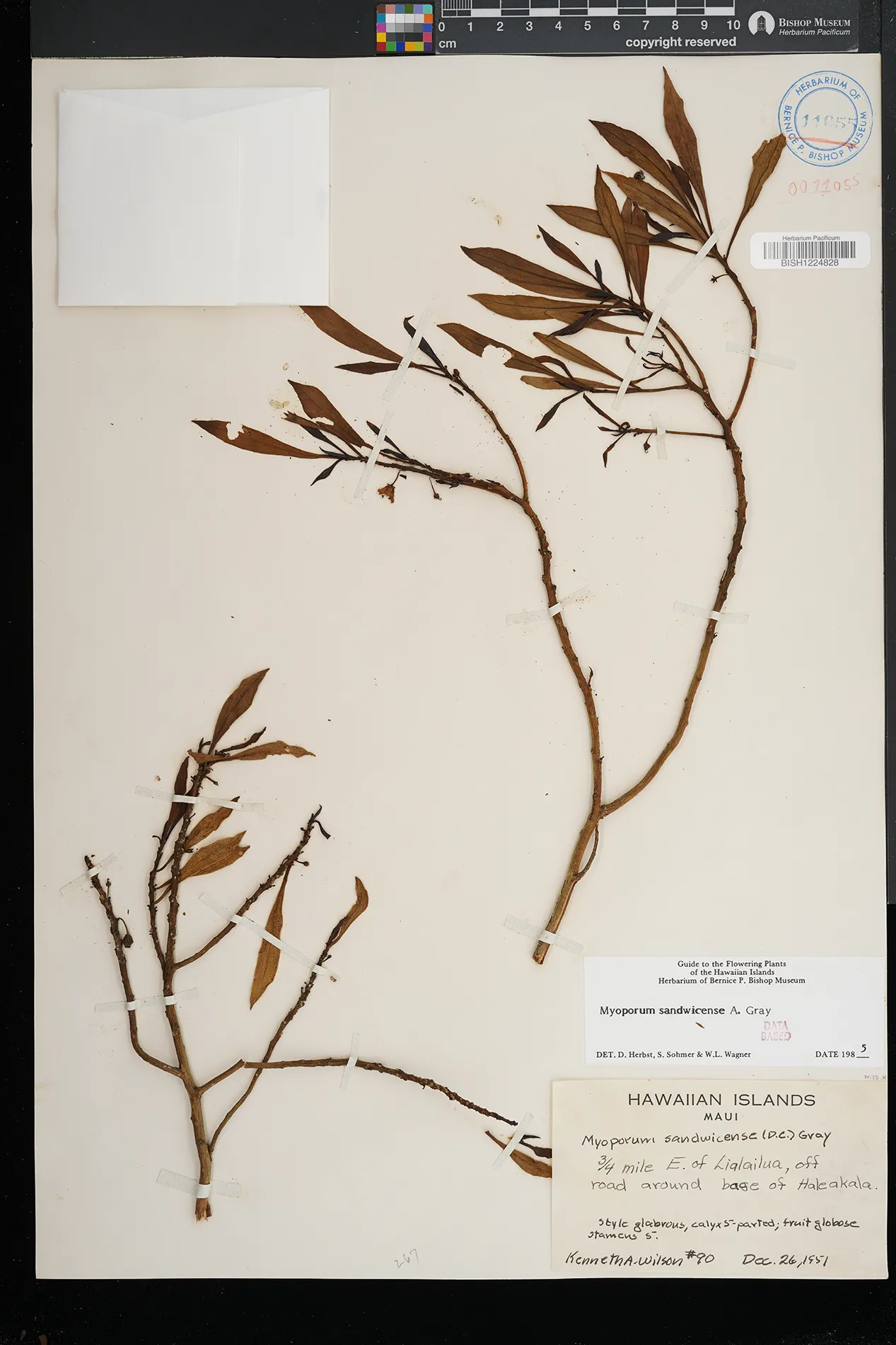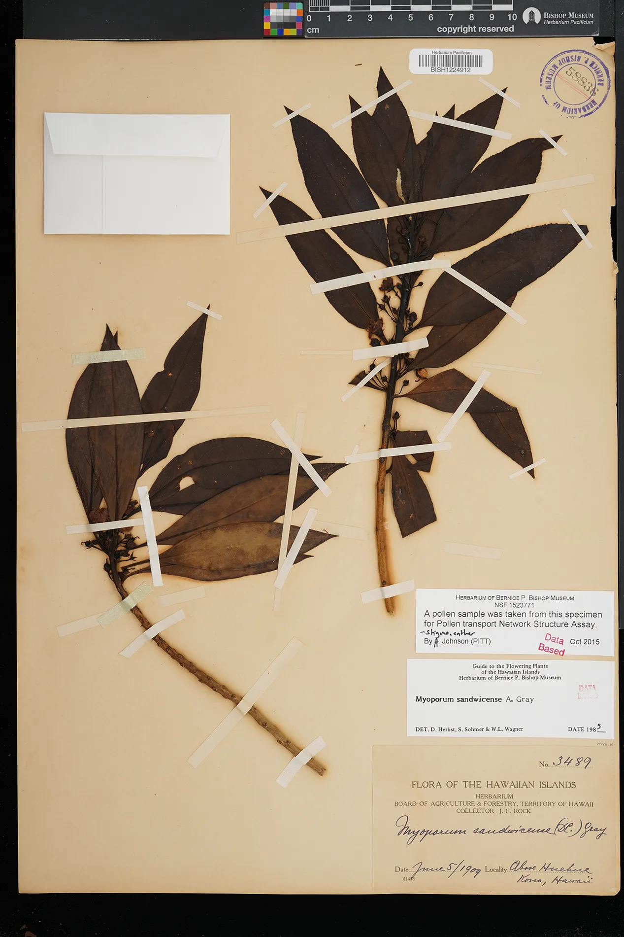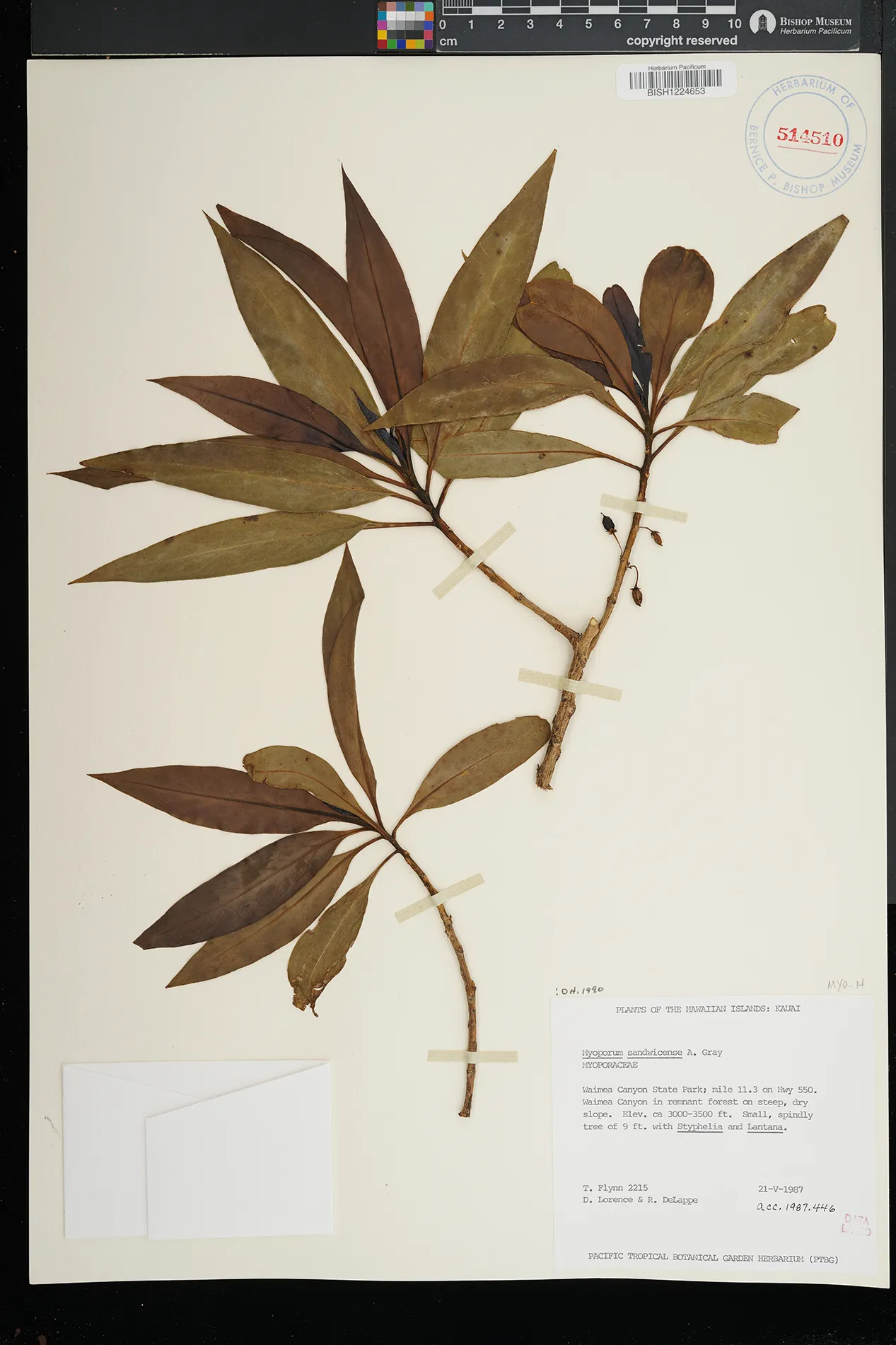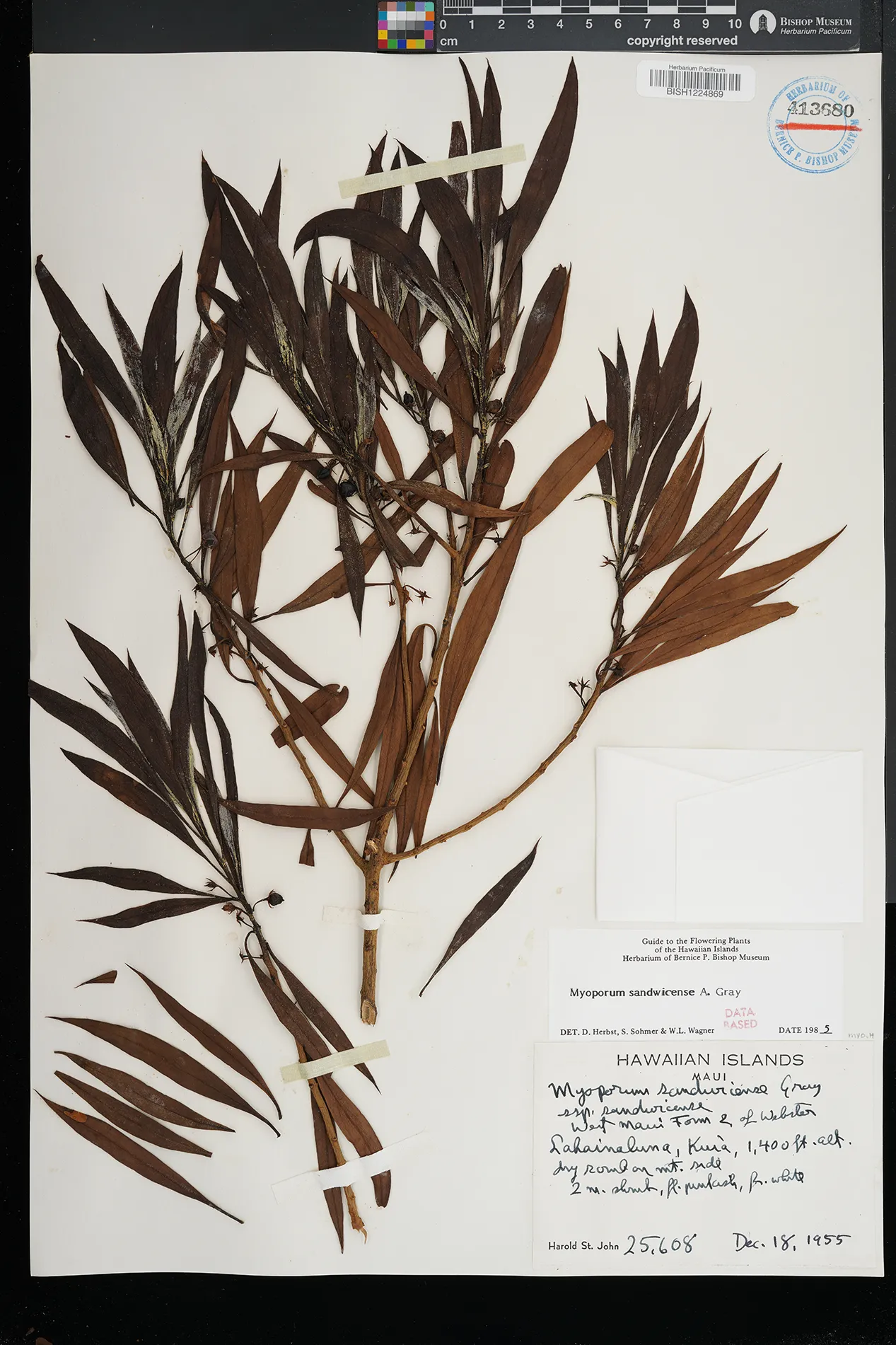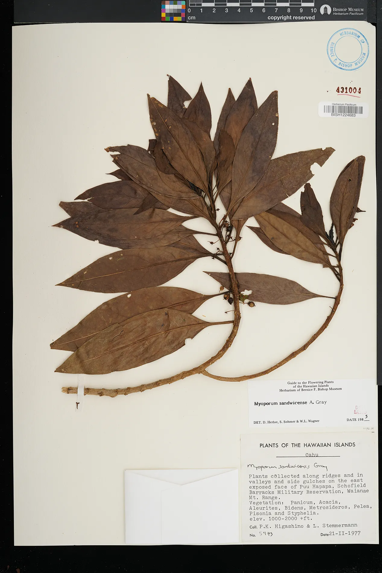 Wood has odor similar to sandalwood (Degener 1930:267). Used for house posts (Degener 1930:268; Krauss 1993:56). Burns well and long, used for torches (Lamb 1981:127). Wood used for fish net gauge (haha ka ‘upena) (Krauss 1993:35). In the Ethnology Collection at Bishop Museum there is a post-contact example of the wood made into a bowl.