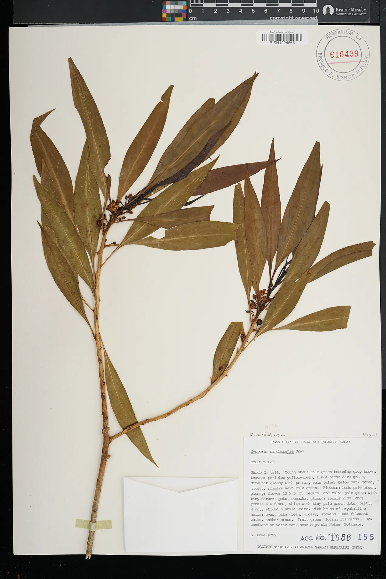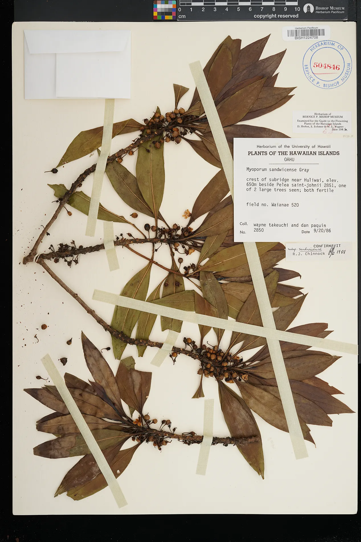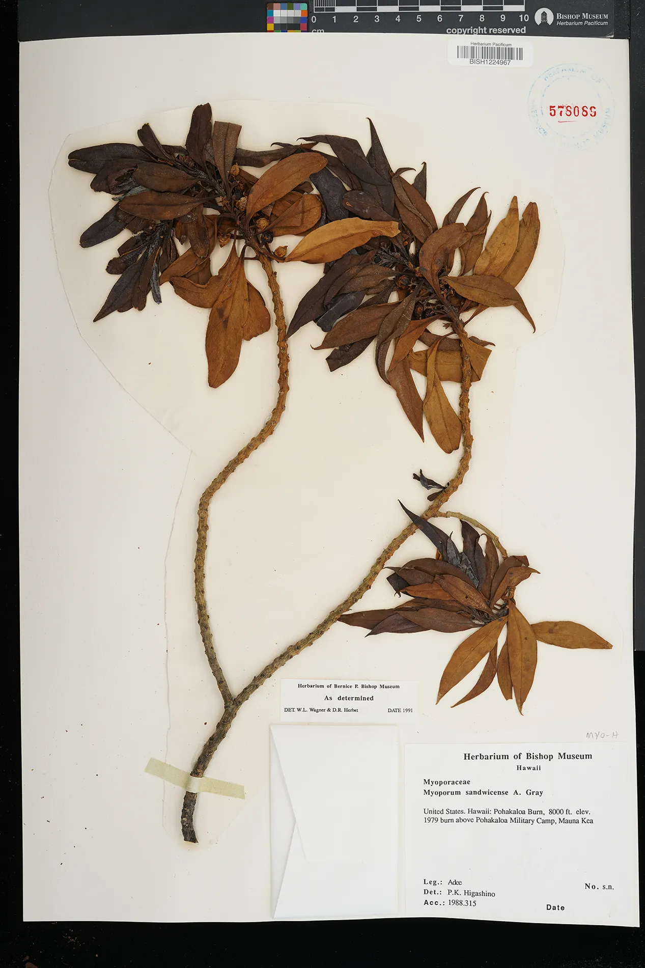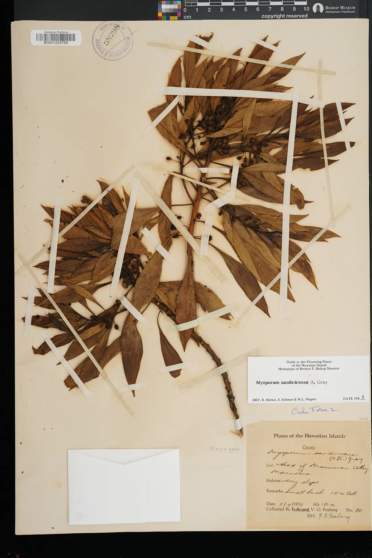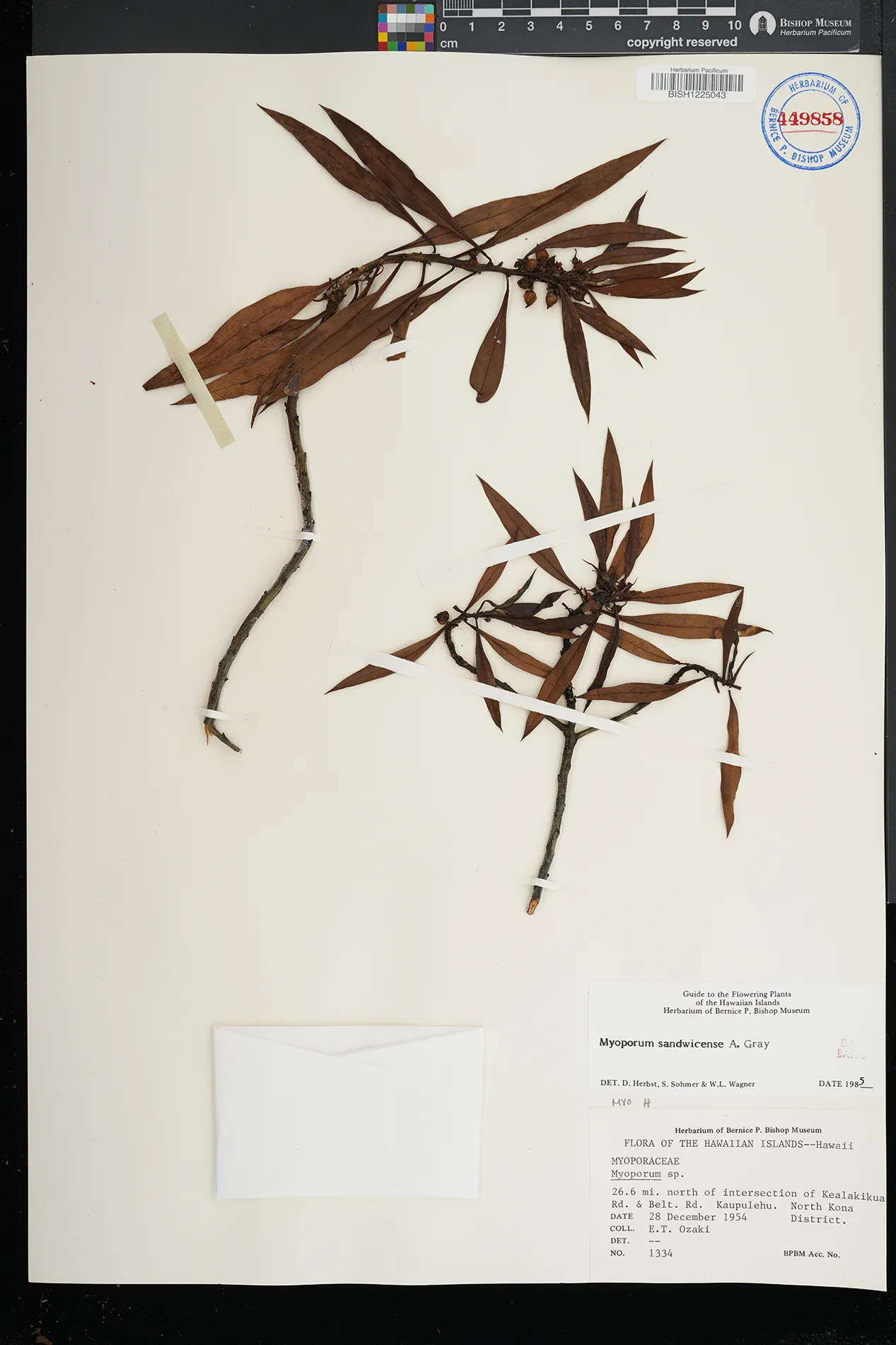 Wood has odor similar to sandalwood (Degener 1930:267). Used for house posts (Degener 1930:268; Krauss 1993:56). Burns well and long, used for torches (Lamb 1981:127). Wood used for fish net gauge (haha ka ‘upena) (Krauss 1993:35). In the Ethnology Collection at Bishop Museum there is a post-contact example of the wood made into a bowl.
