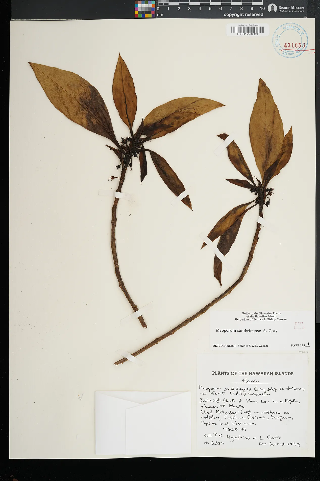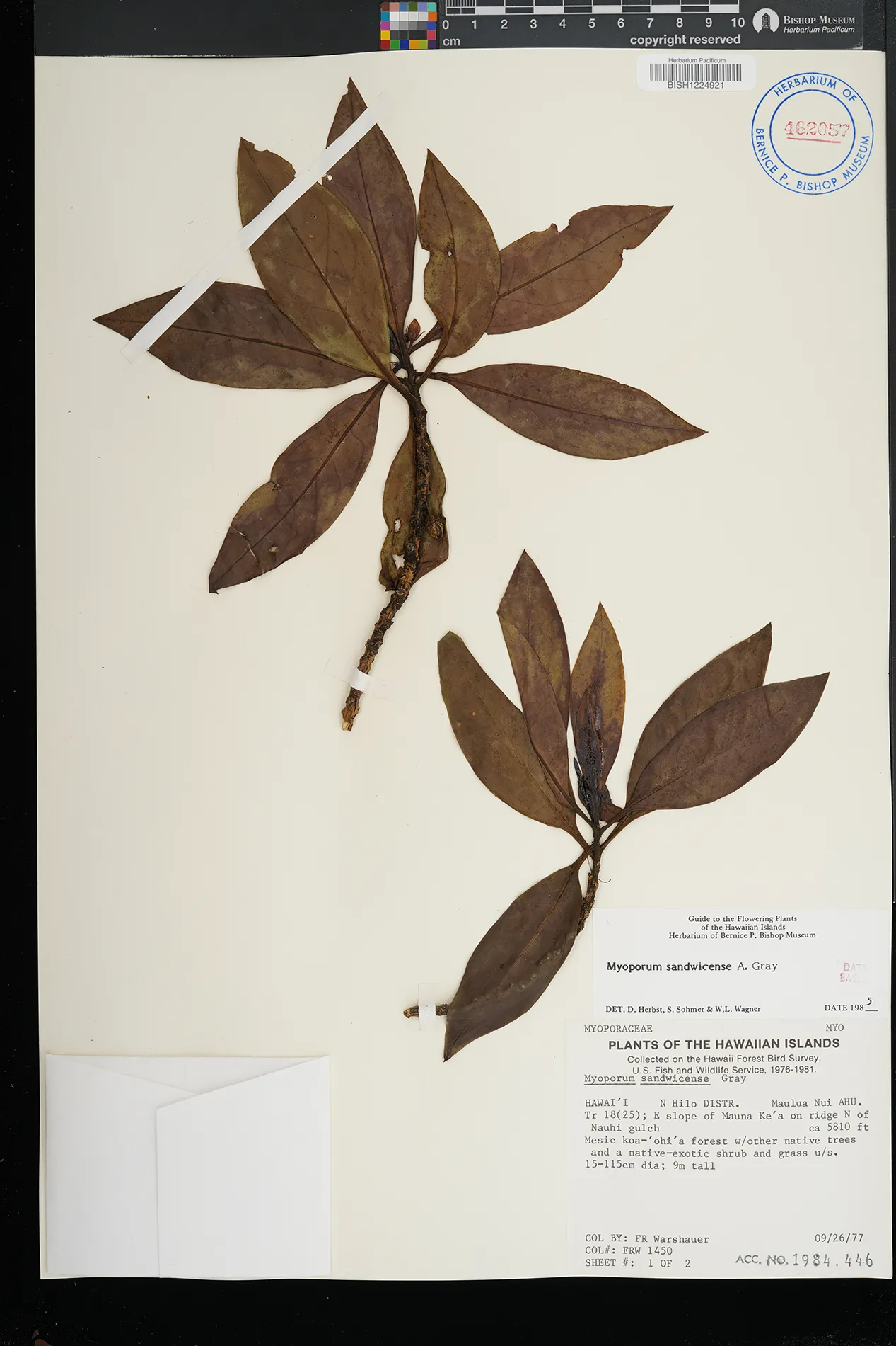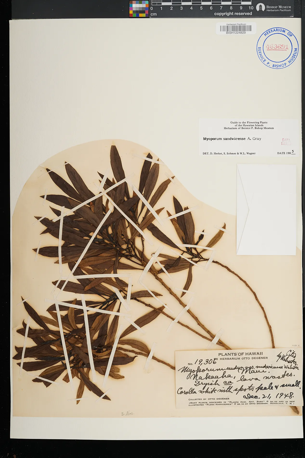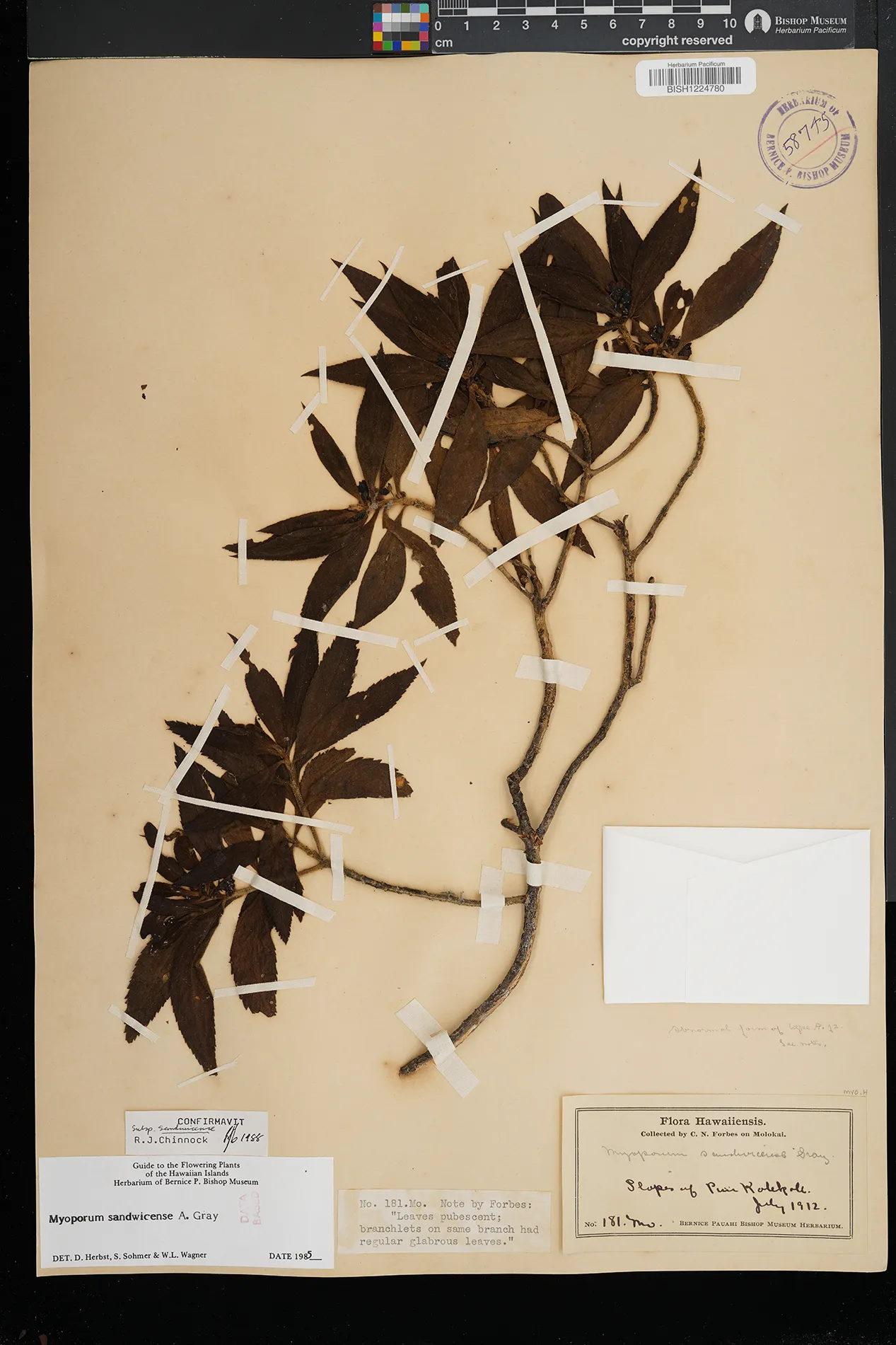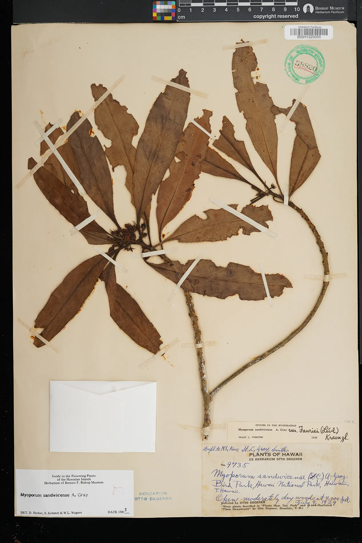 Wood has odor similar to sandalwood (Degener 1930:267). Used for house posts (Degener 1930:268; Krauss 1993:56). Burns well and long, used for torches (Lamb 1981:127). Wood used for fish net gauge (haha ka ‘upena) (Krauss 1993:35). In the Ethnology Collection at Bishop Museum there is a post-contact example of the wood made into a bowl.