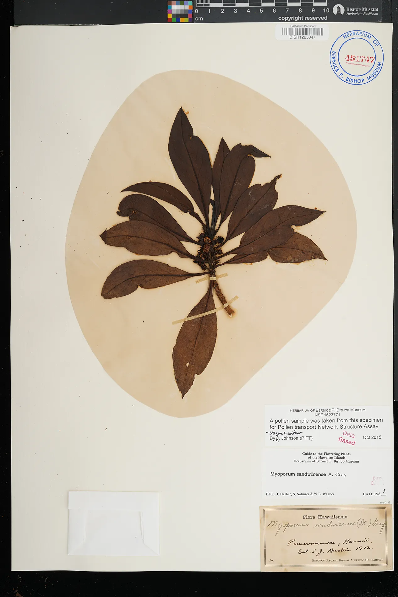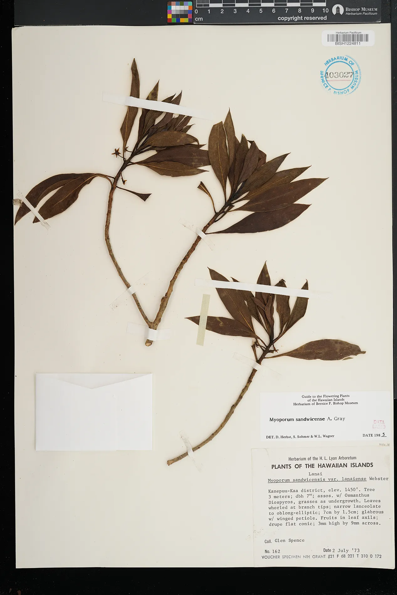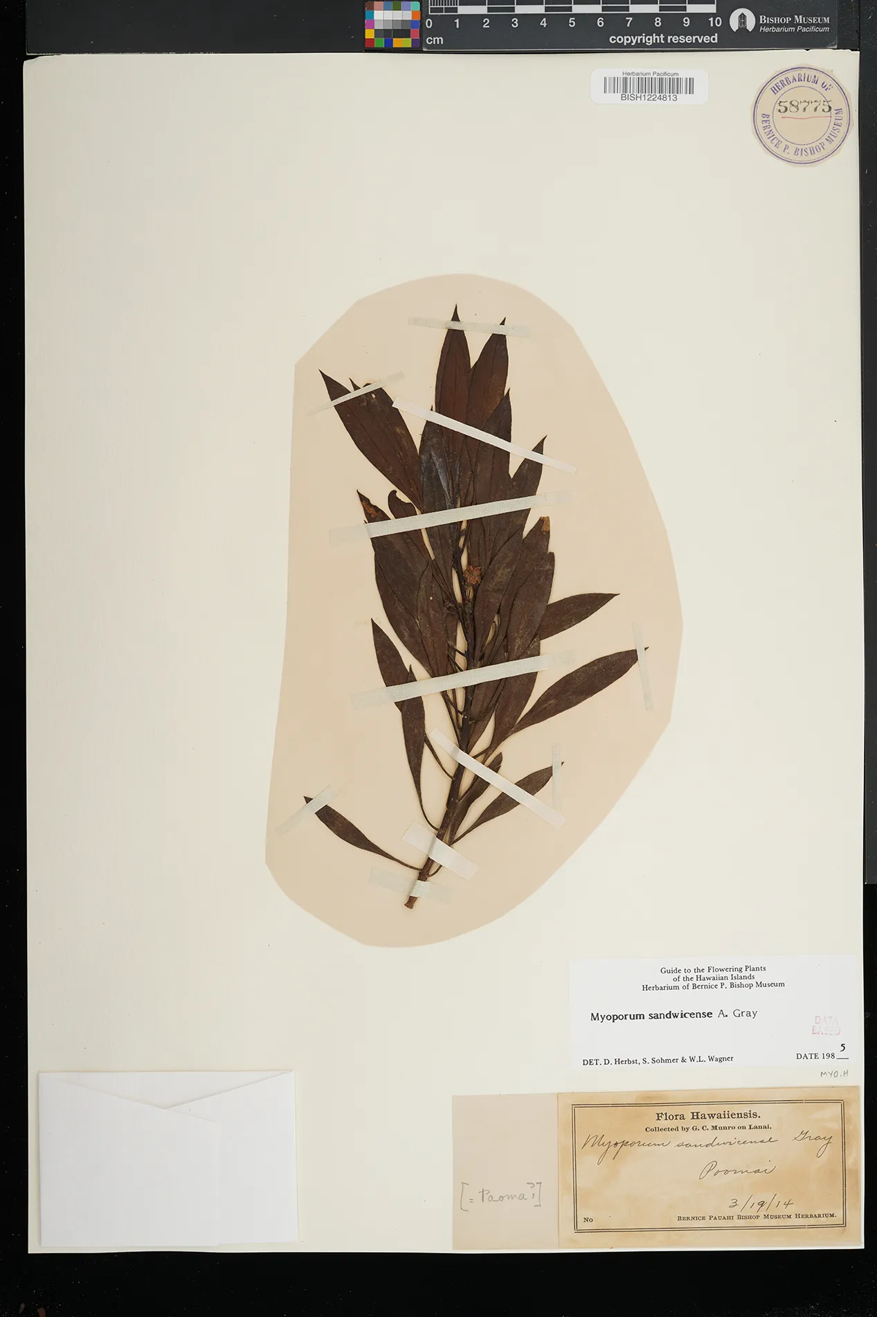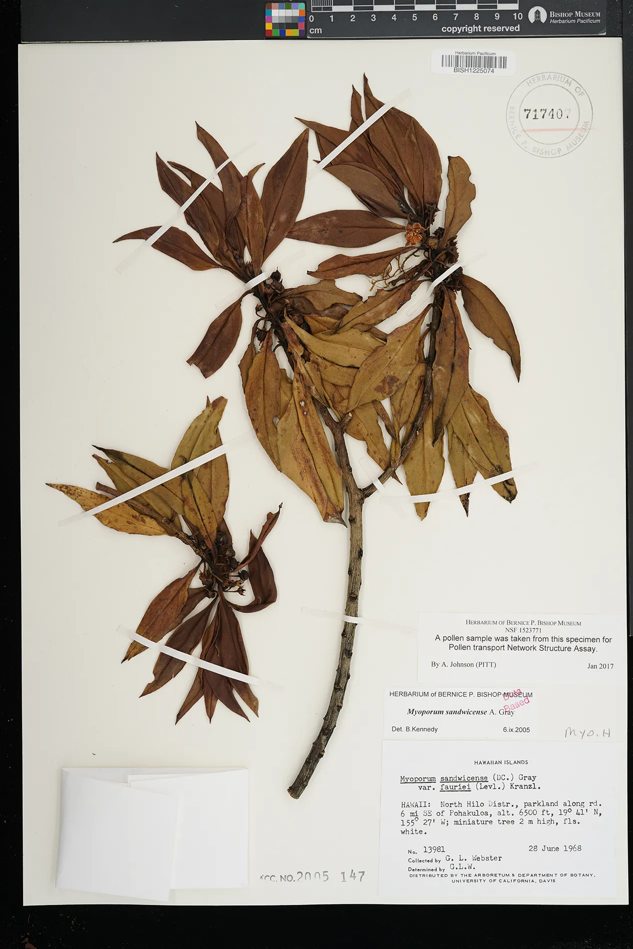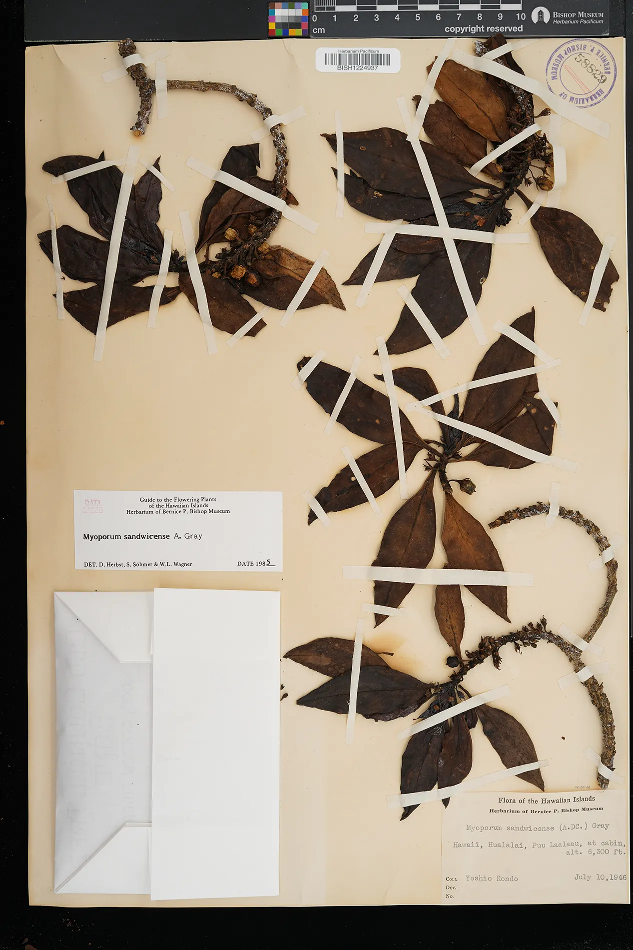 Wood has odor similar to sandalwood (Degener 1930:267). Used for house posts (Degener 1930:268; Krauss 1993:56). Burns well and long, used for torches (Lamb 1981:127). Wood used for fish net gauge (haha ka ‘upena) (Krauss 1993:35). In the Ethnology Collection at Bishop Museum there is a post-contact example of the wood made into a bowl.