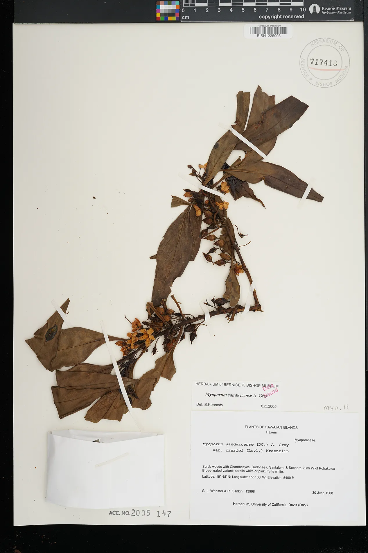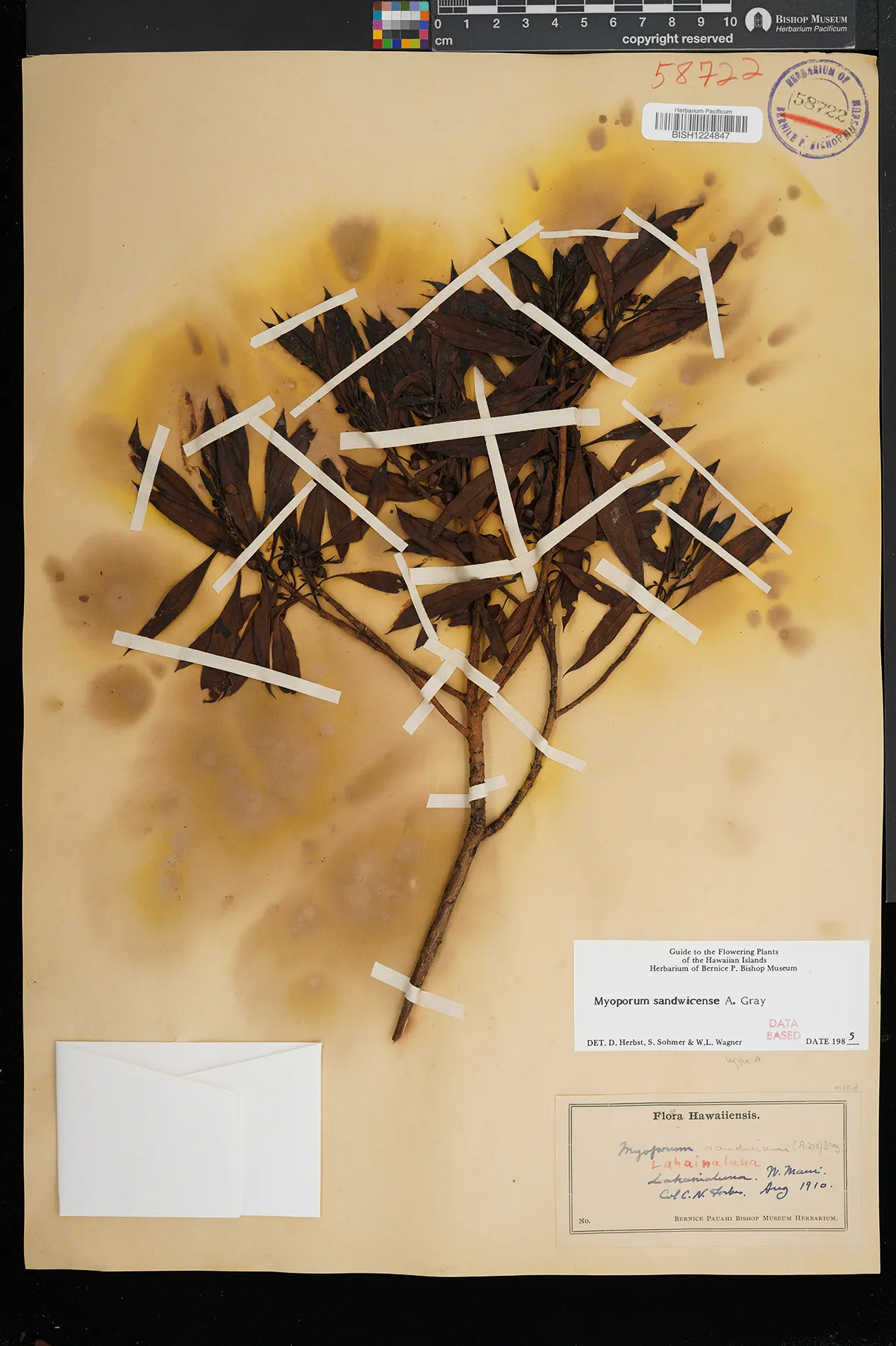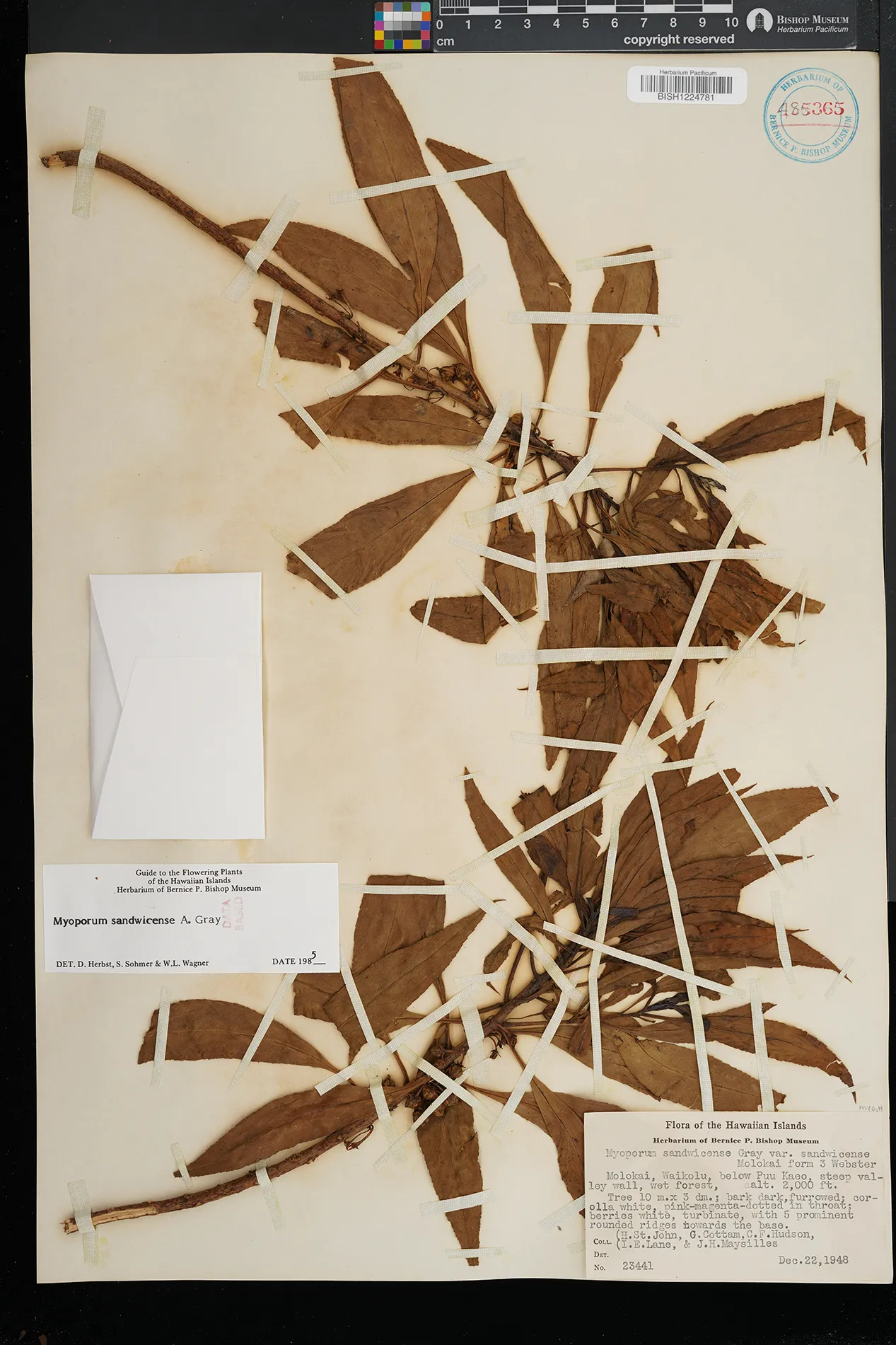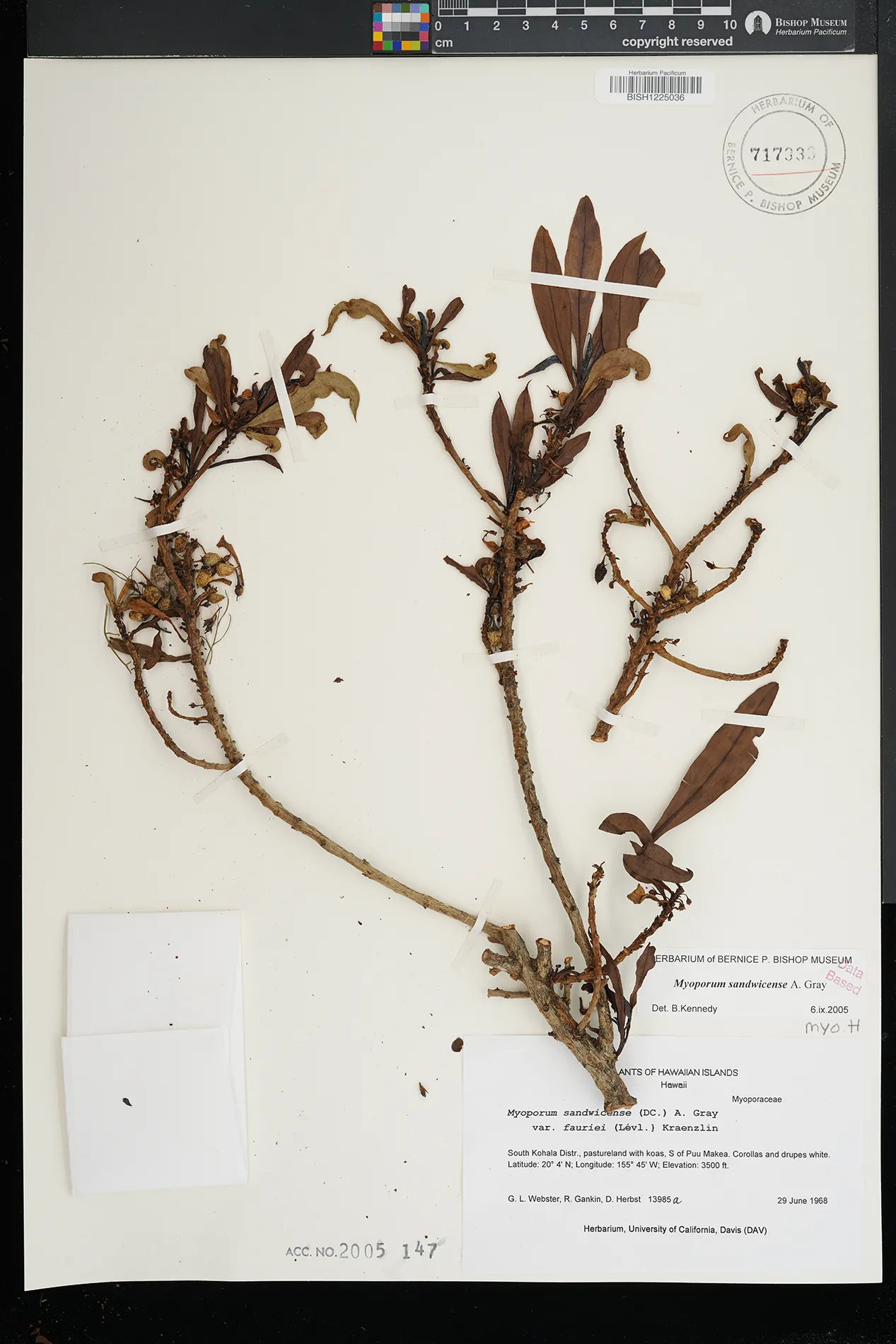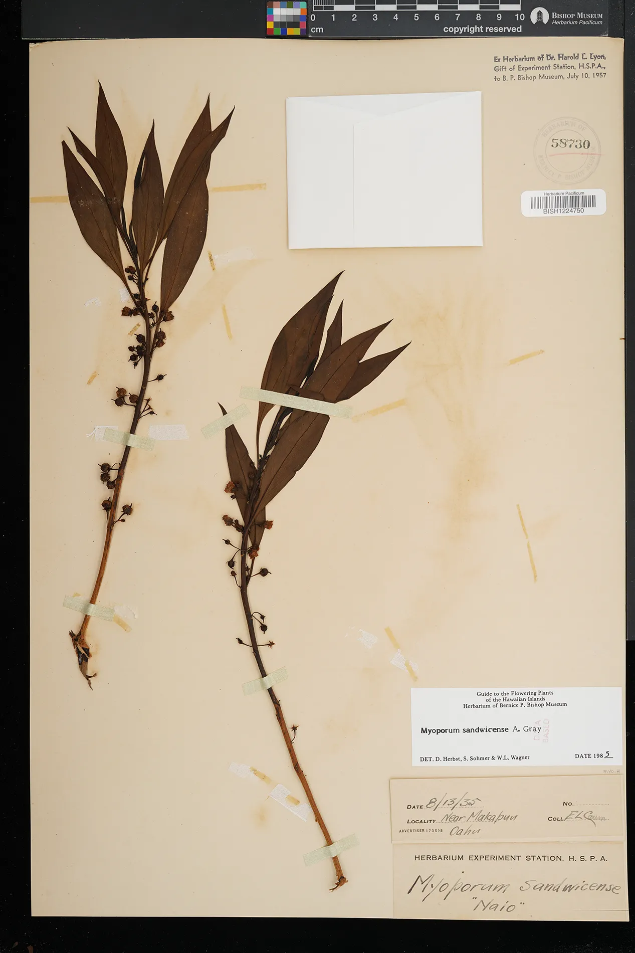 Wood has odor similar to sandalwood (Degener 1930:267). Used for house posts (Degener 1930:268; Krauss 1993:56). Burns well and long, used for torches (Lamb 1981:127). Wood used for fish net gauge (haha ka ‘upena) (Krauss 1993:35). In the Ethnology Collection at Bishop Museum there is a post-contact example of the wood made into a bowl.