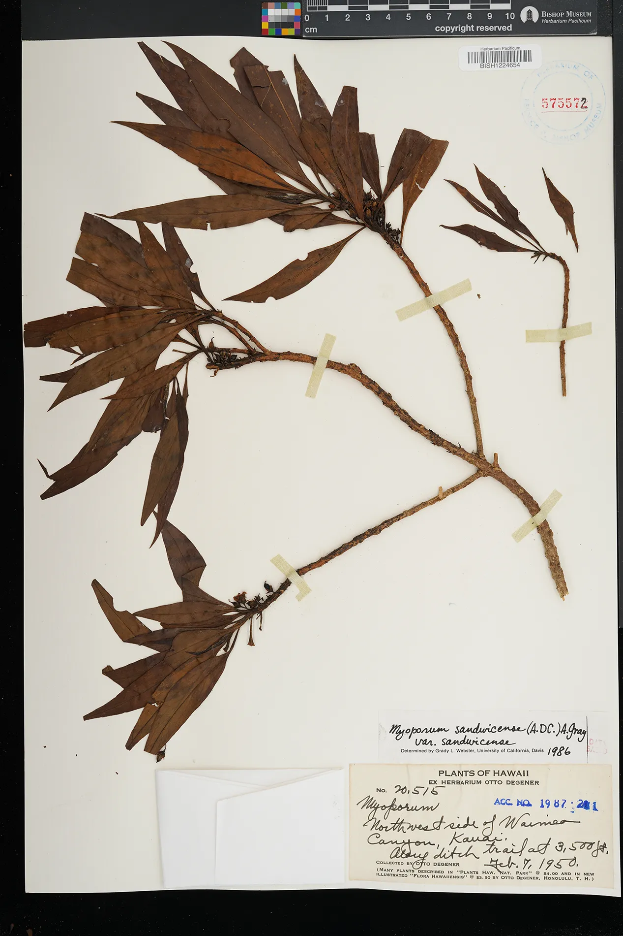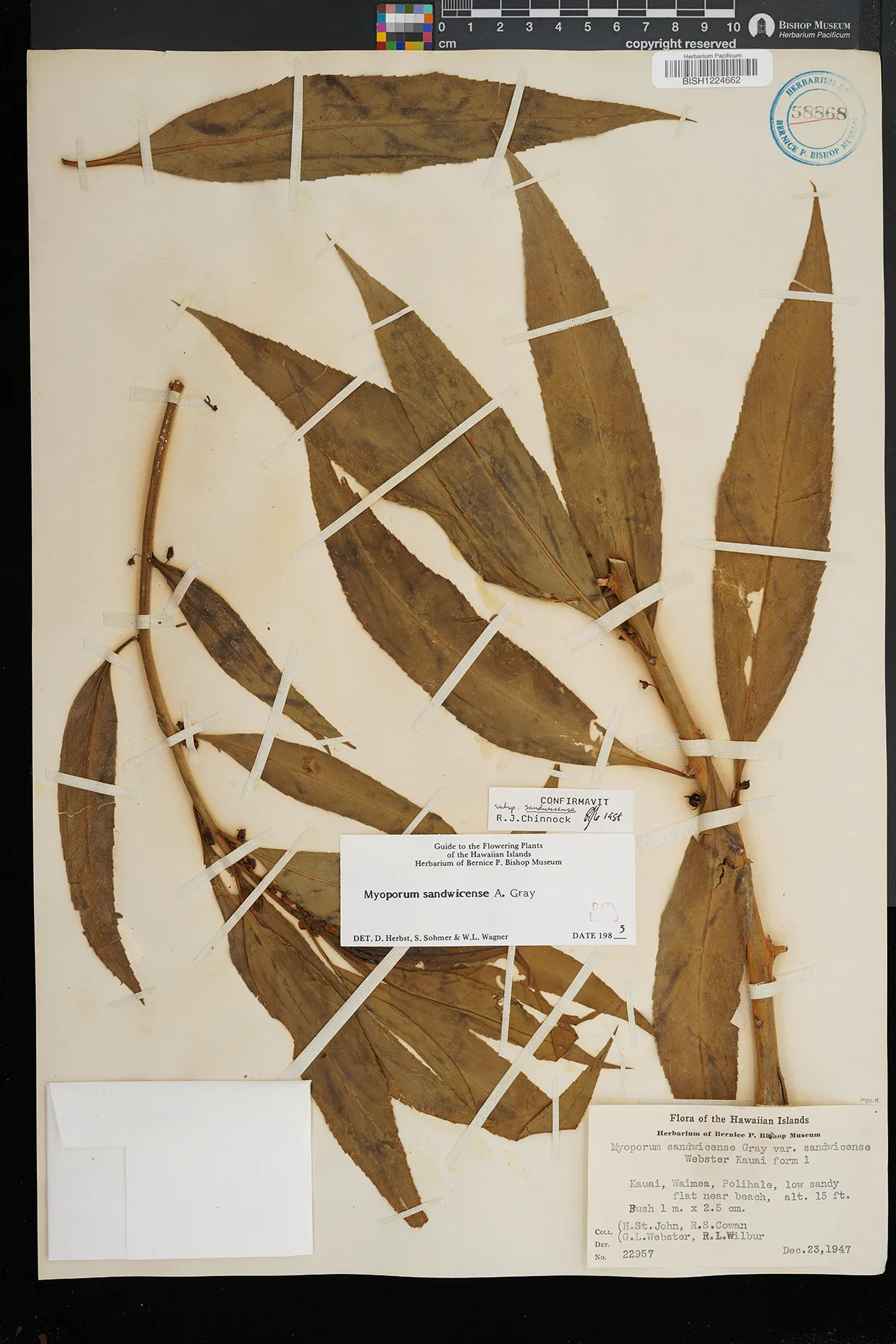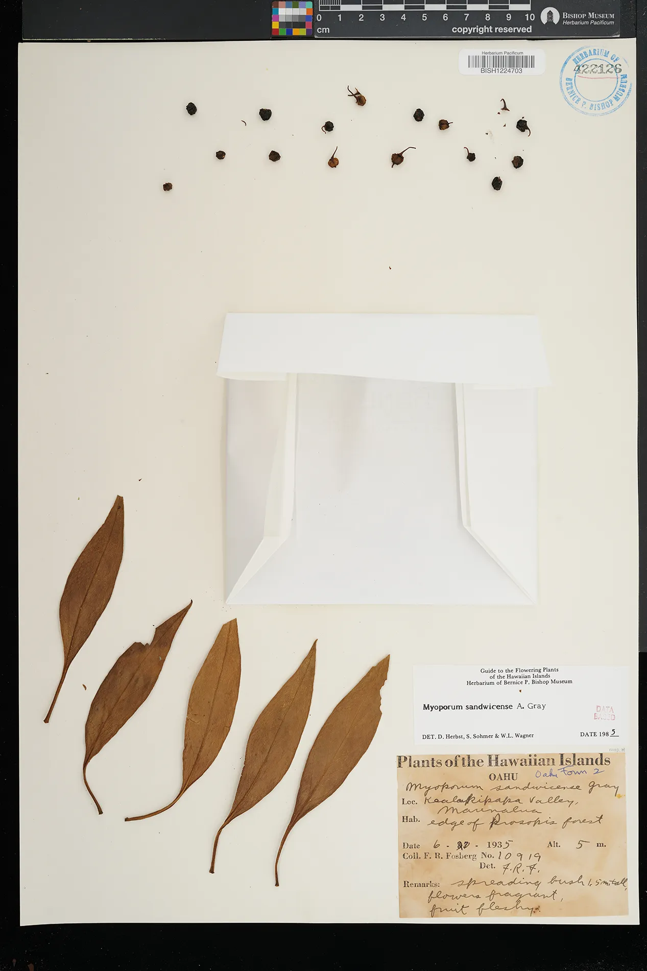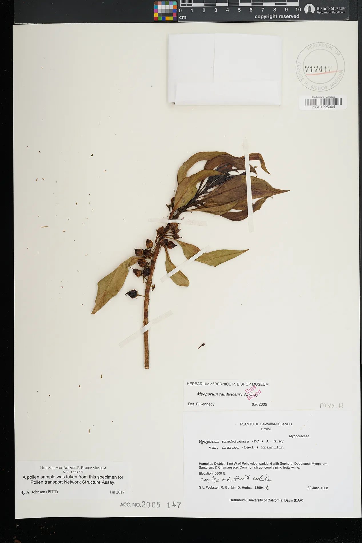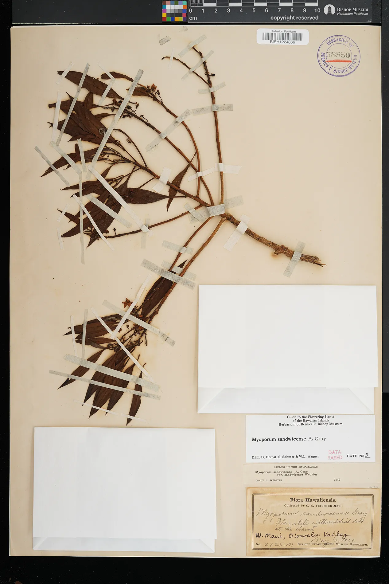 Wood has odor similar to sandalwood (Degener 1930:267). Used for house posts (Degener 1930:268; Krauss 1993:56). Burns well and long, used for torches (Lamb 1981:127). Wood used for fish net gauge (haha ka ‘upena) (Krauss 1993:35). In the Ethnology Collection at Bishop Museum there is a post-contact example of the wood made into a bowl.