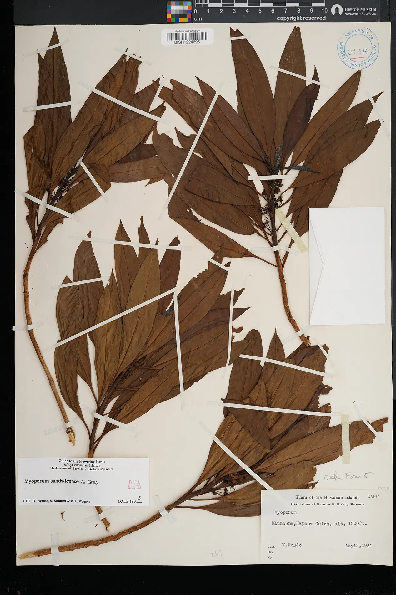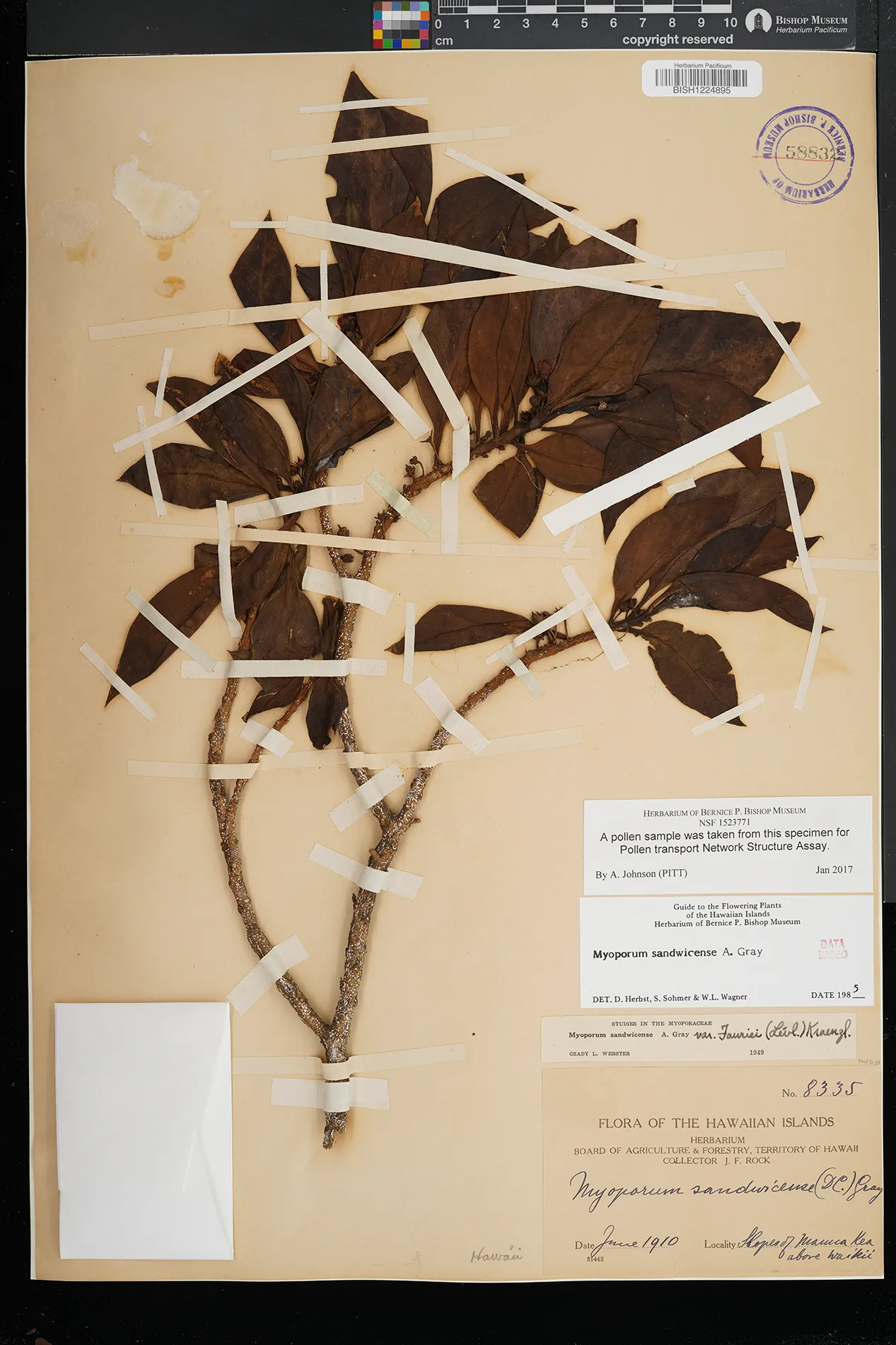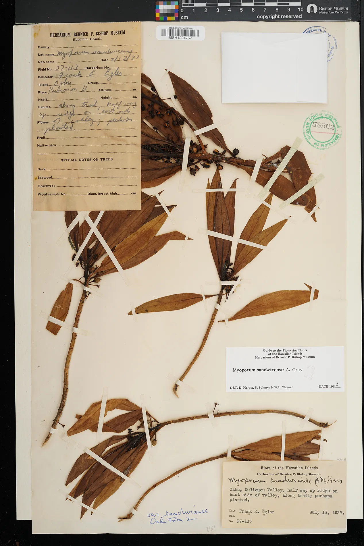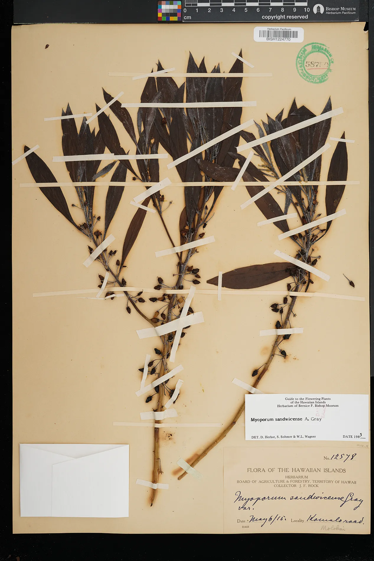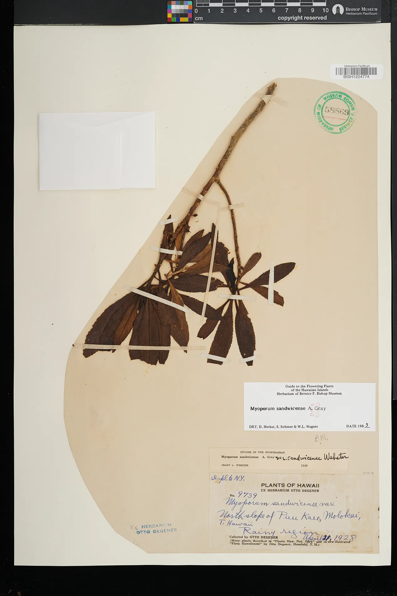 Wood has odor similar to sandalwood (Degener 1930:267). Used for house posts (Degener 1930:268; Krauss 1993:56). Burns well and long, used for torches (Lamb 1981:127). Wood used for fish net gauge (haha ka ‘upena) (Krauss 1993:35). In the Ethnology Collection at Bishop Museum there is a post-contact example of the wood made into a bowl.