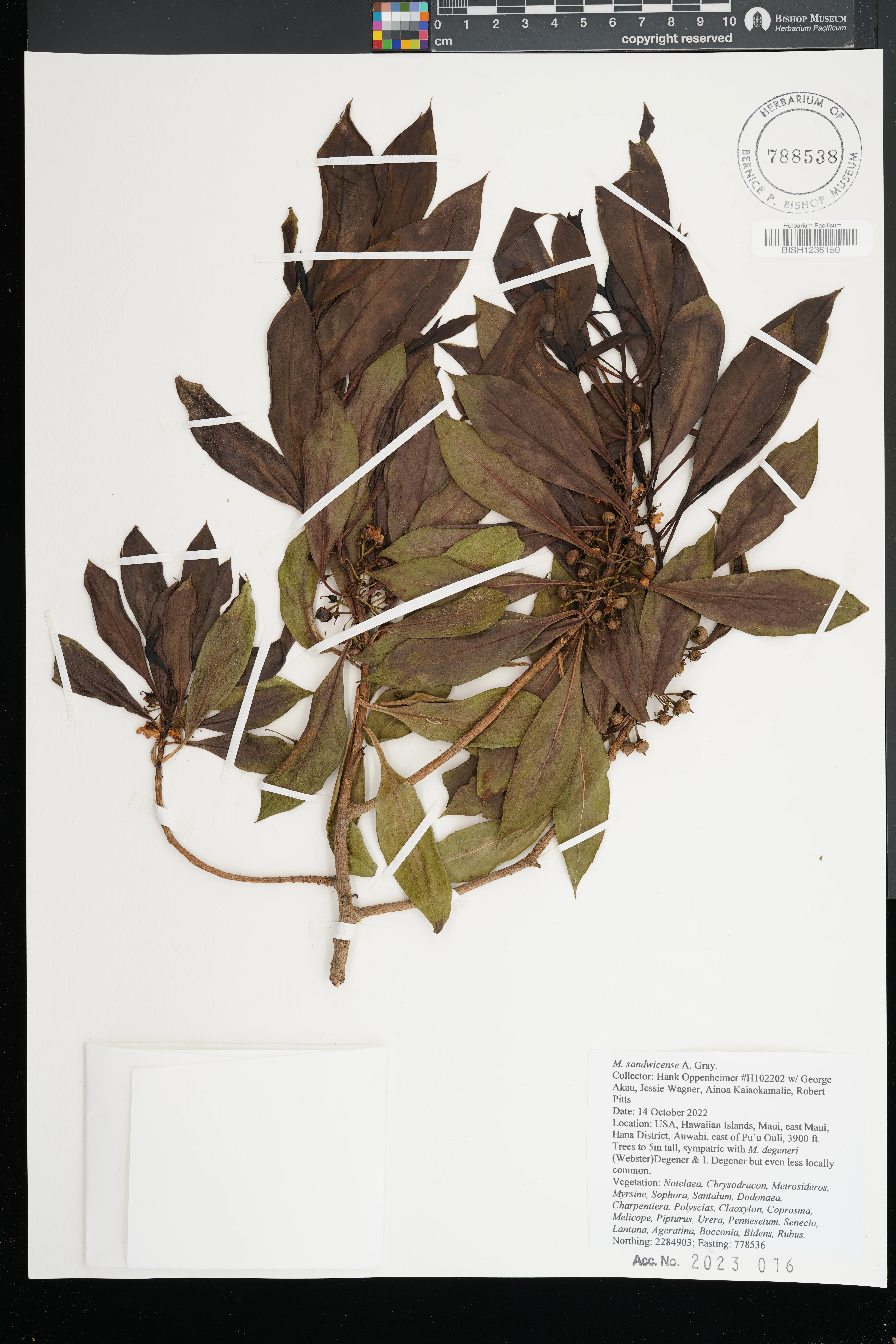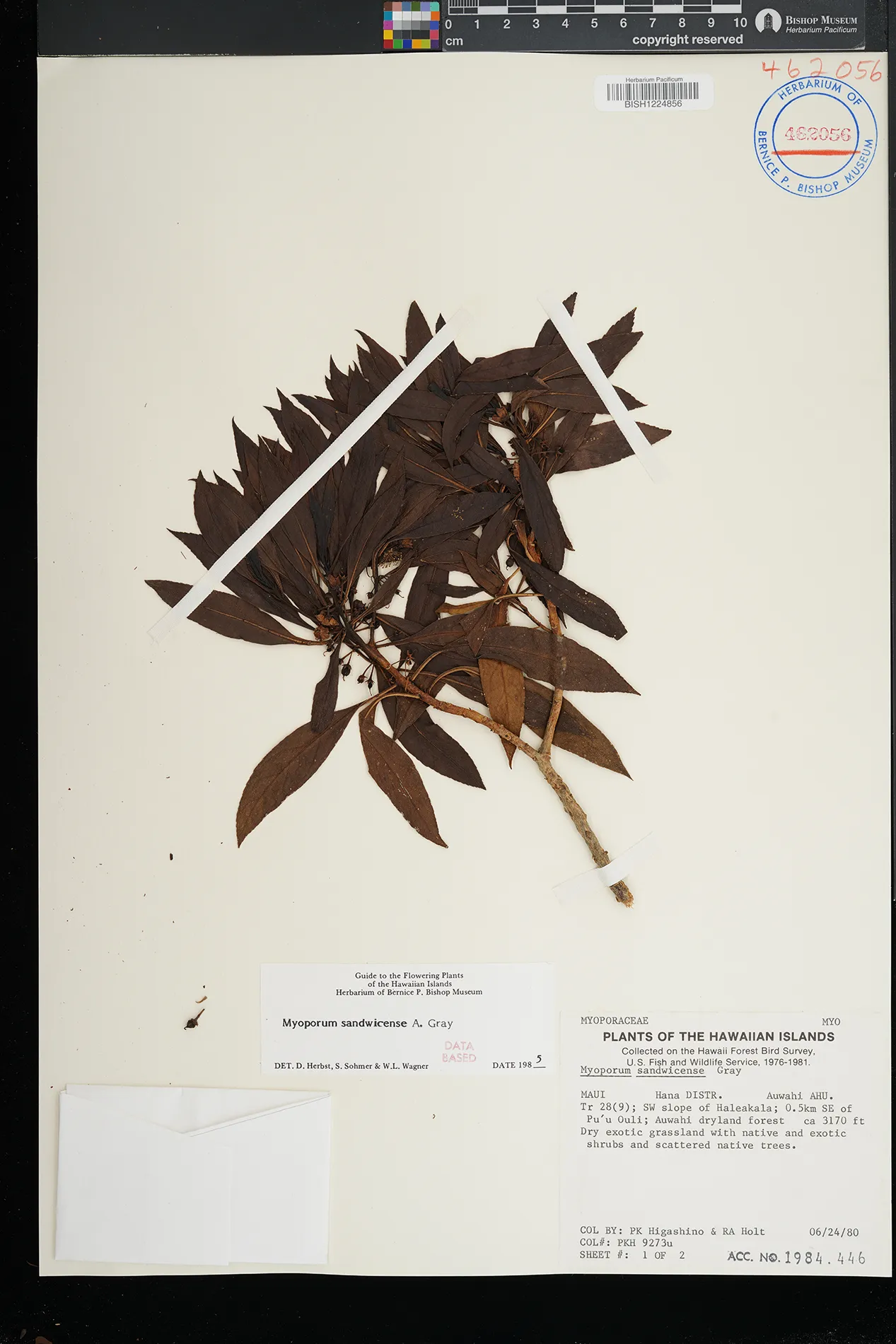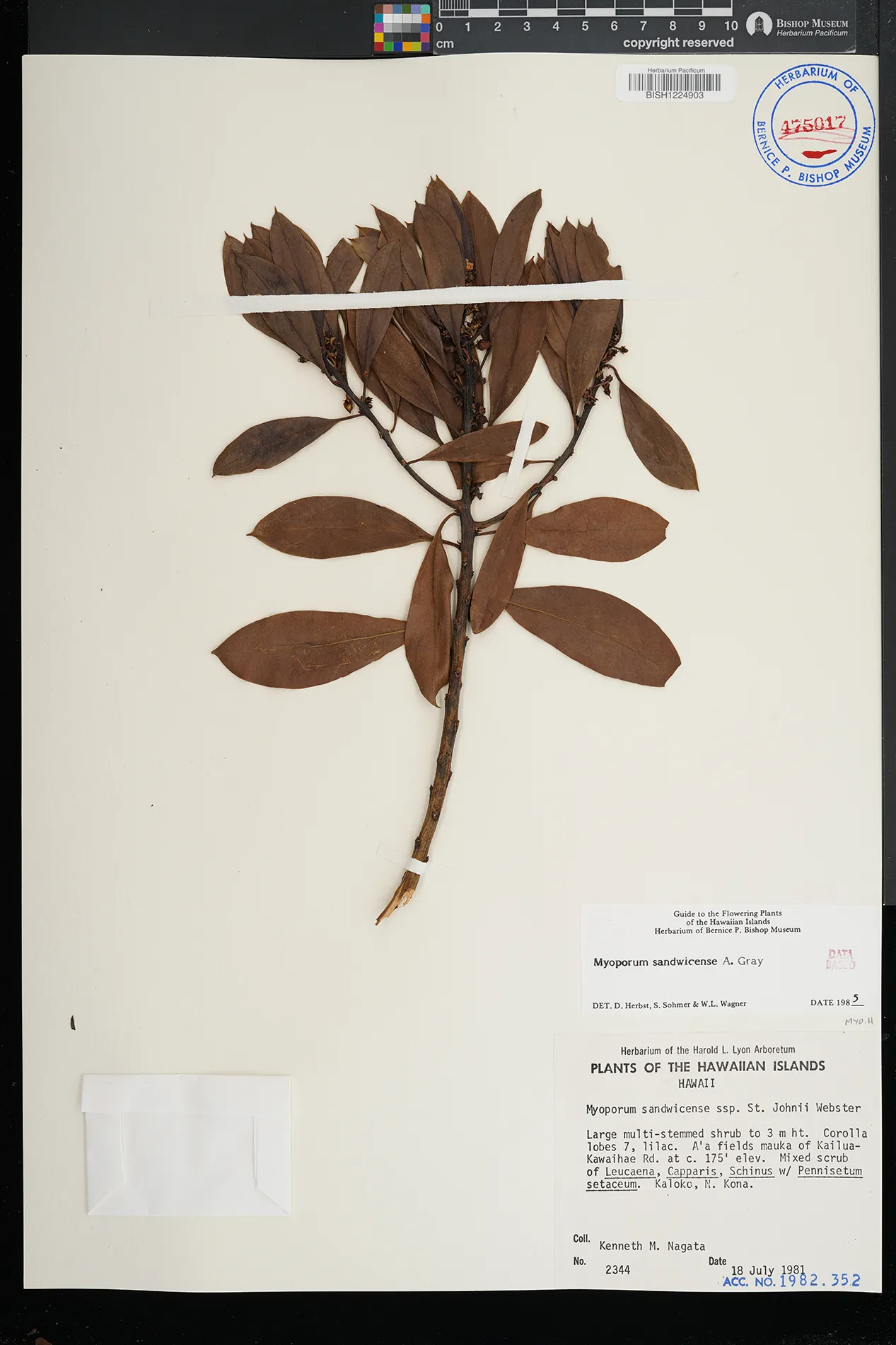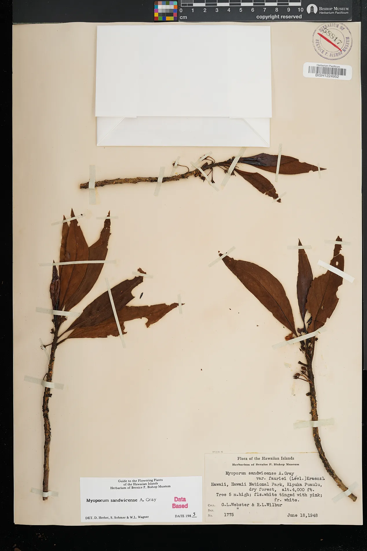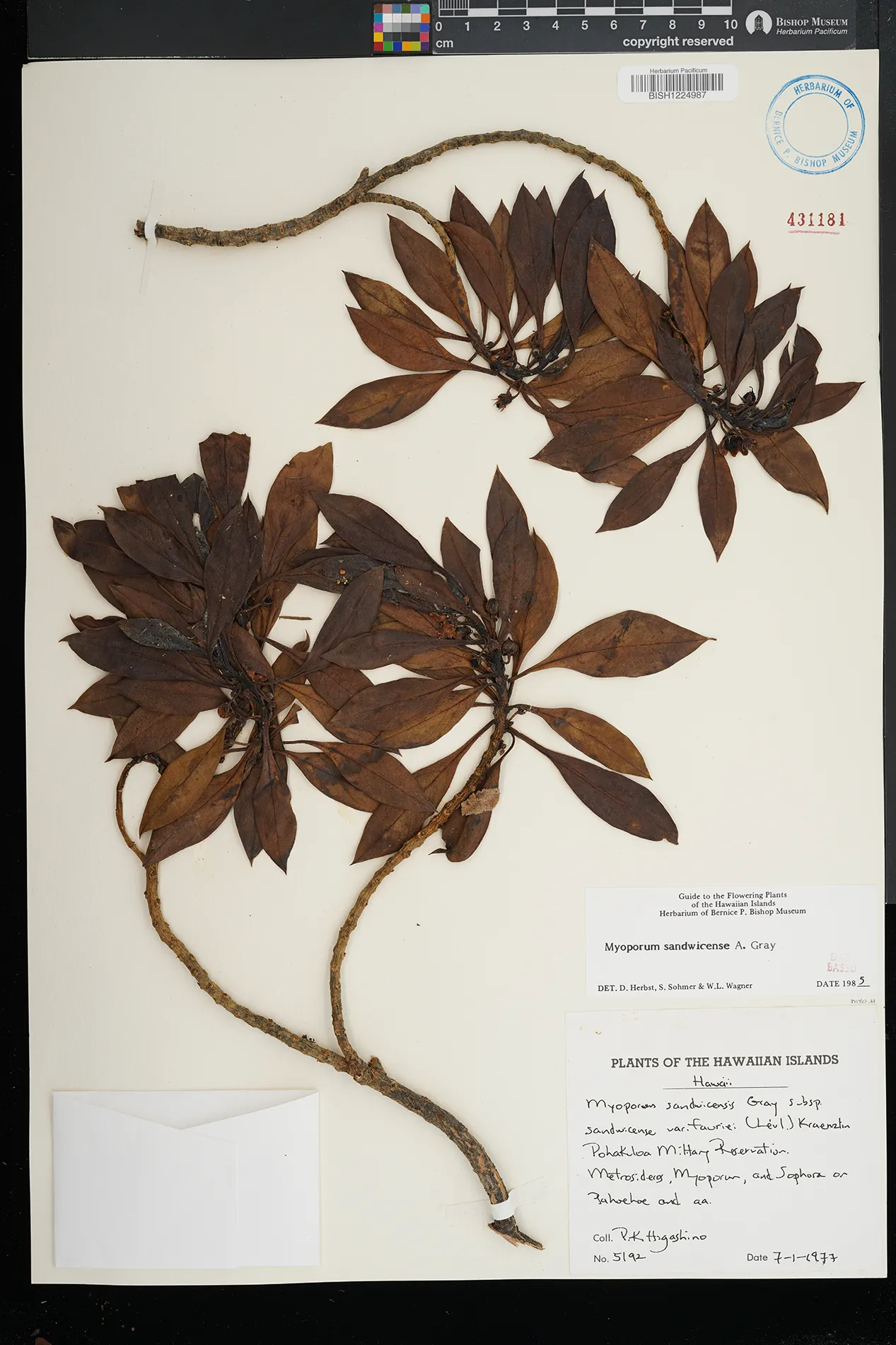 Wood has odor similar to sandalwood (Degener 1930:267). Used for house posts (Degener 1930:268; Krauss 1993:56). Burns well and long, used for torches (Lamb 1981:127). Wood used for fish net gauge (haha ka ‘upena) (Krauss 1993:35). In the Ethnology Collection at Bishop Museum there is a post-contact example of the wood made into a bowl.