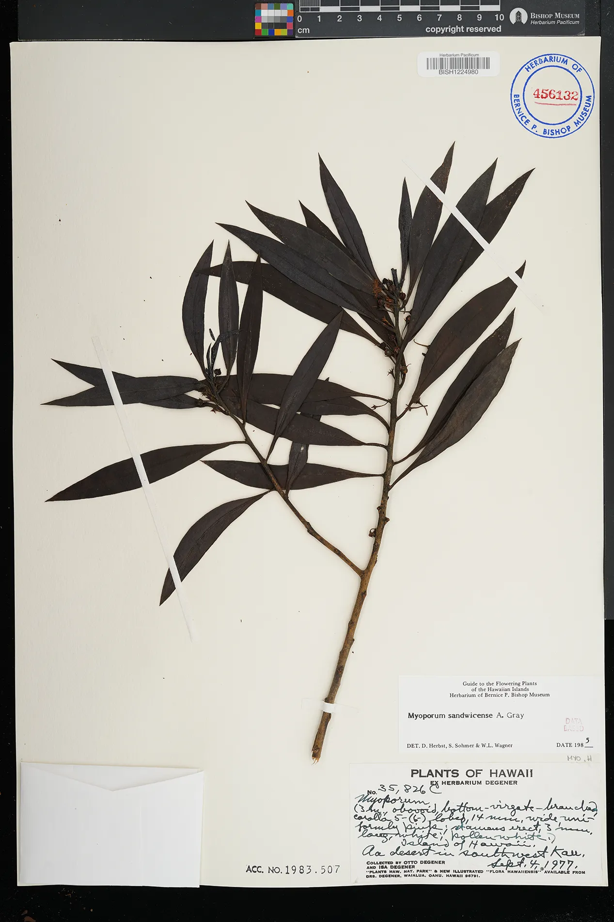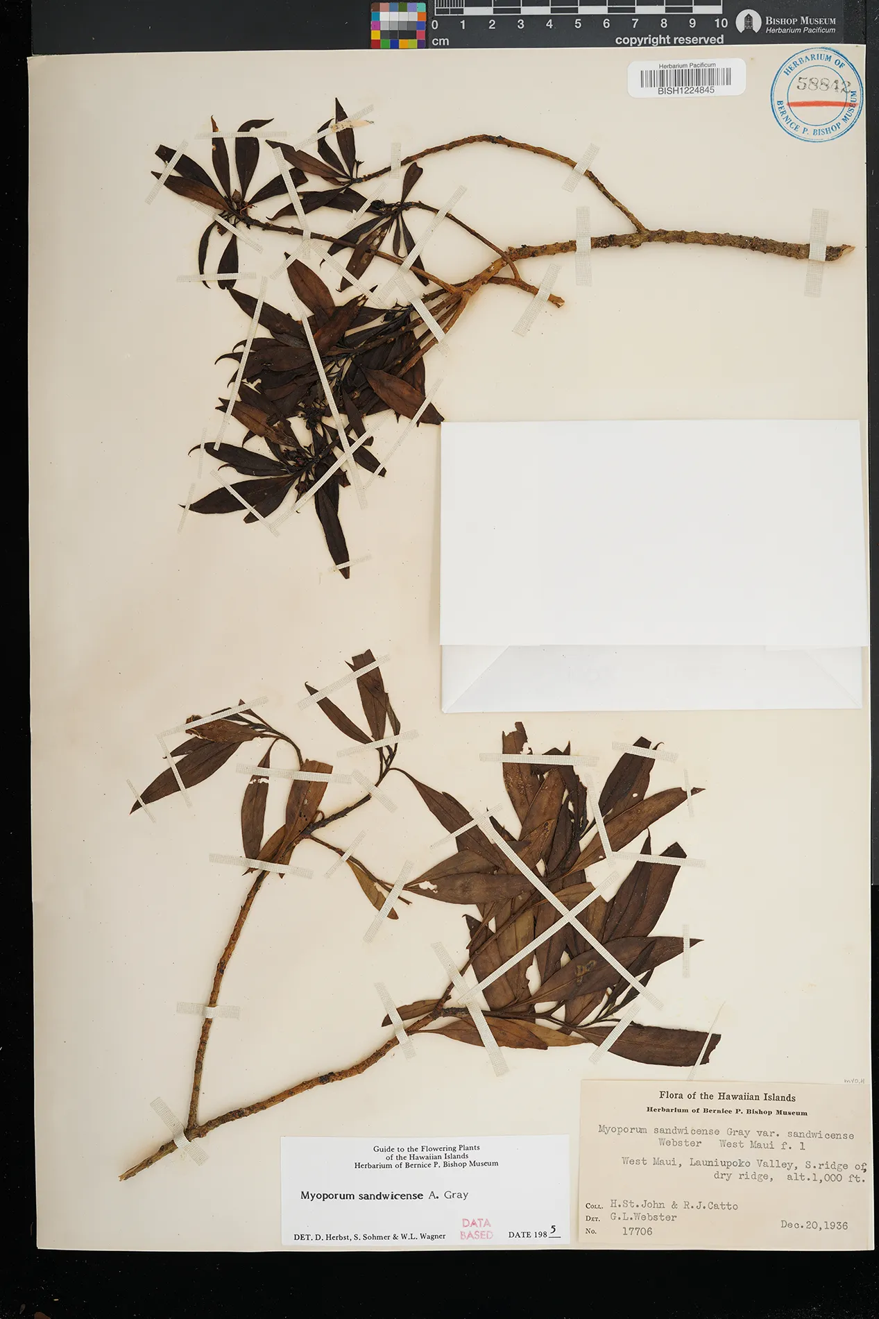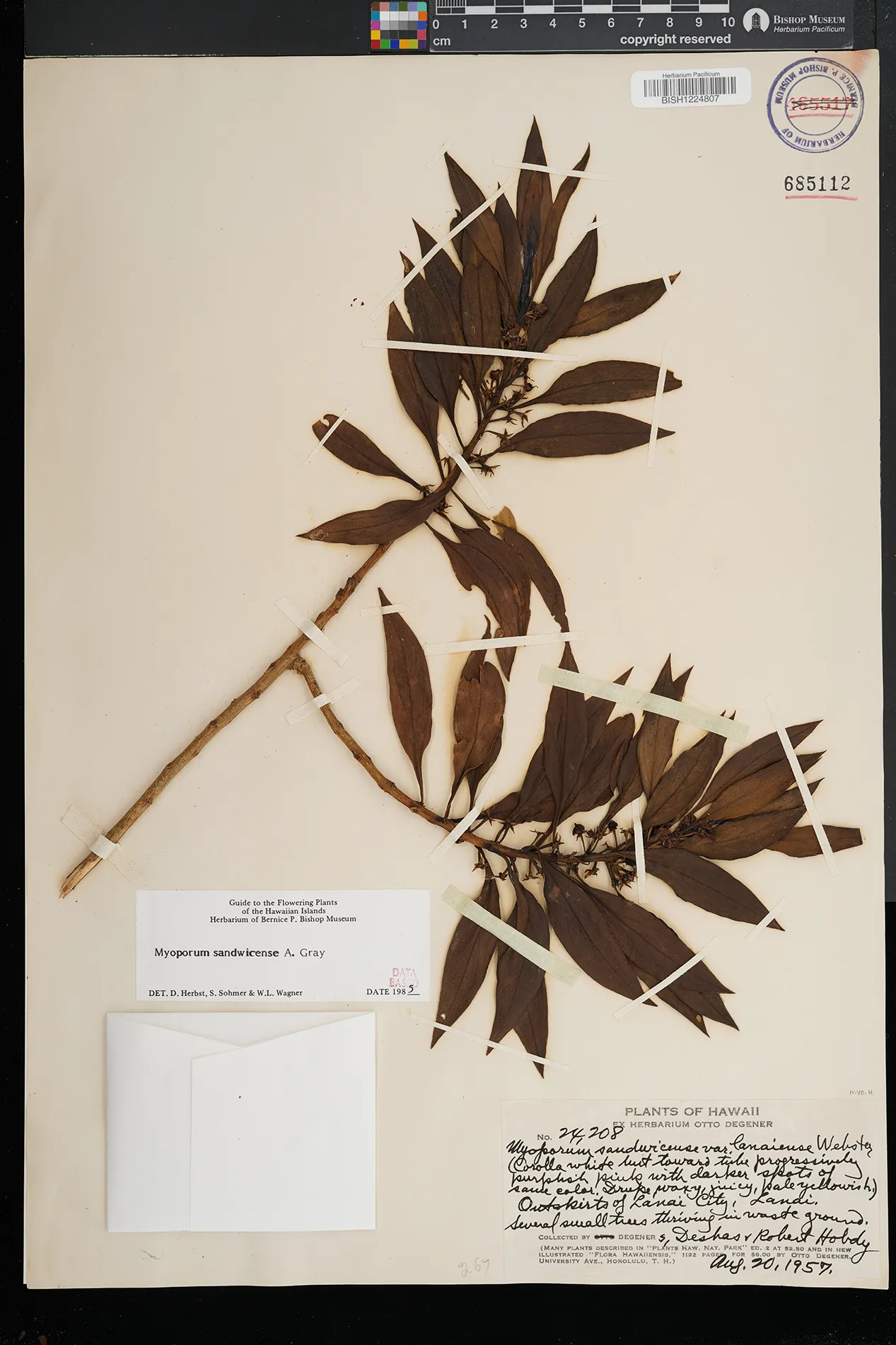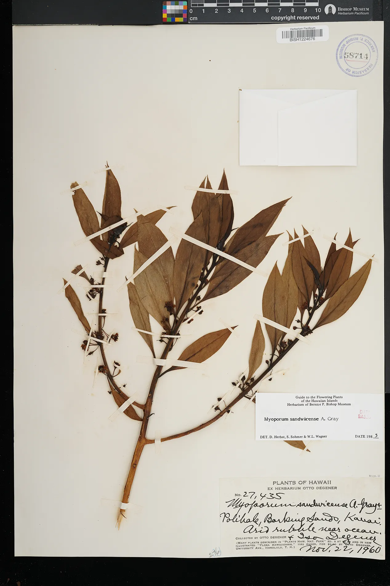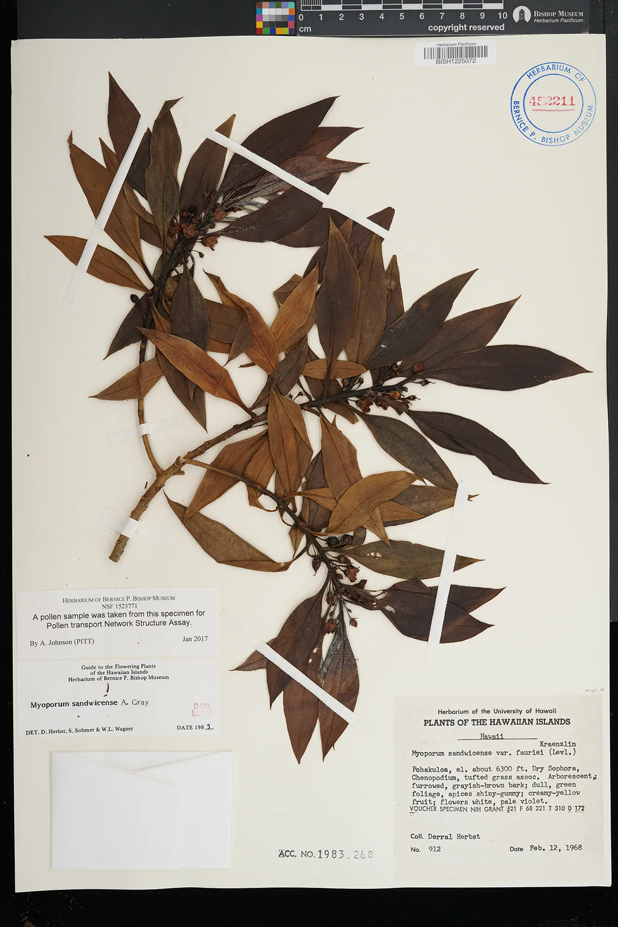 Wood has odor similar to sandalwood (Degener 1930:267). Used for house posts (Degener 1930:268; Krauss 1993:56). Burns well and long, used for torches (Lamb 1981:127). Wood used for fish net gauge (haha ka ‘upena) (Krauss 1993:35). In the Ethnology Collection at Bishop Museum there is a post-contact example of the wood made into a bowl.