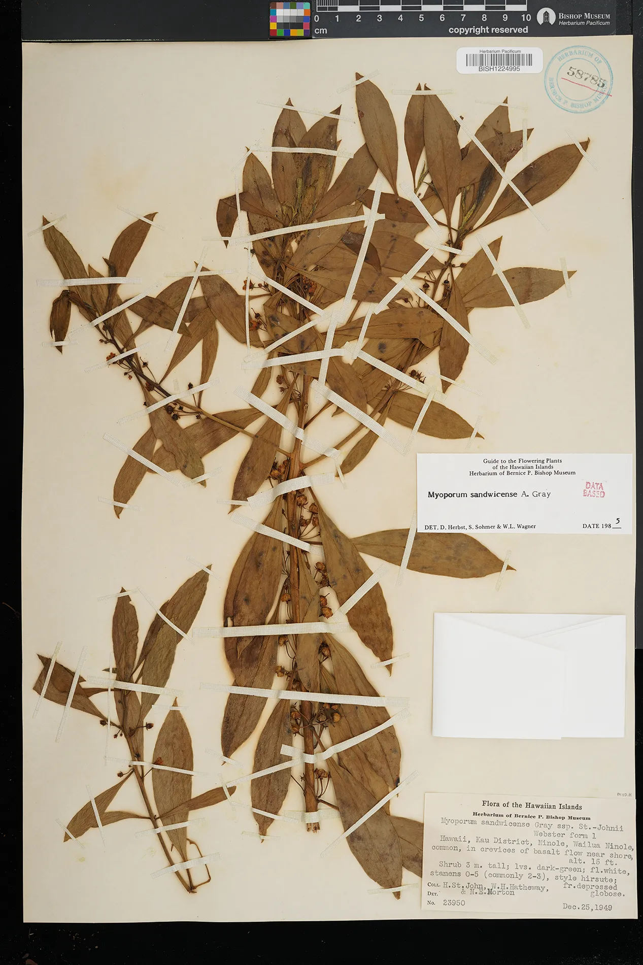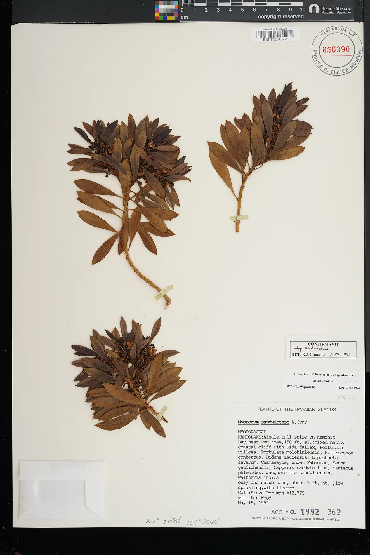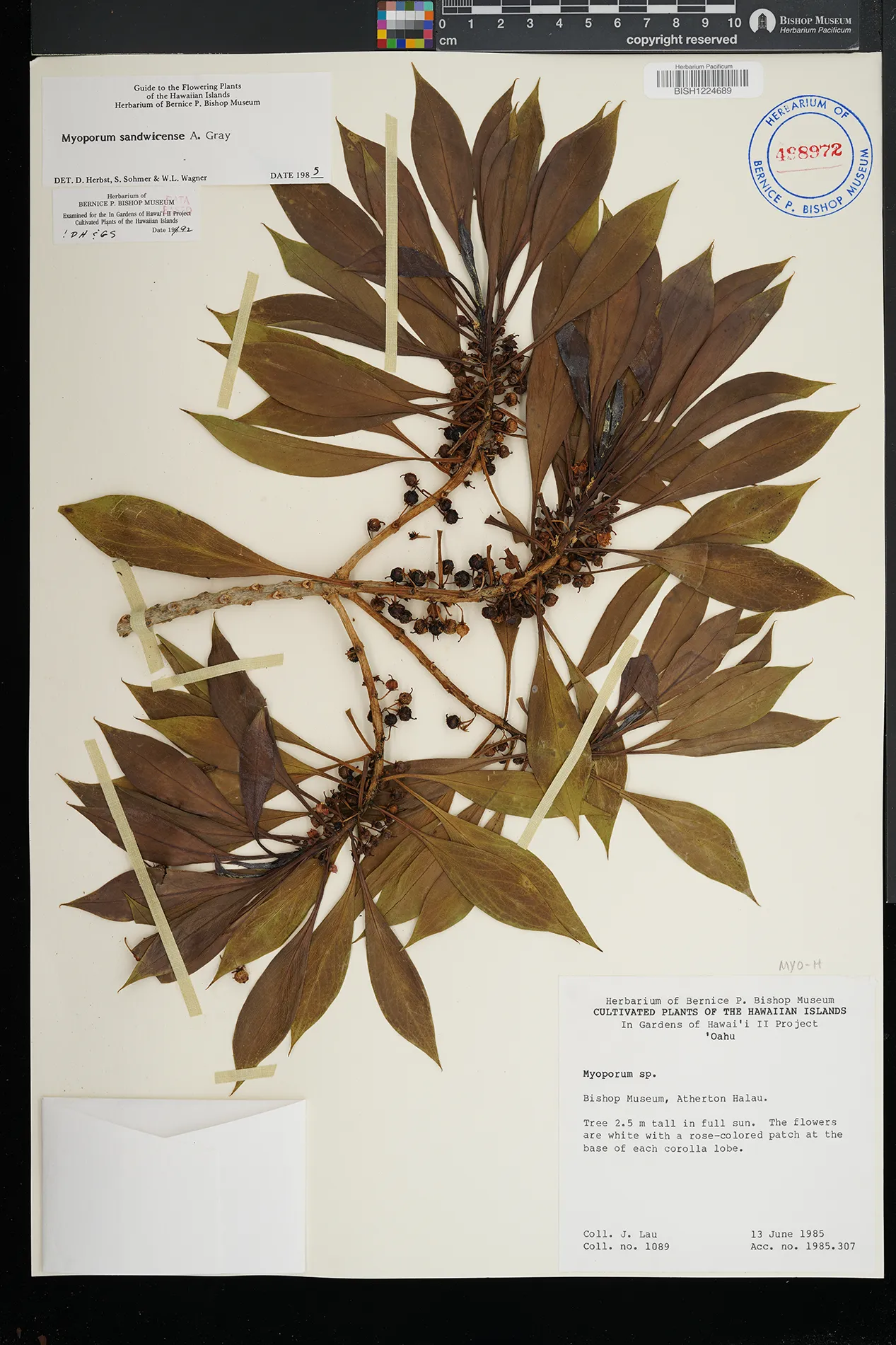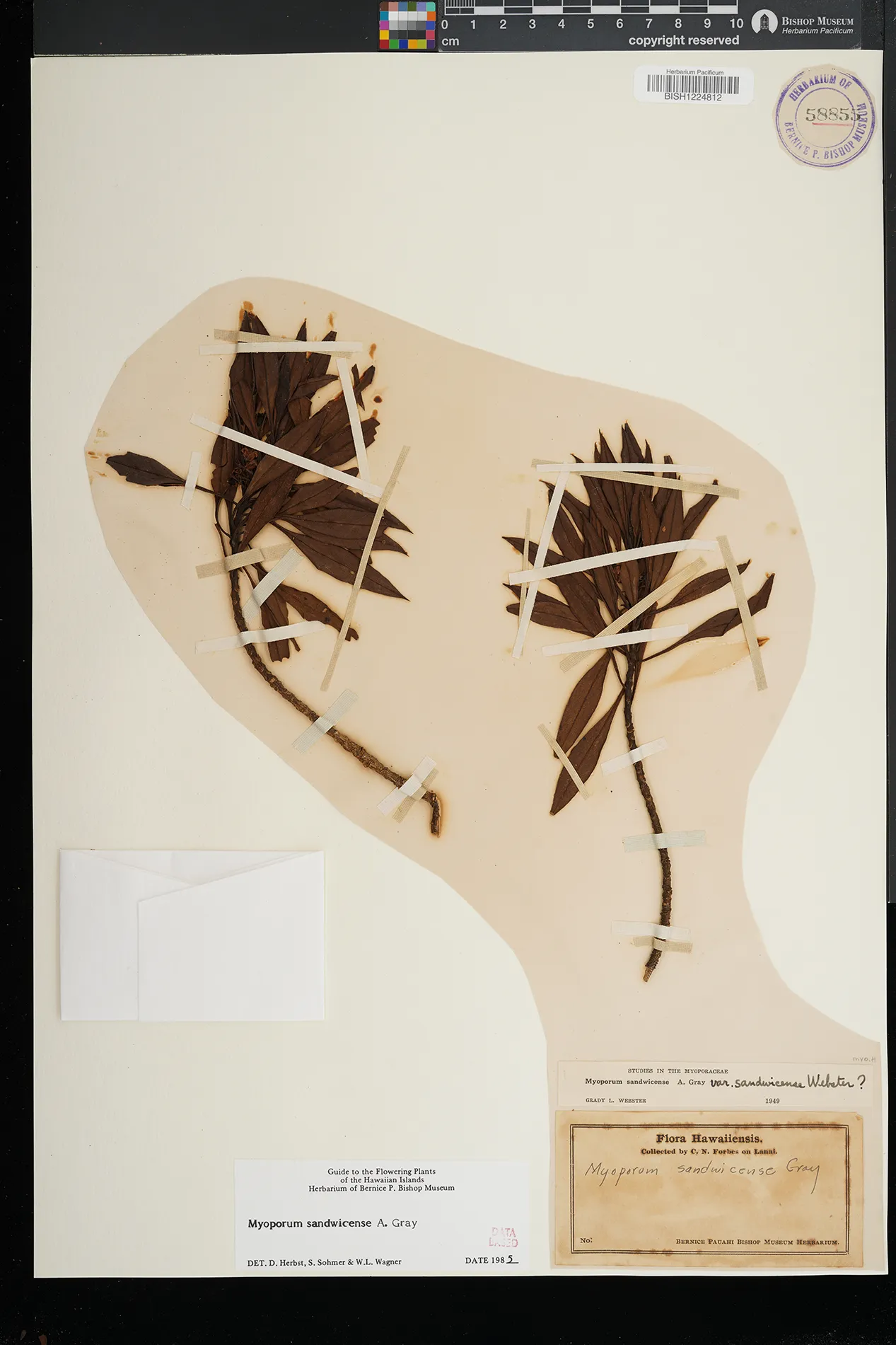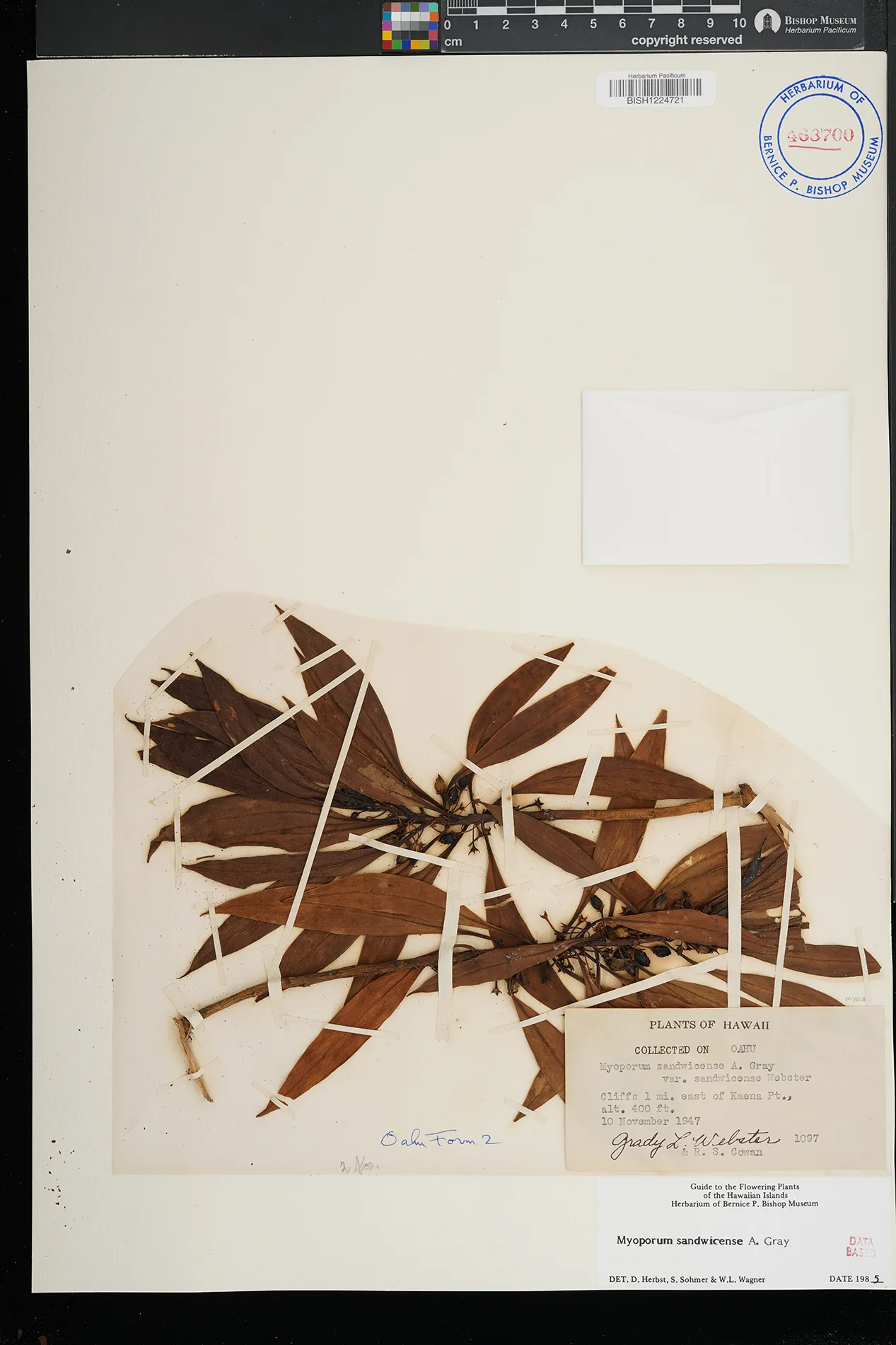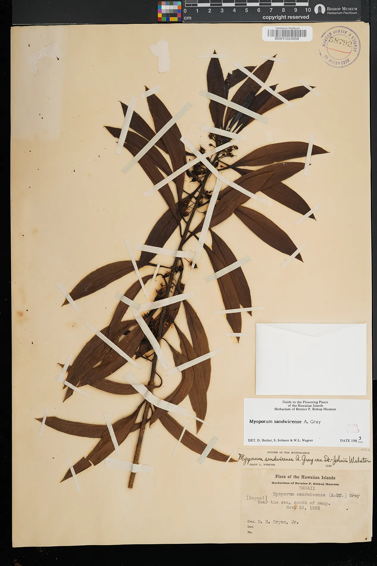 Wood has odor similar to sandalwood (Degener 1930:267). Used for house posts (Degener 1930:268; Krauss 1993:56). Burns well and long, used for torches (Lamb 1981:127). Wood used for fish net gauge (haha ka ‘upena) (Krauss 1993:35). In the Ethnology Collection at Bishop Museum there is a post-contact example of the wood made into a bowl.